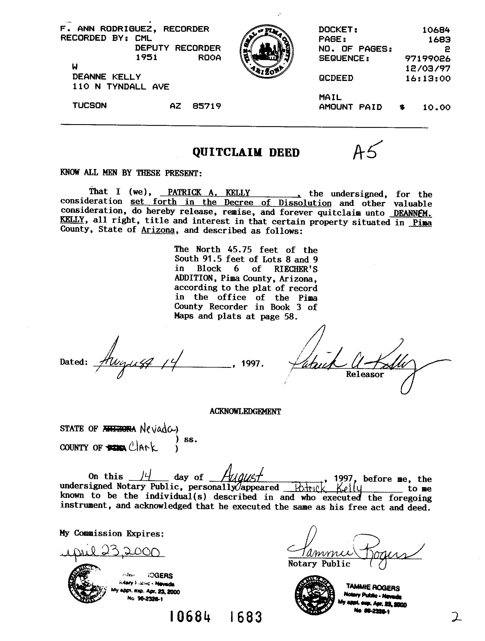 LEGAL: RIECKERS N 45.75' OF S 91.50' OF L 8 & 9 BLK 6 (10749/2912)