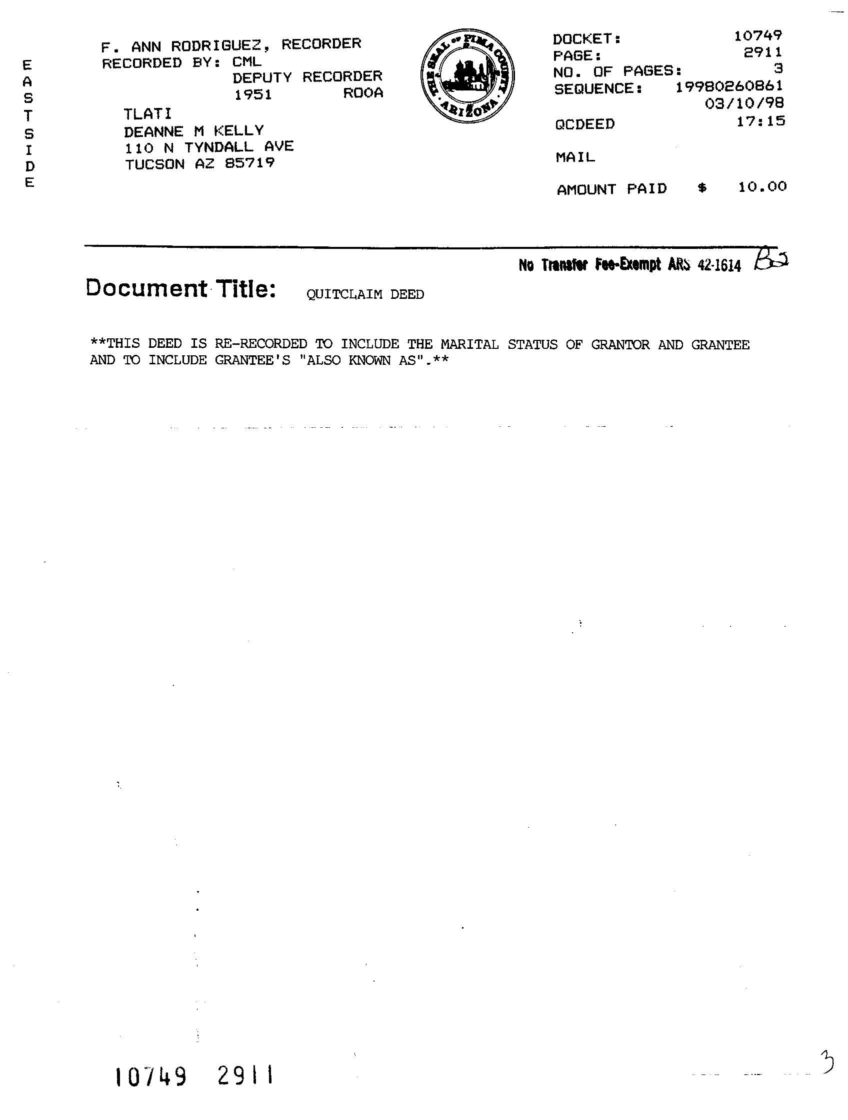 Deed Type : Rerecorded Deed Document # : 10749-2911