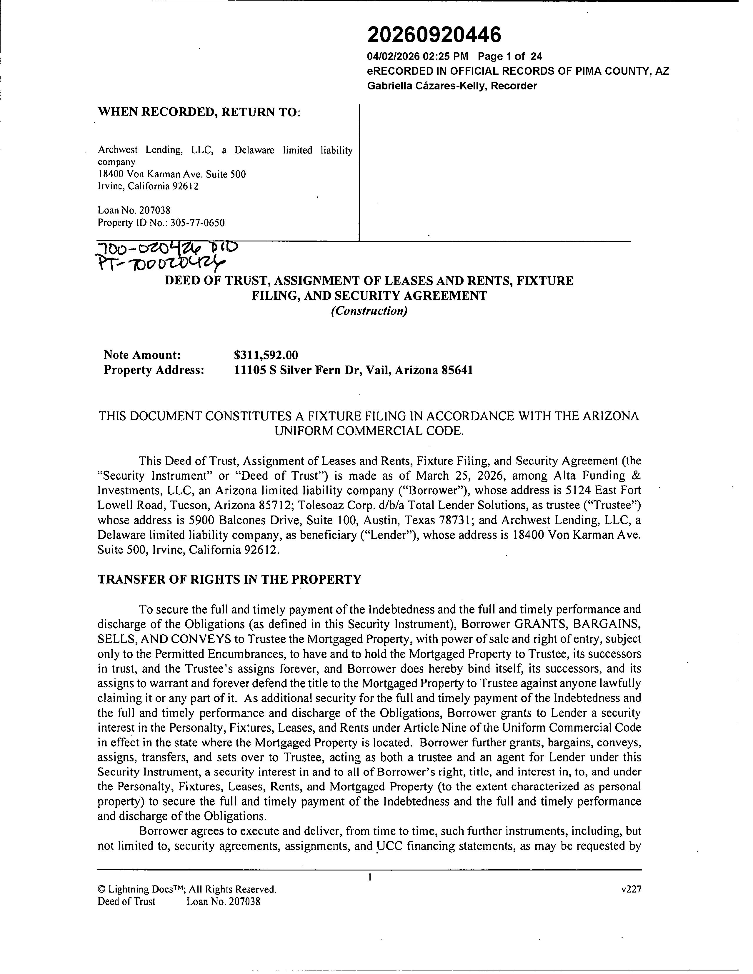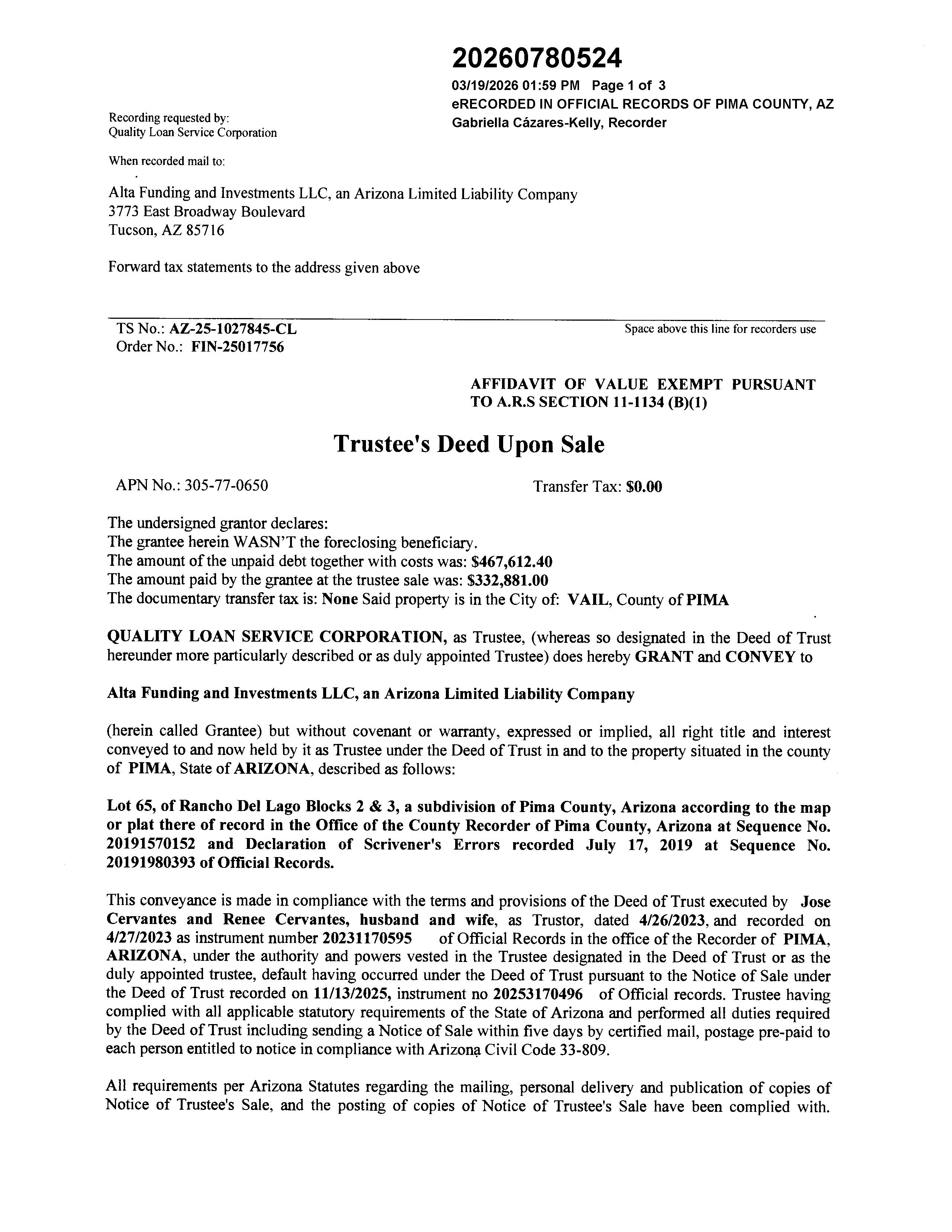 OWNER: CERVANTES JOSE & RENEE AFFIDAVIT 2023 1170594 04/27/2023