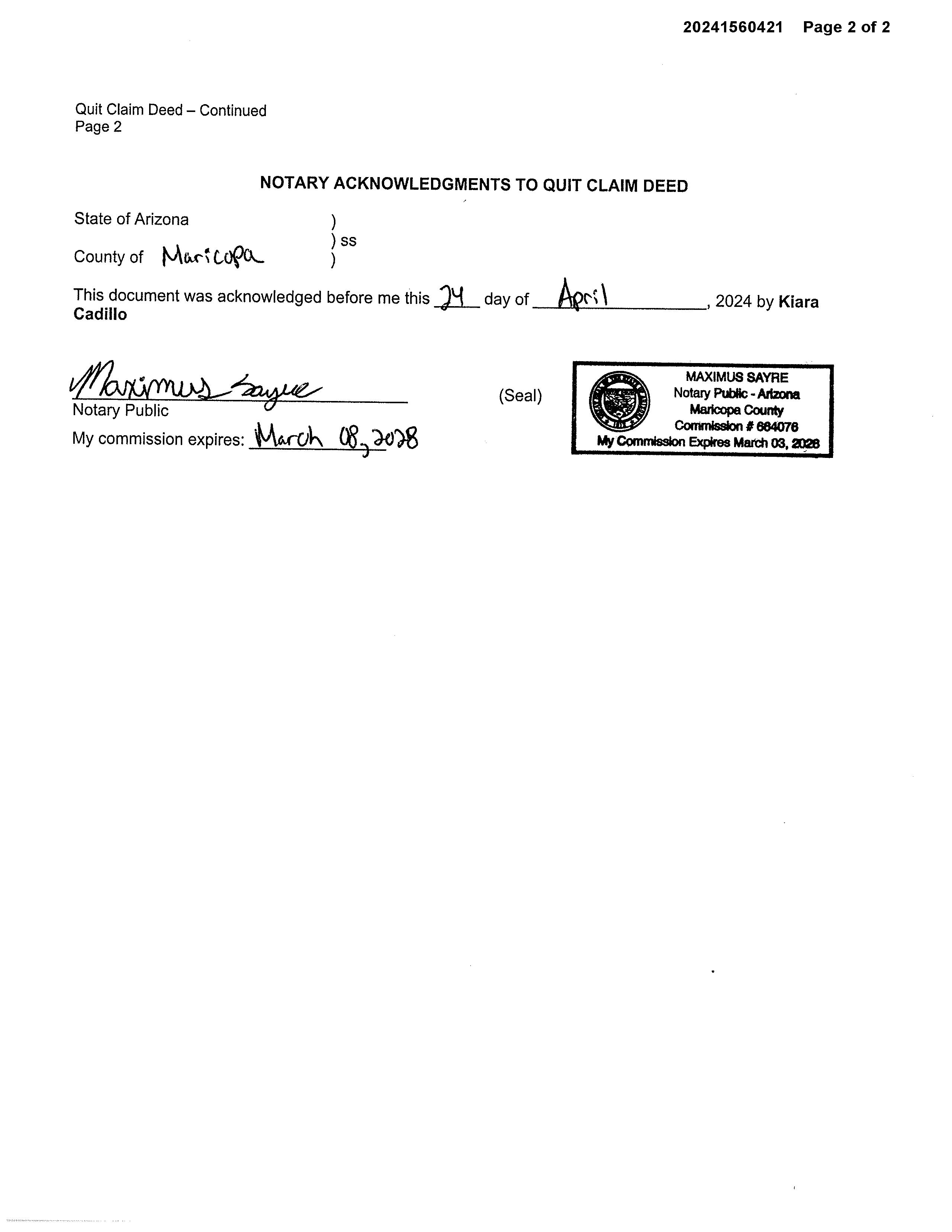 Deed Type : Quit Claim Deed Document # : 1560421