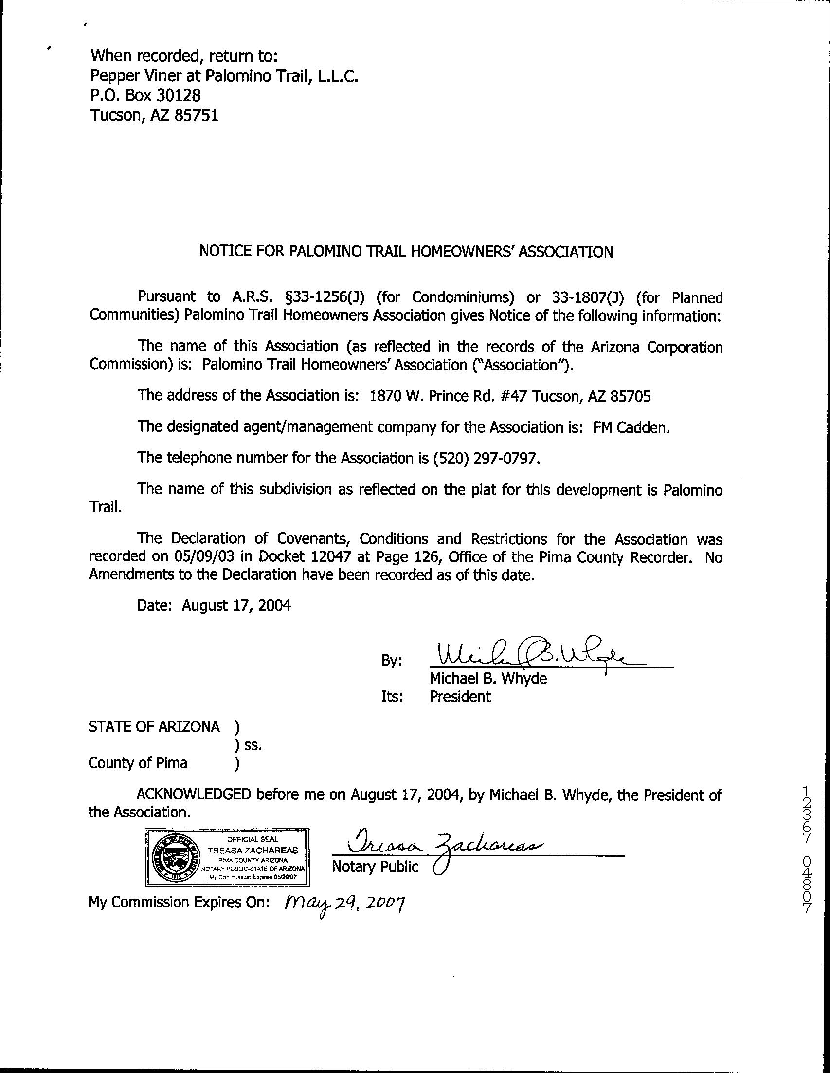 Subdivision : Palomino Trail