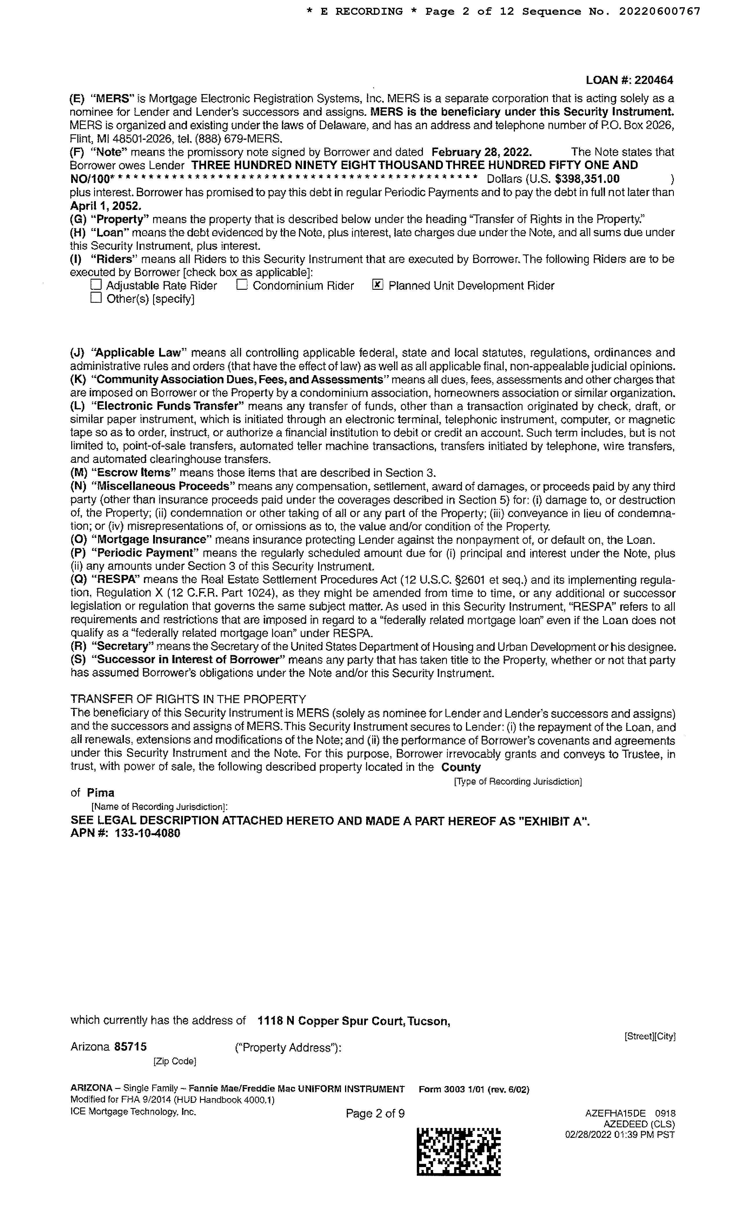 Recording/Sale Date : 03/01/2022 / 02/22/2022 1st Mtg Amount/Type : $398,351 / Fha
