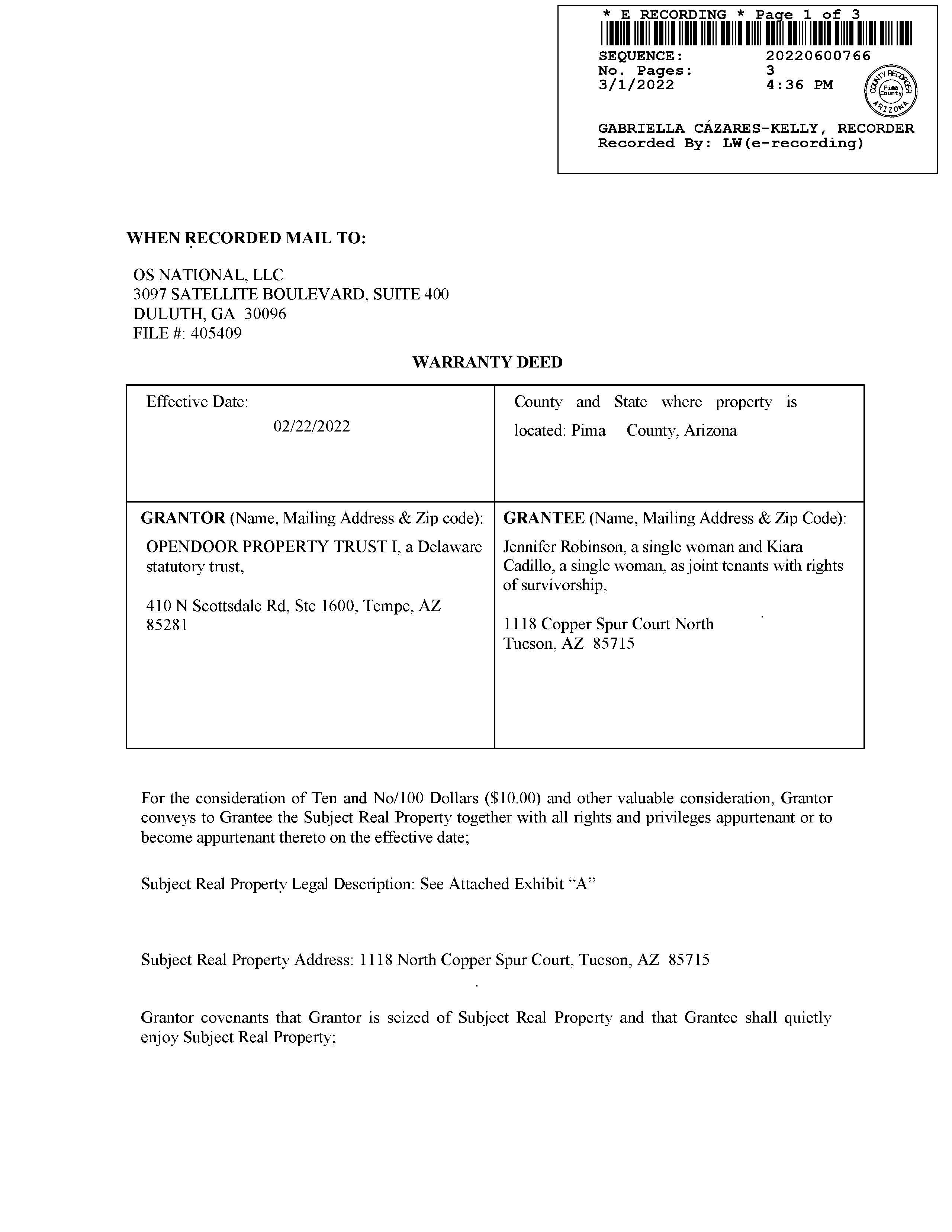 APN / Alternate APN: 133-25-1760 / Deed Type: Warranty Deed