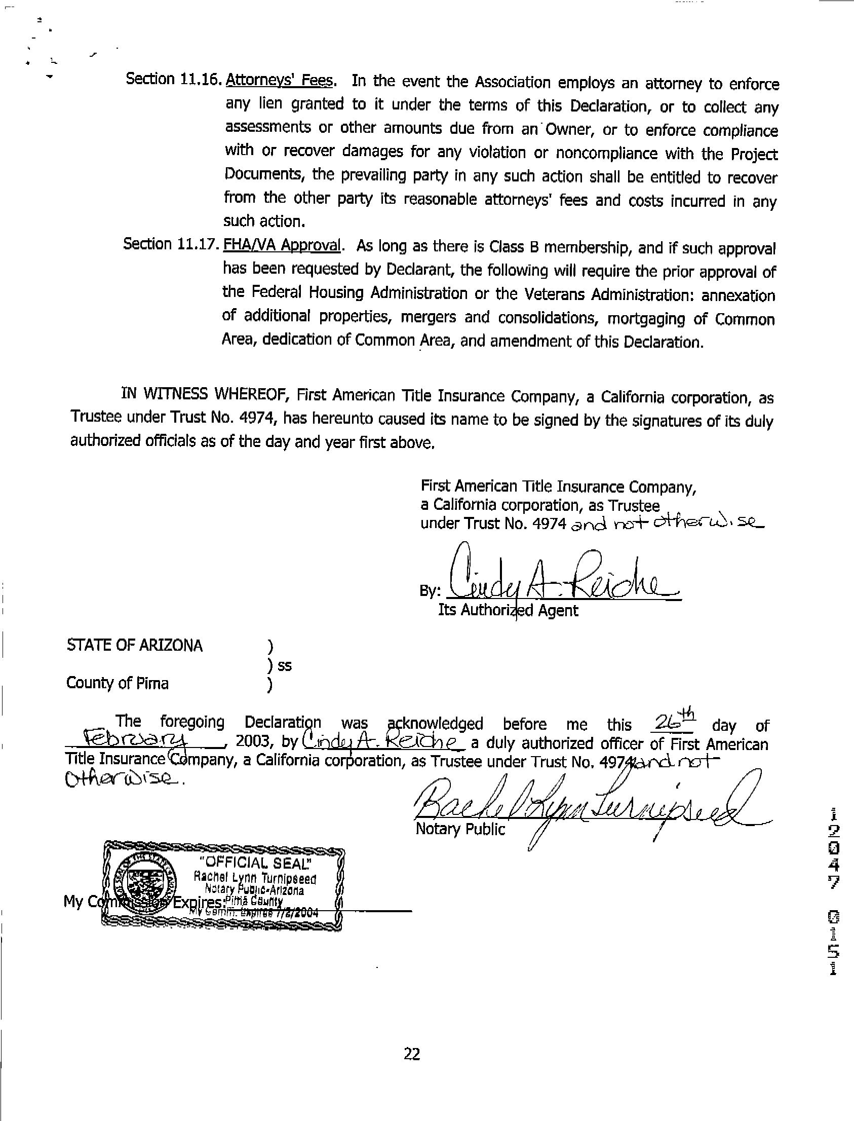 Mailing Address : 1118 N Copper Spur Ct, Tucson AZ 85715-5254 C041