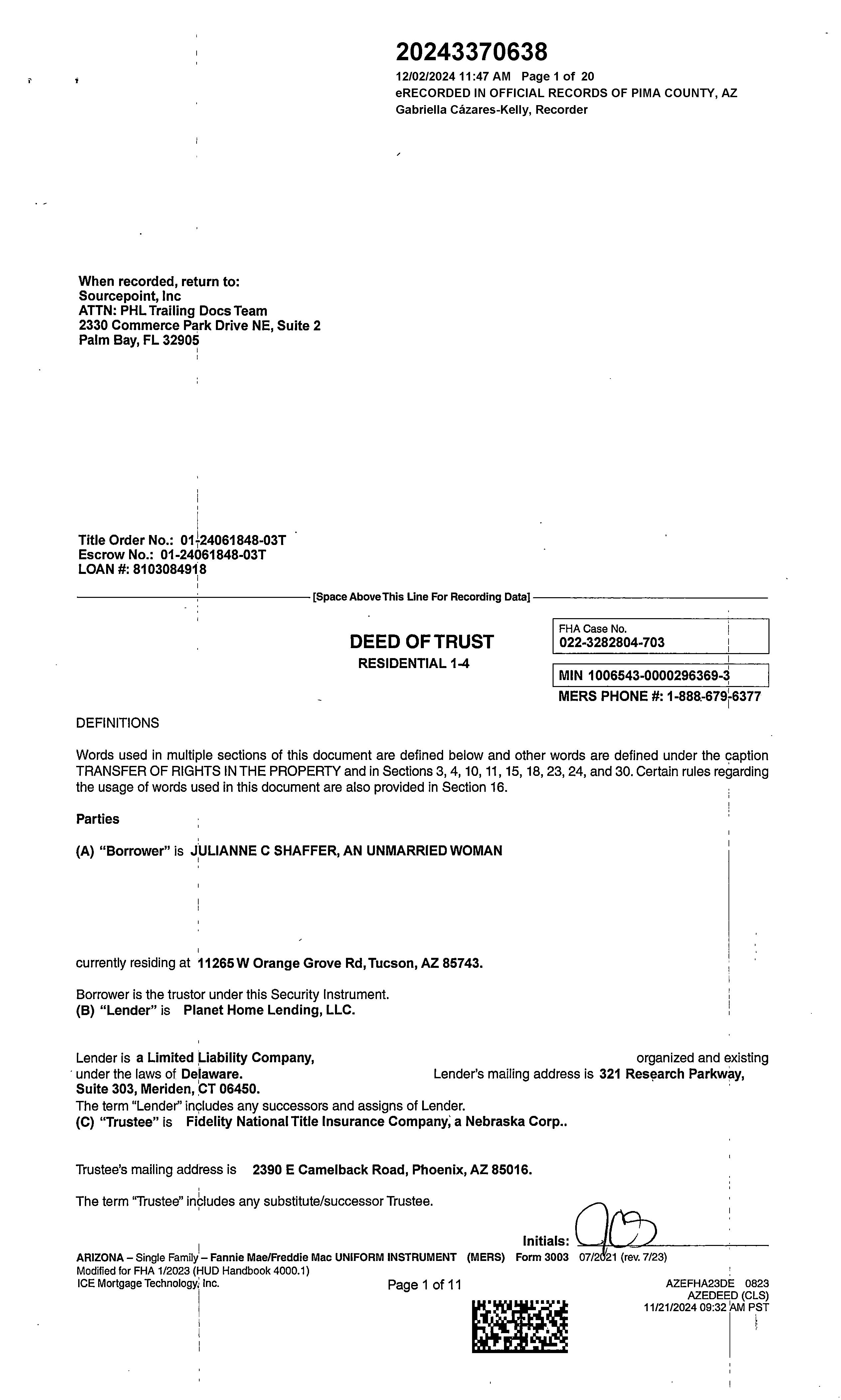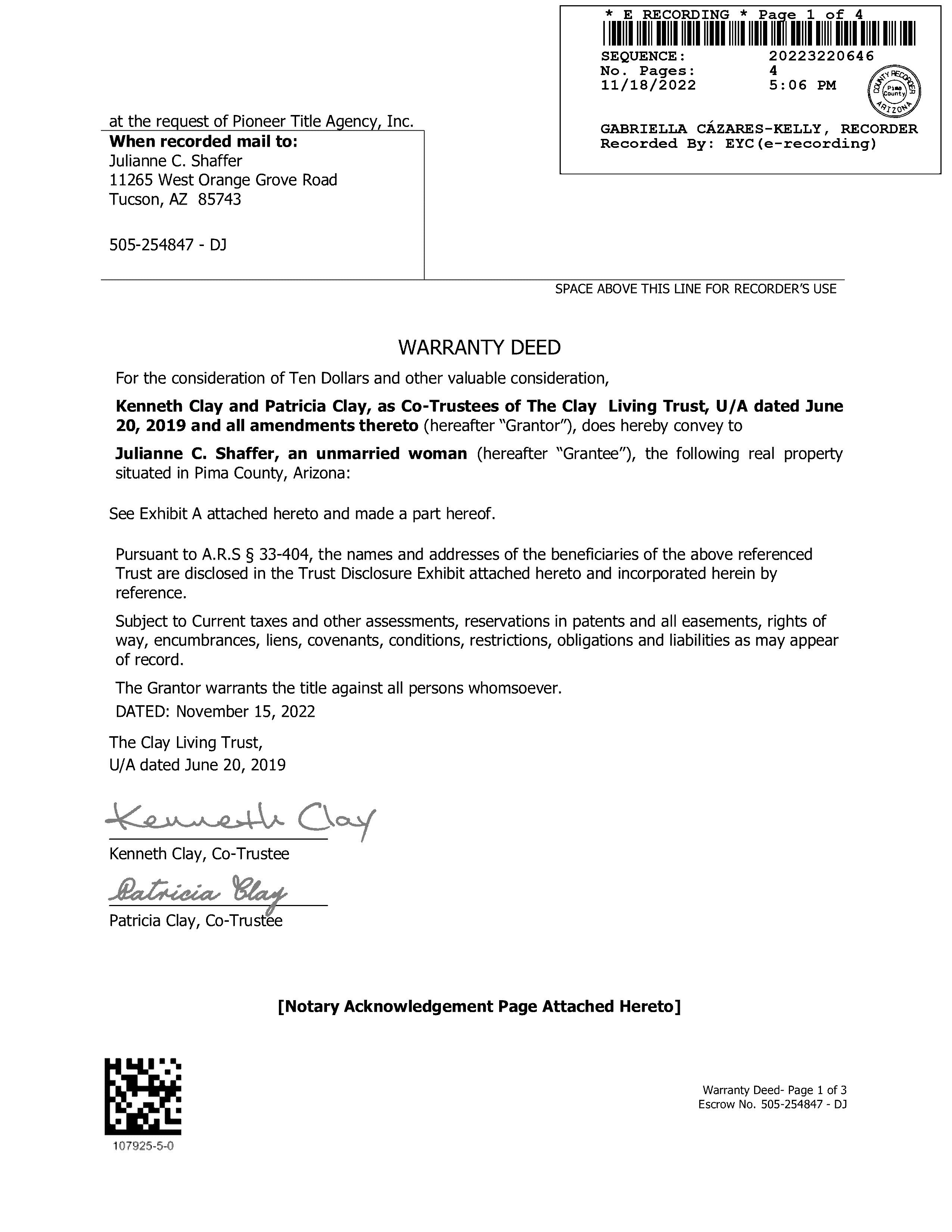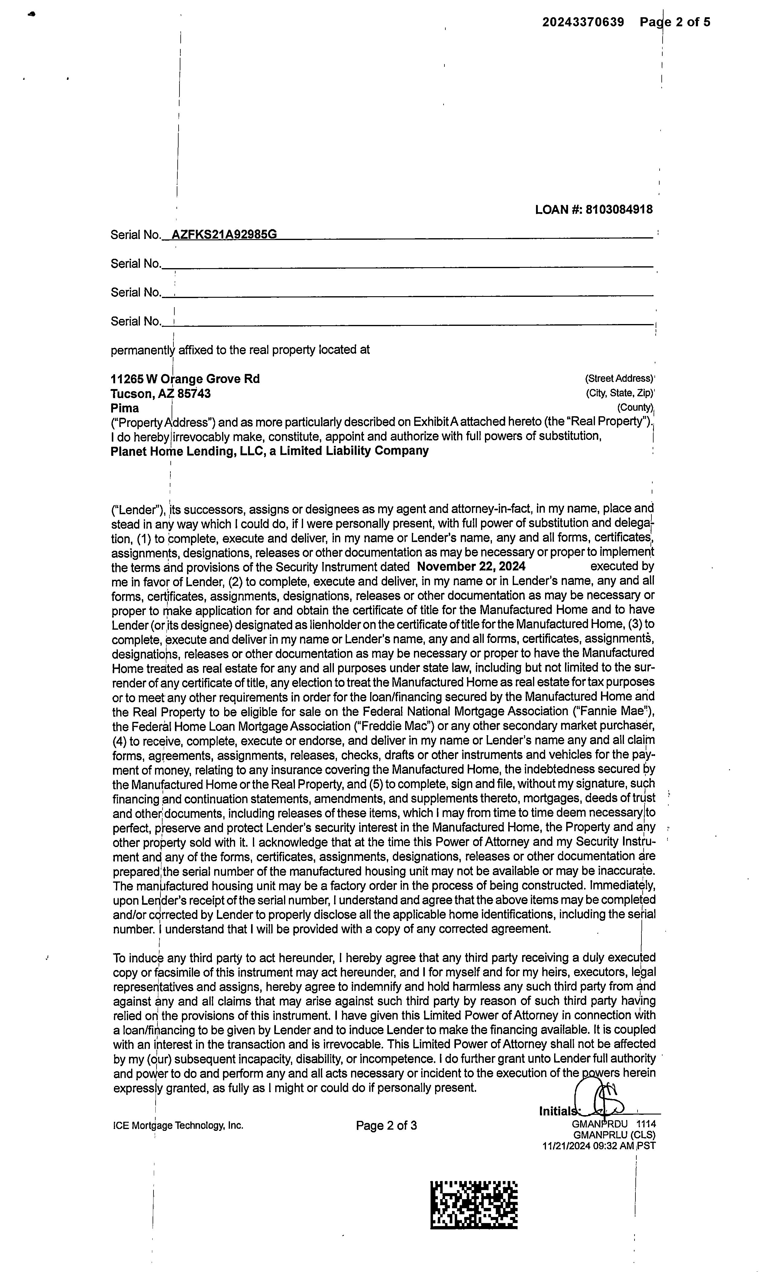 Mailing Address : 11265 W Orange Grove Rd, Tucson AZ 85743-9065 R171