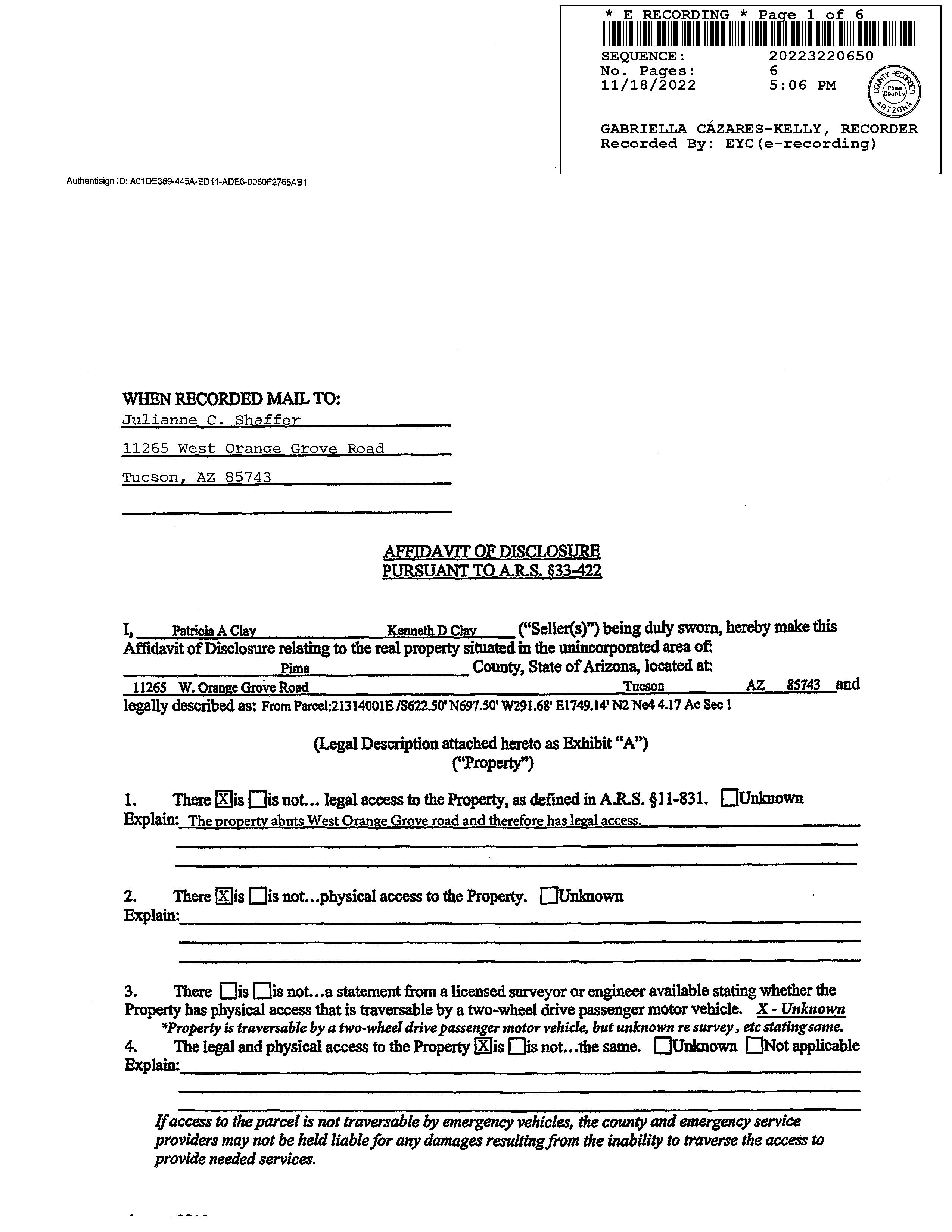 Subject Property : 11265 W Orange Grove Rd Tucson AZ 85743