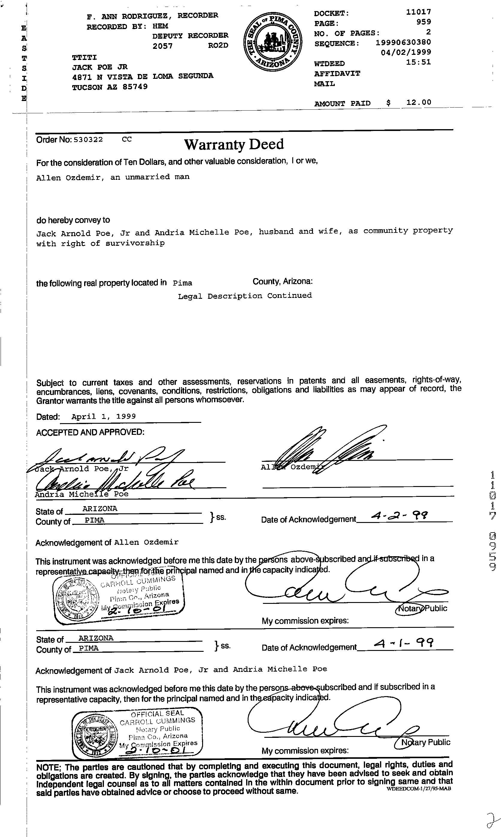 Owner Name : Poe Jack Arnold Jr / Poe Andria Michelle