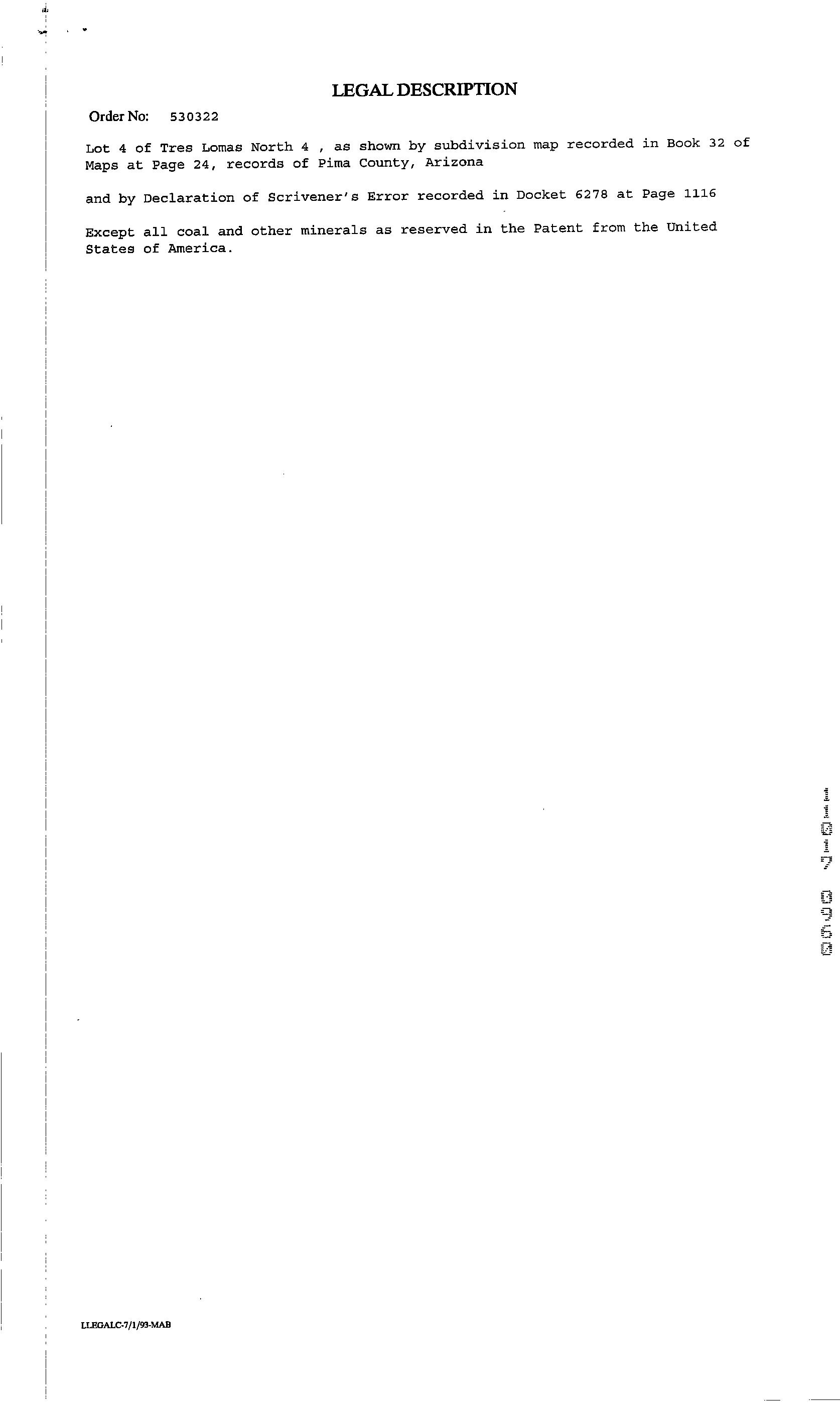 Legal Description : Tres Lomas North 4 Lot 4 & Ptn E464.36' S165.76' N2 Sw4 Sw4 4.02 Ac Sec 14-13-15