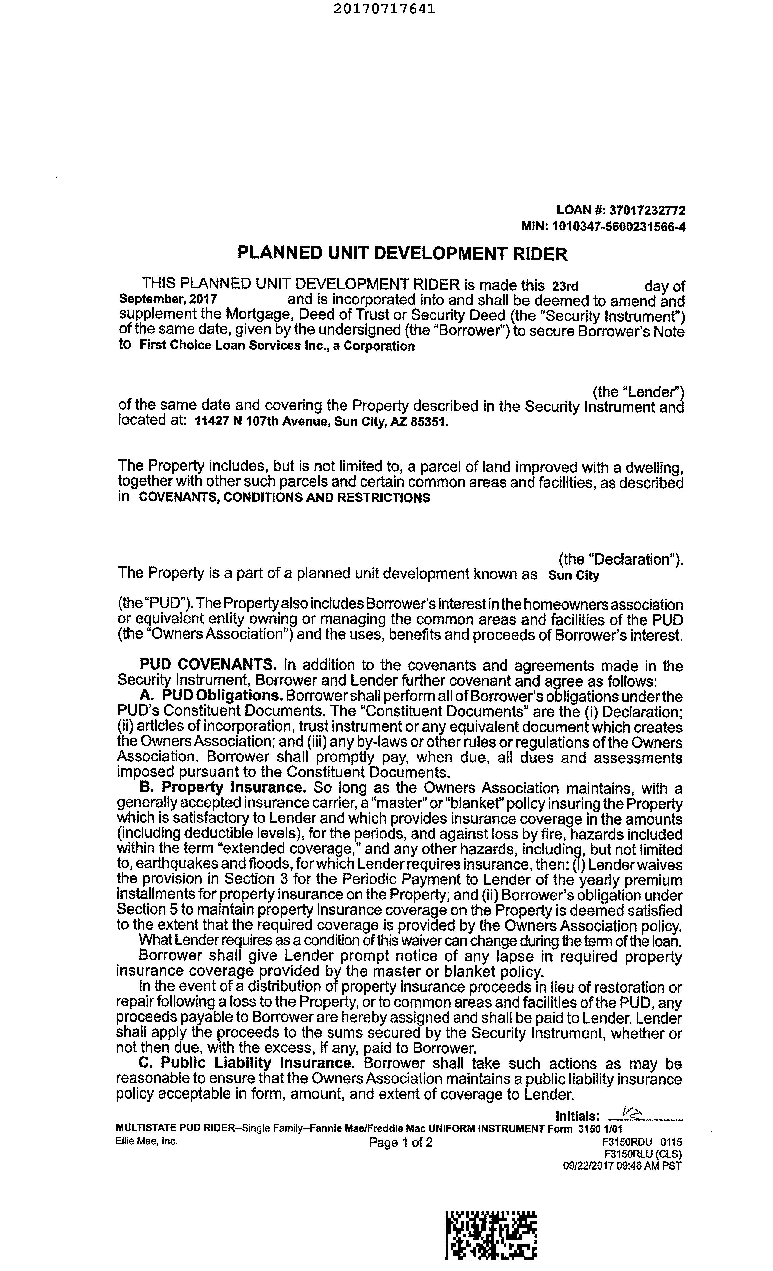 Subject Property : 11427 N 107th Ave Sun City AZ 85351