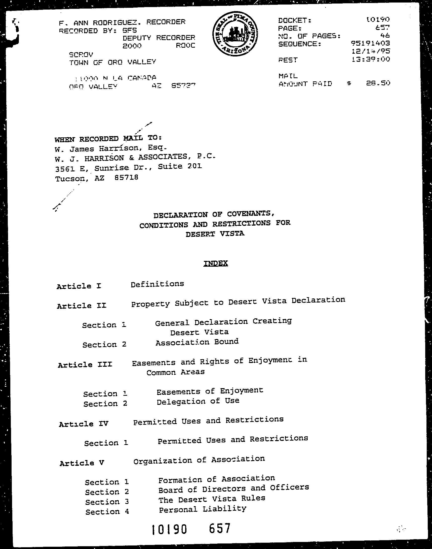 Subdivision / Tract: Desert Vista / Lot Size: 32,539