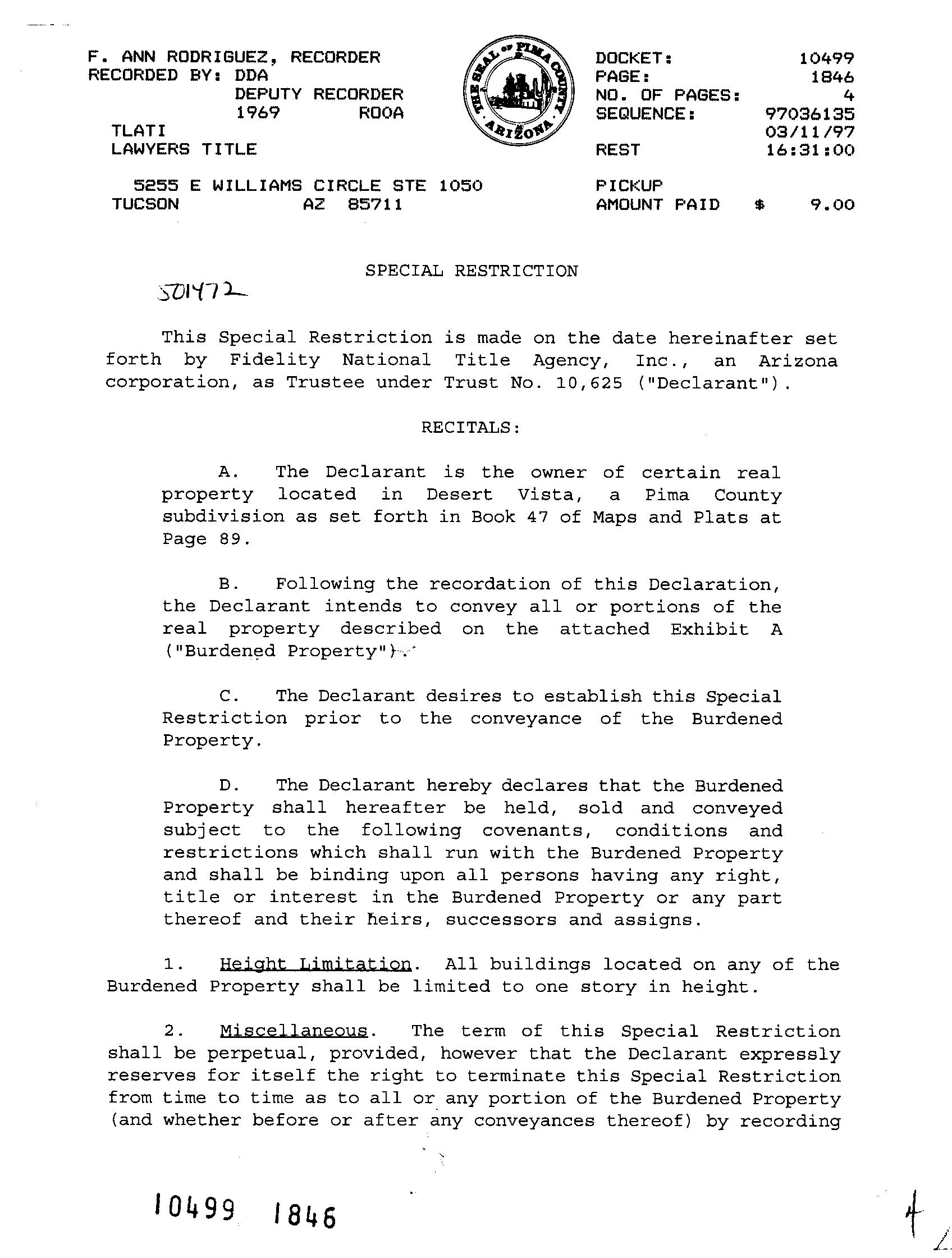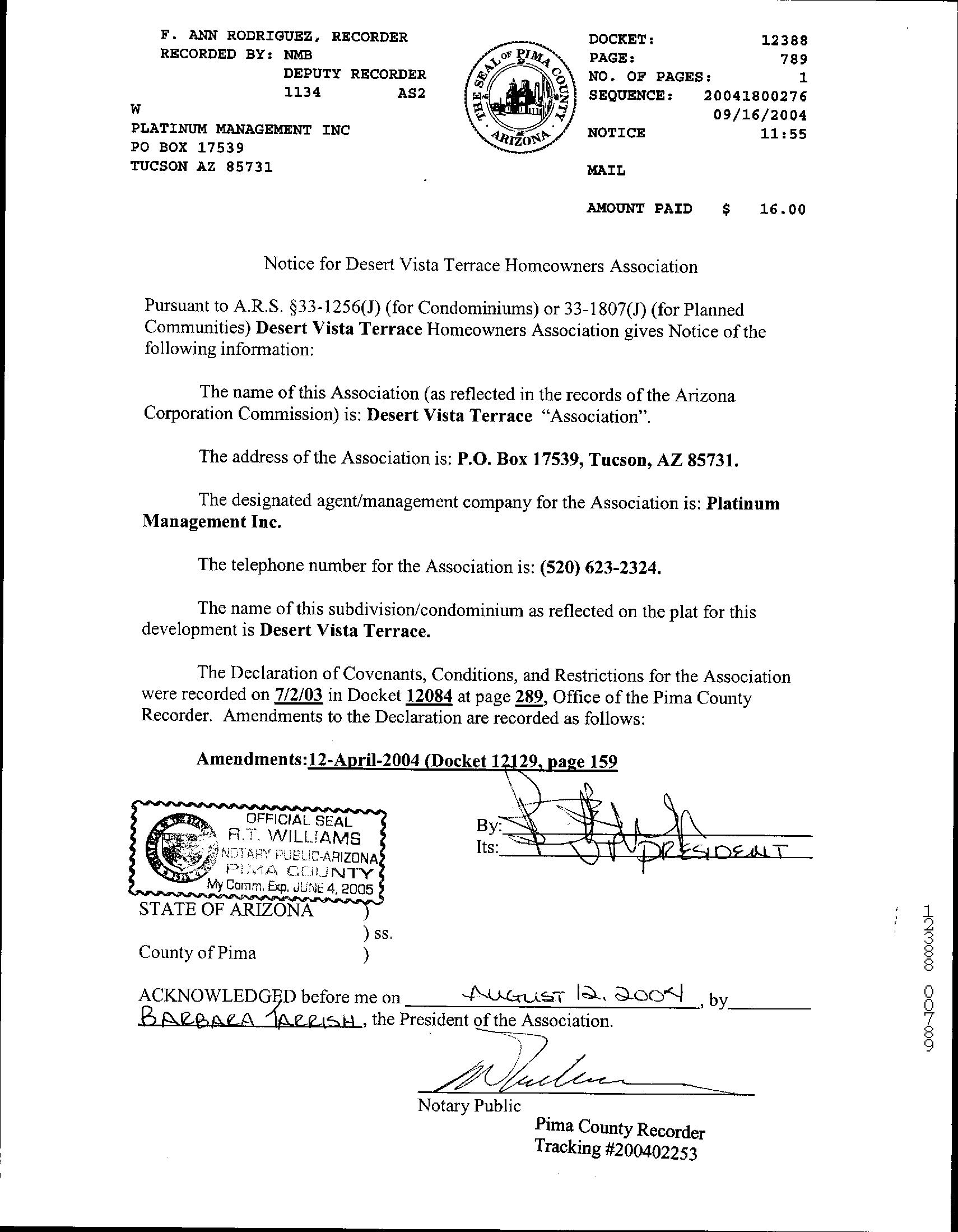 Mailing Address : 11474 N Verch Way, Tucson AZ 85737-8897 R116