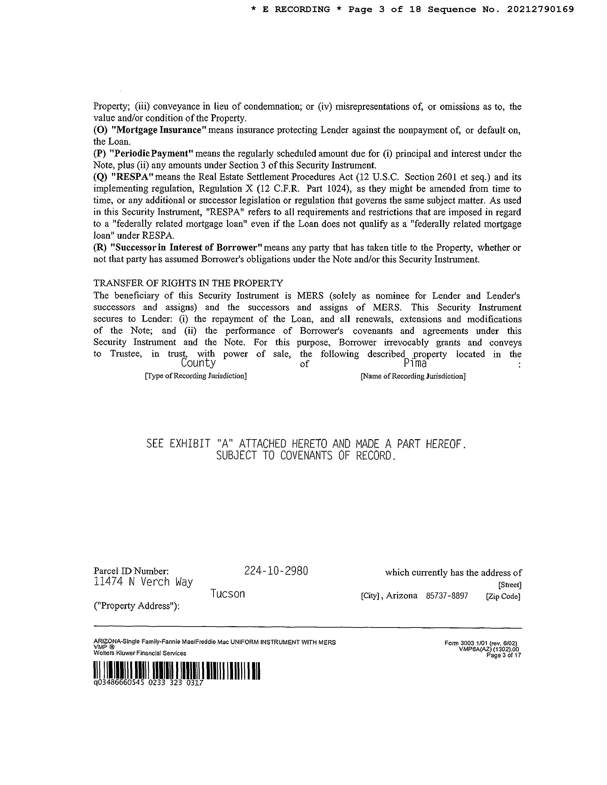 Subject Property : 11474 N Verch Way Tucson AZ 85737