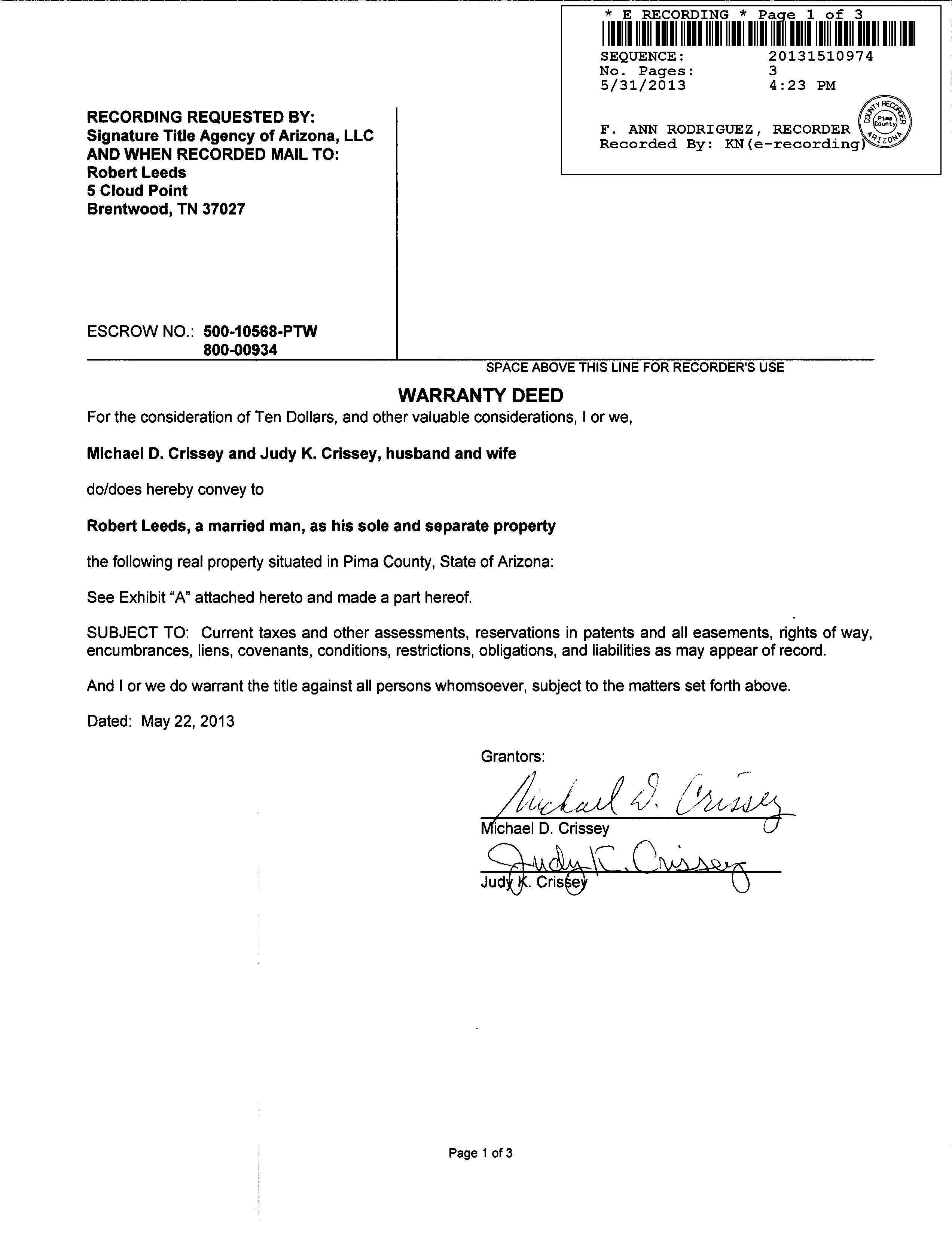 Owner Name: Leeds Robert / APN / Alternate APN: 224-10-2980 / Deed Type: Warranty Deed