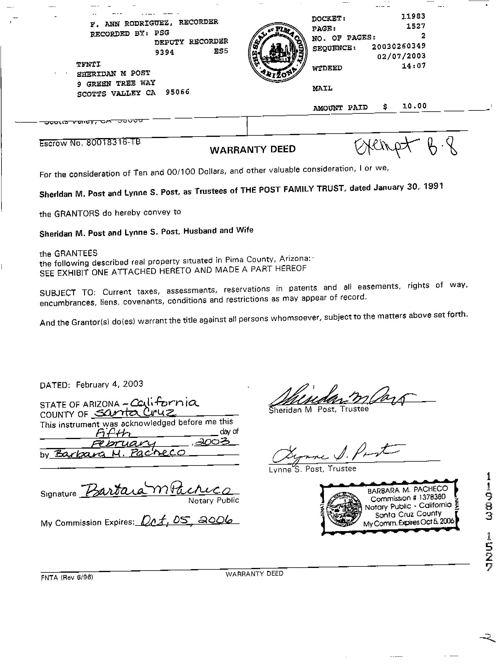 OWNER: POST SHERIDAN M & LYNNE S TR