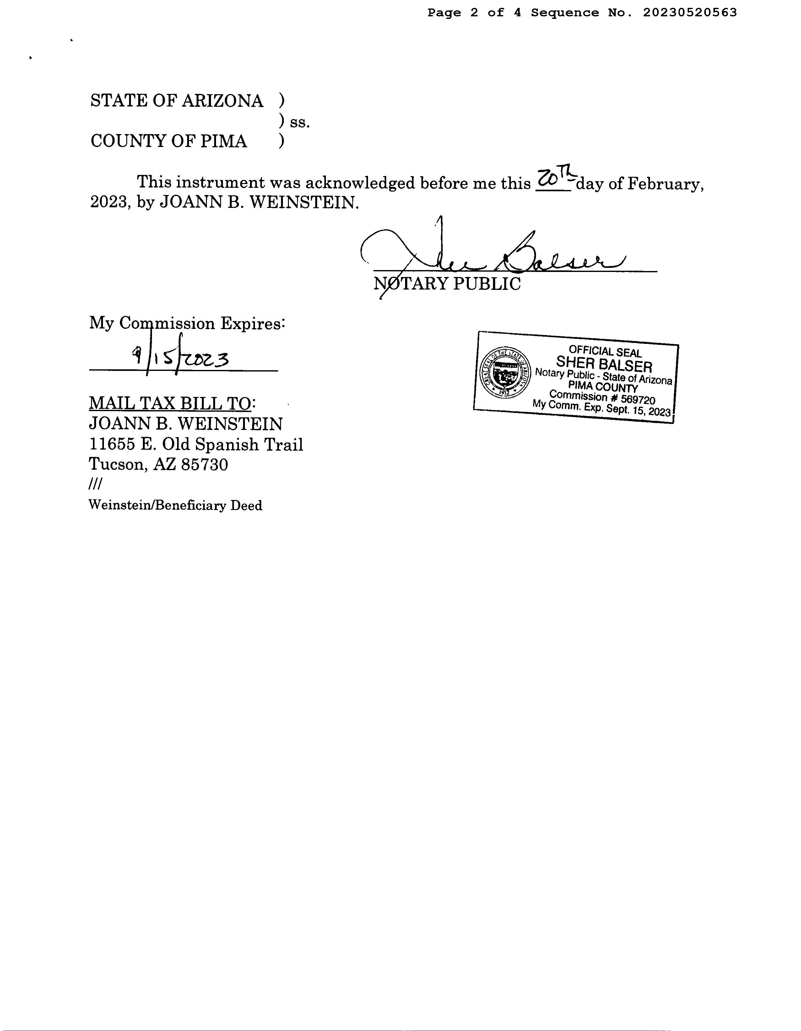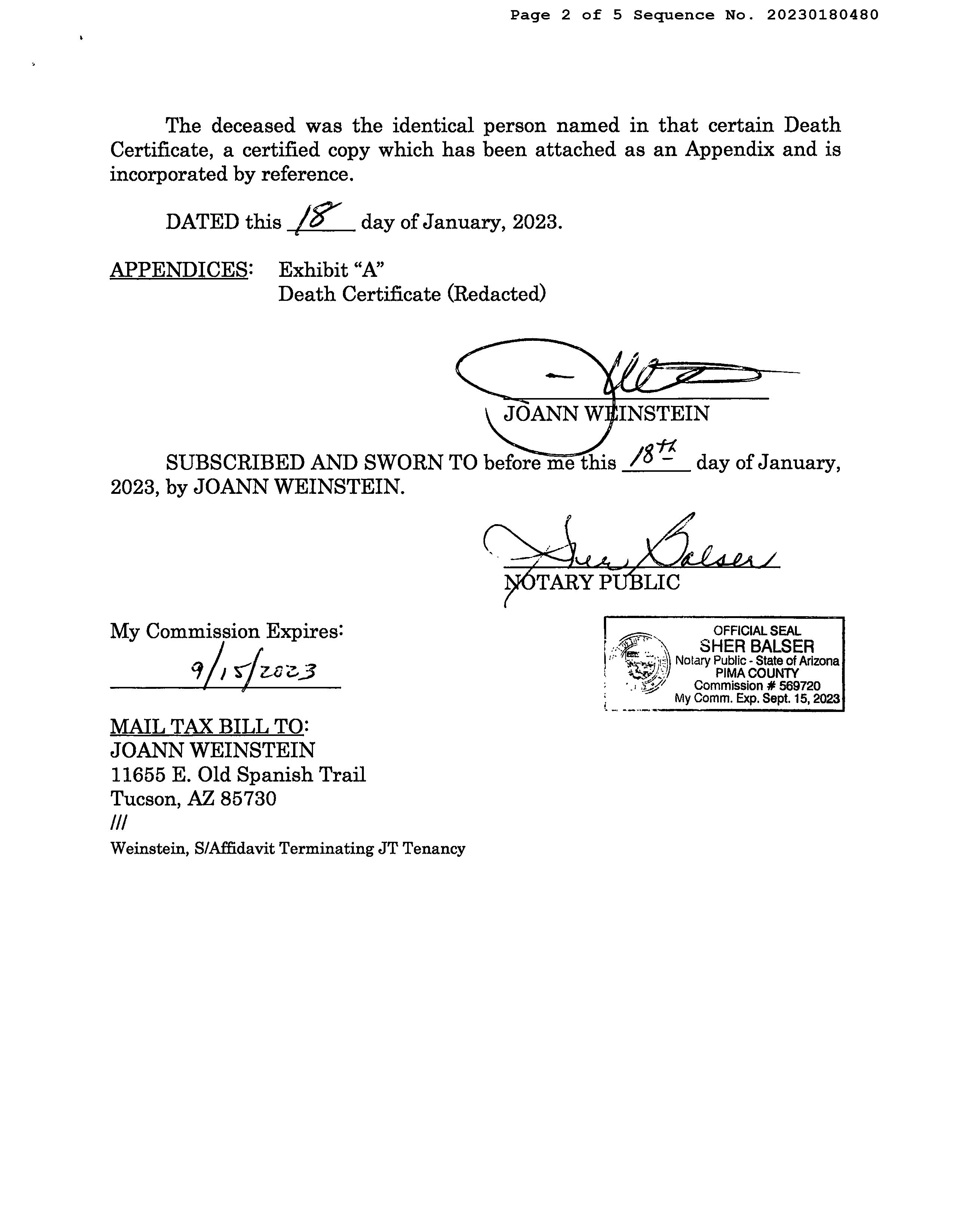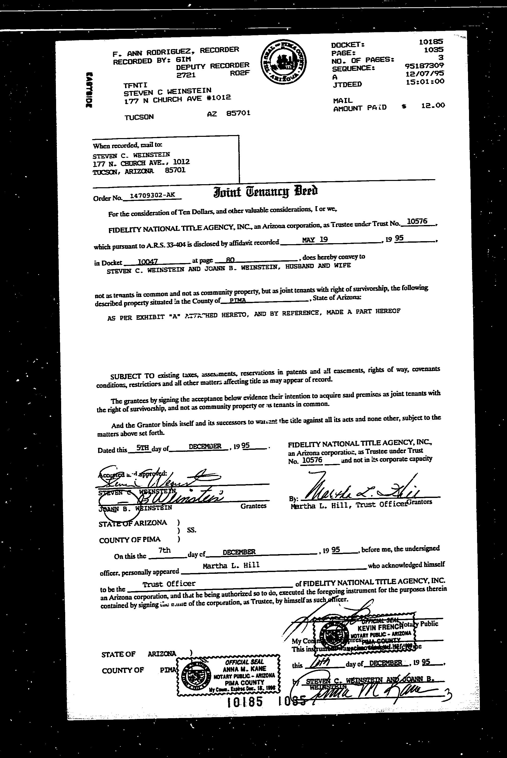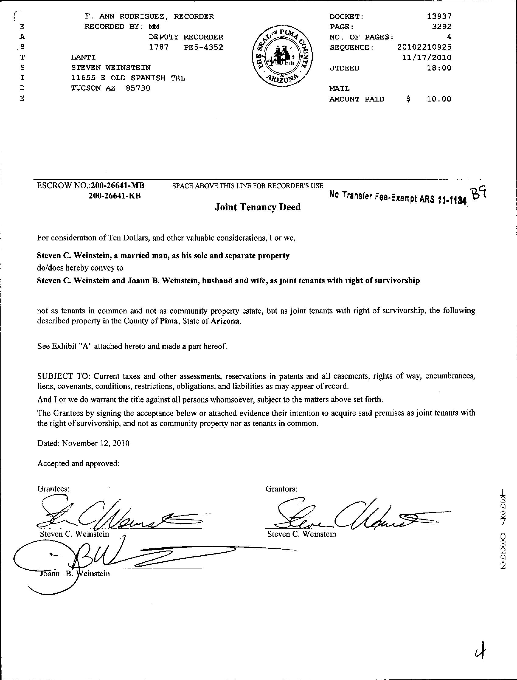 OWNER: WEINSTEIN STEVEN C & JOANN B JT/RS