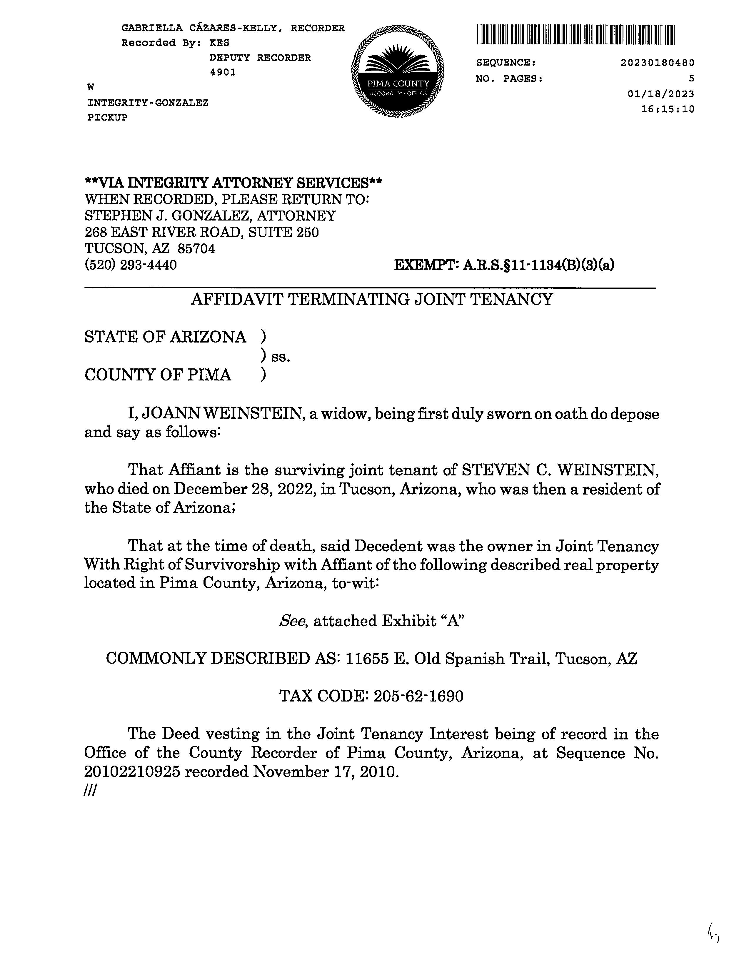 11655 E Old Spanish Trl Tucson AZ 85730 APN: 205-62-1690