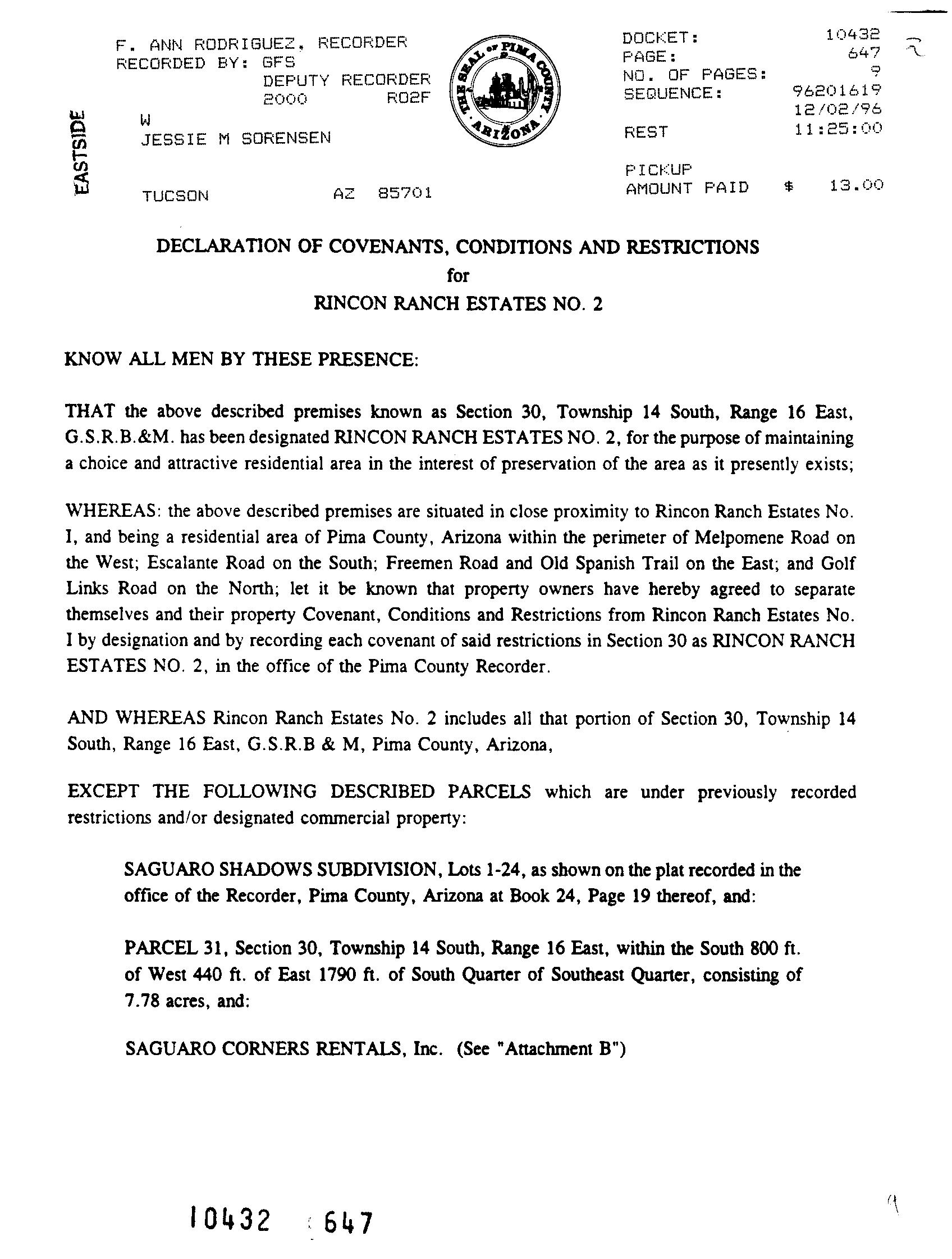 Mailing Address : 11655 E Old Spanish Trl, Tucson AZ 85730-5615 C067