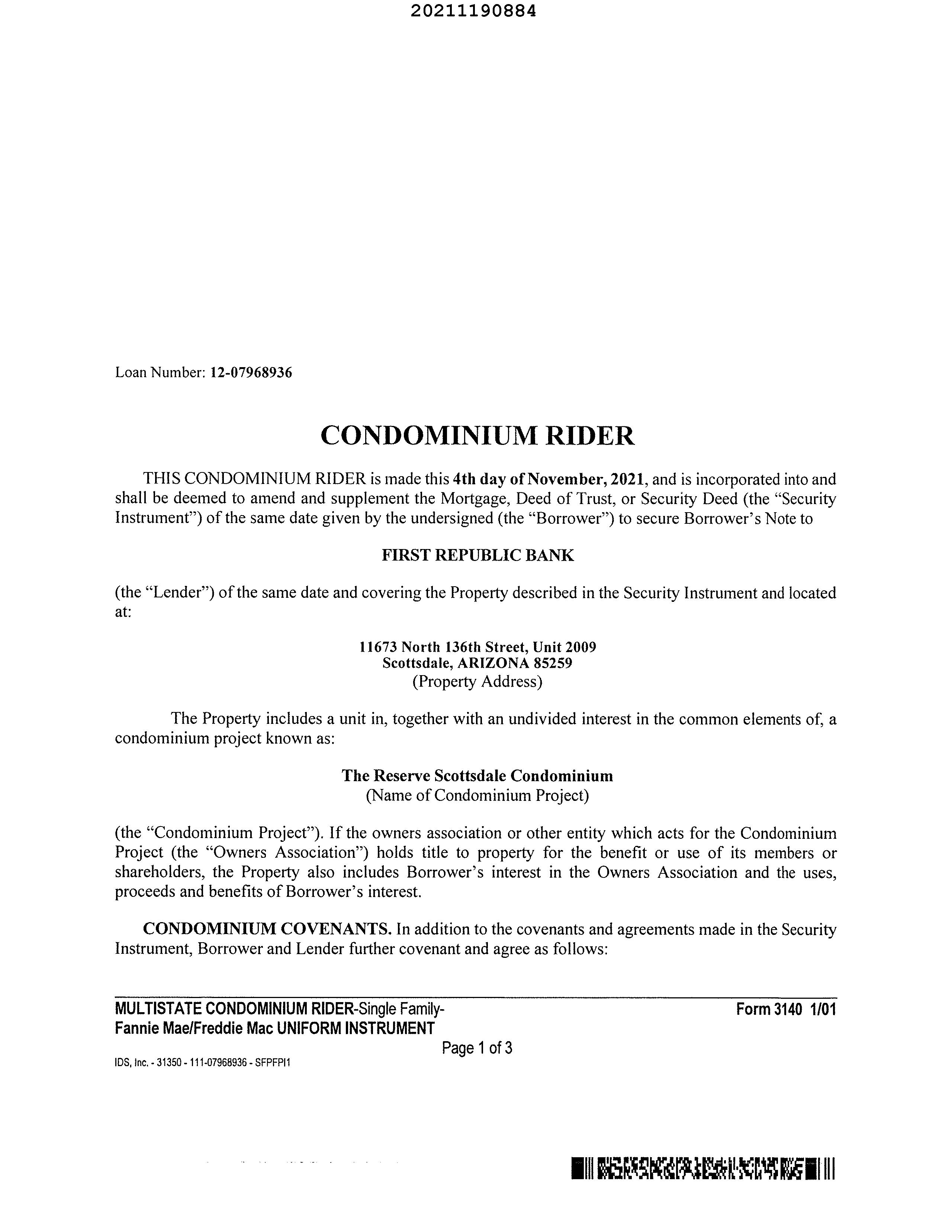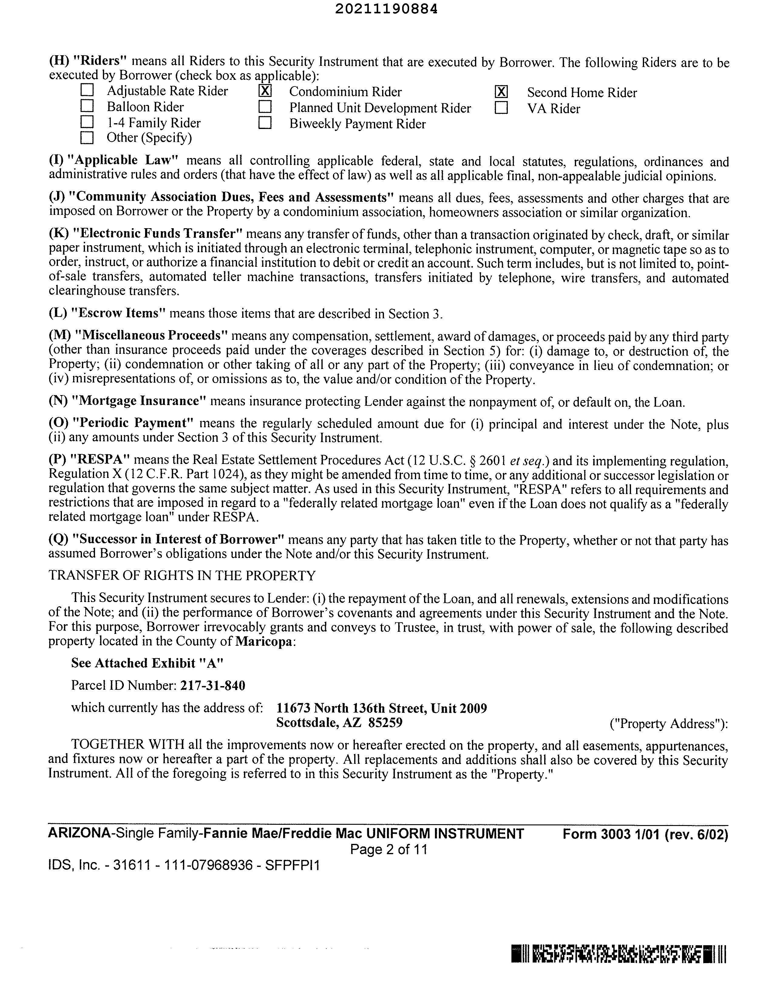 LEGAL: RESERVE SCOTTSDALE CONDOMINIUM MCR 1518-35 UNIT 2009 PLEASE NOTE: LEGAL DESCRIPTION OF THE OWNERSHIP OF THE COMMON AREA(S) CURRENT TAXES INFORMATION THROUGH 11/07/2025