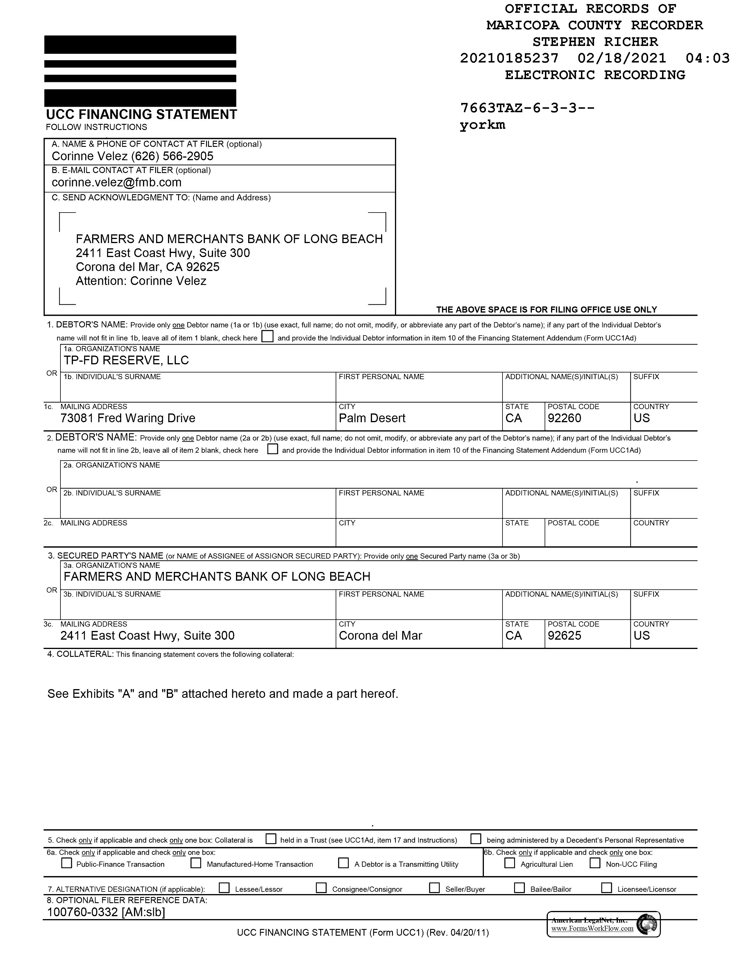 Seller Name : Tp-fd Reserve Llc Customer Name : Jeremiah Stiffler
