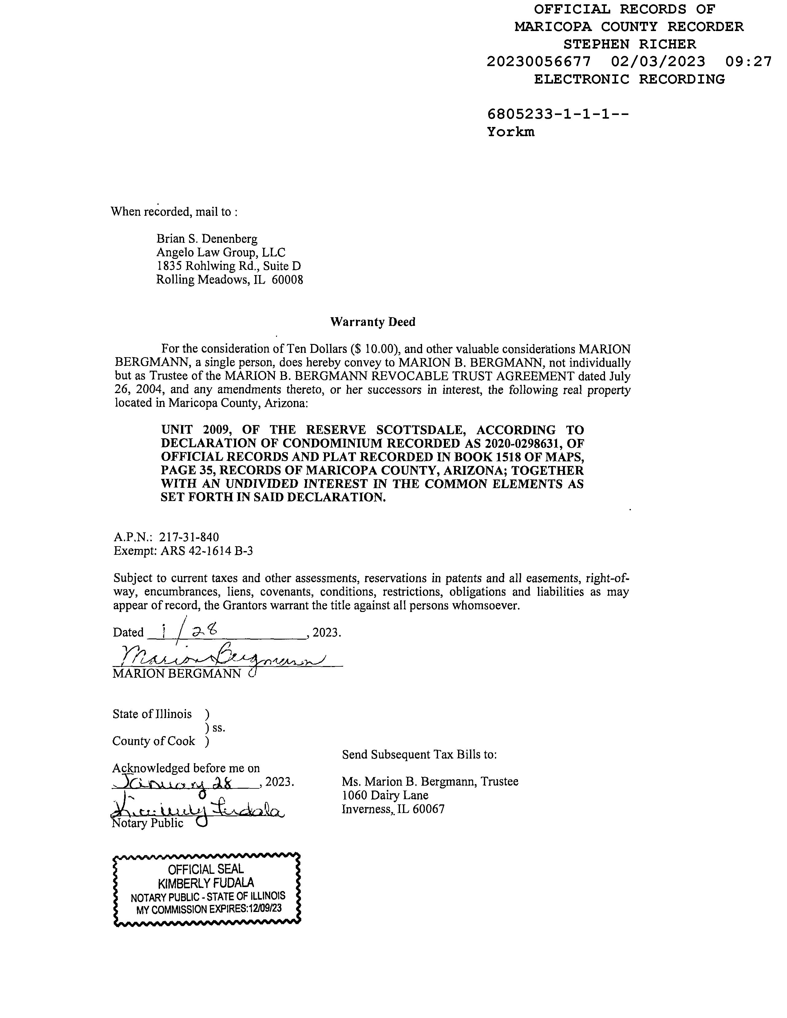 OWNER: MARION B BERGMANN REVOCABLE 2023 56677 02/03/2023
