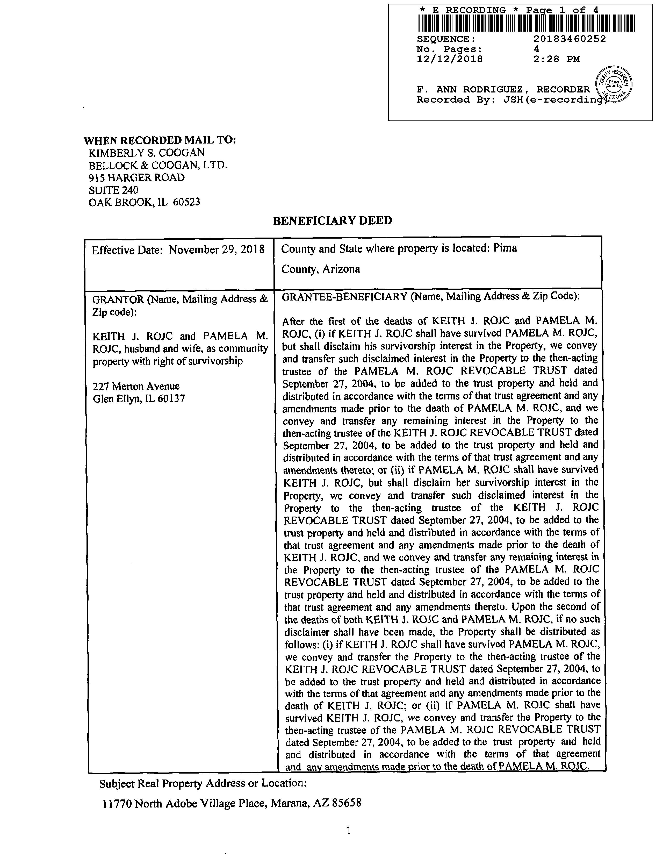 Subject Property : 11770 N Adobe Village Pl Marana AZ 85658