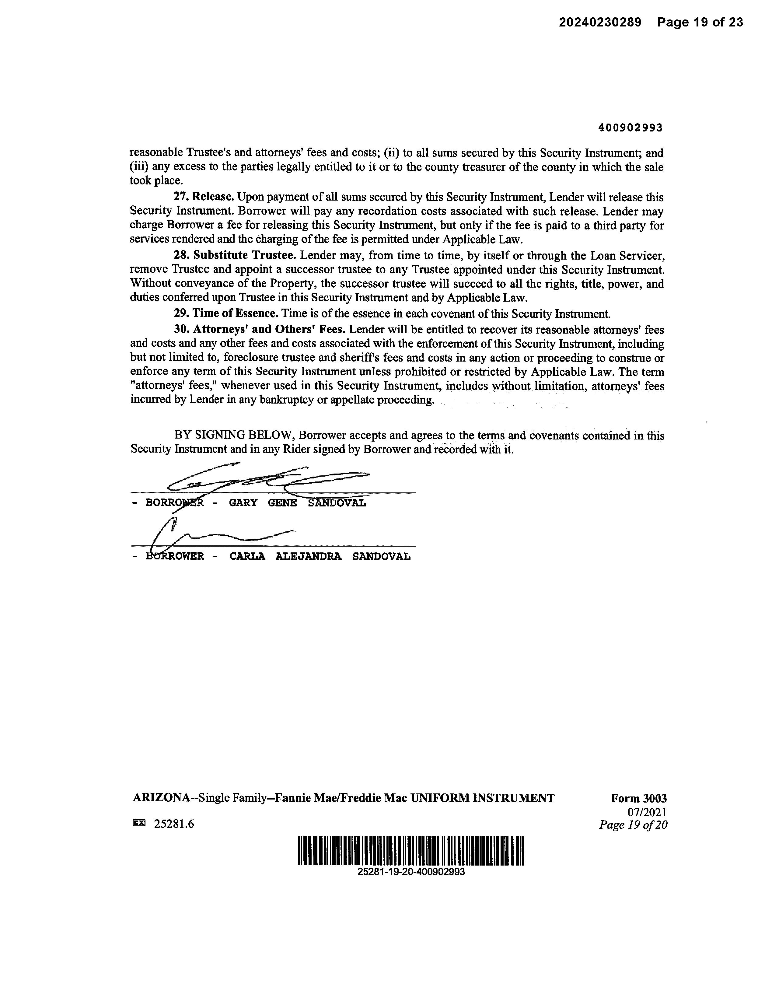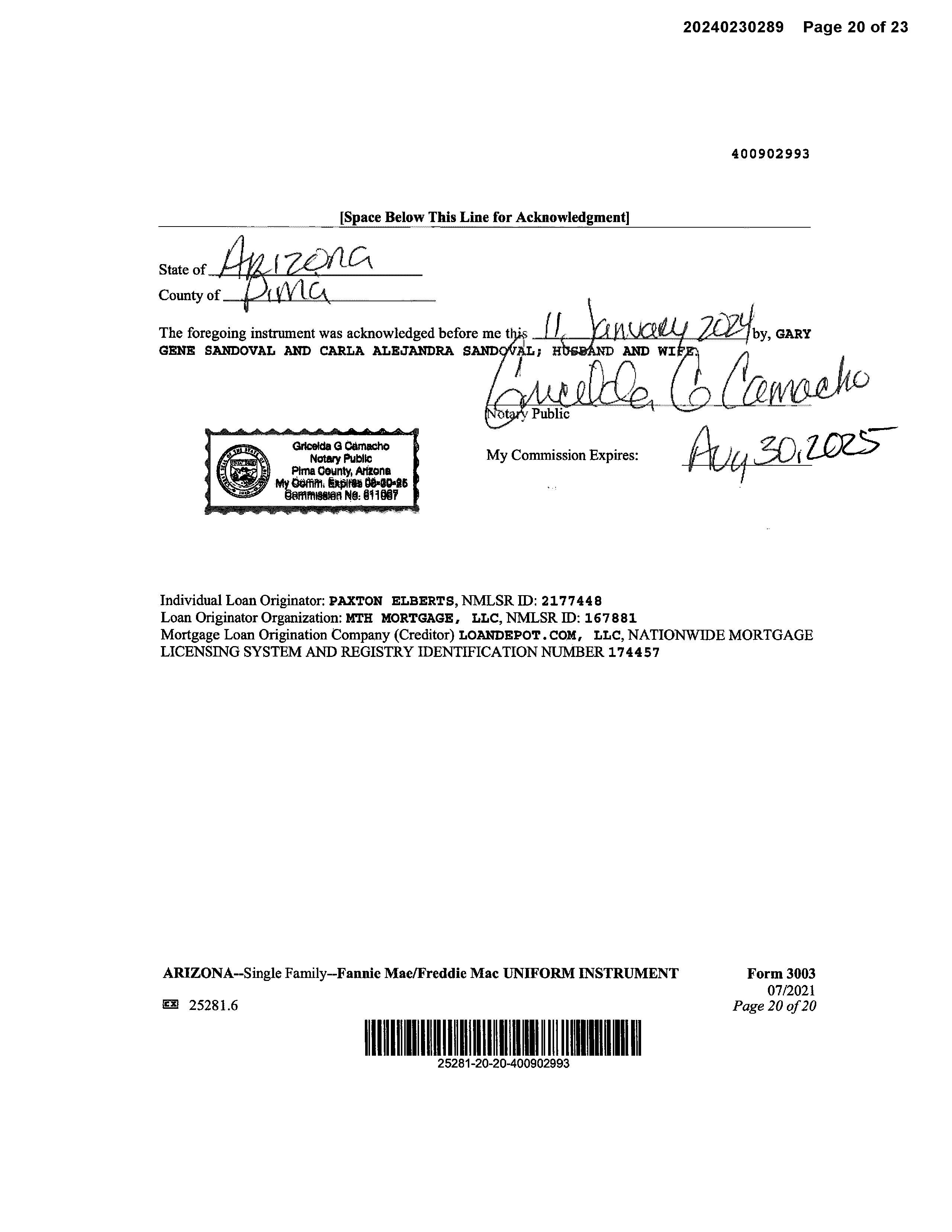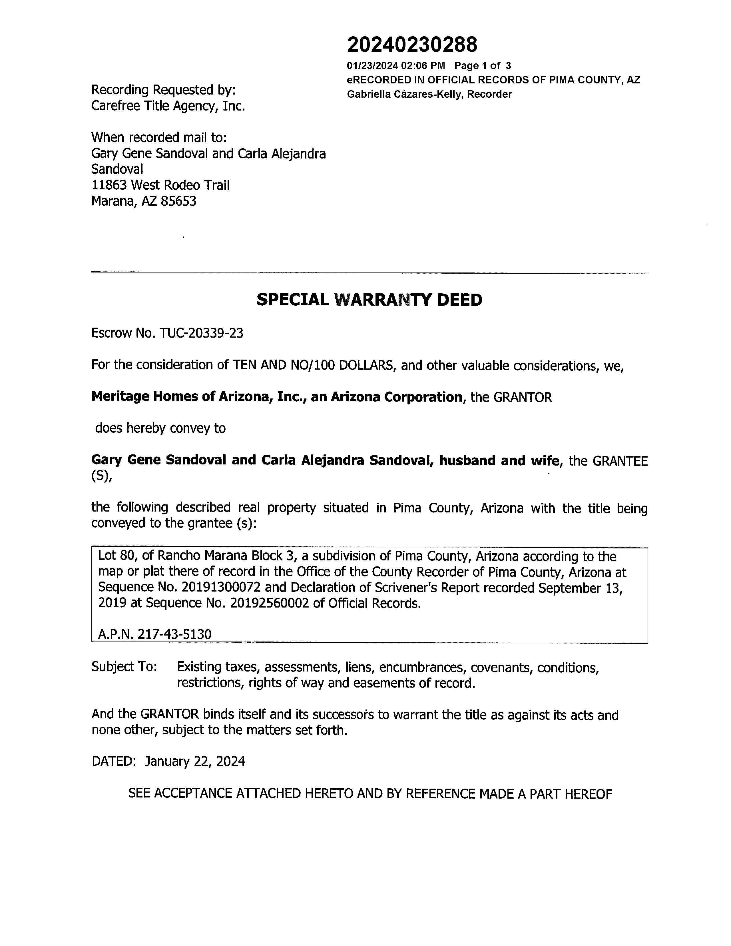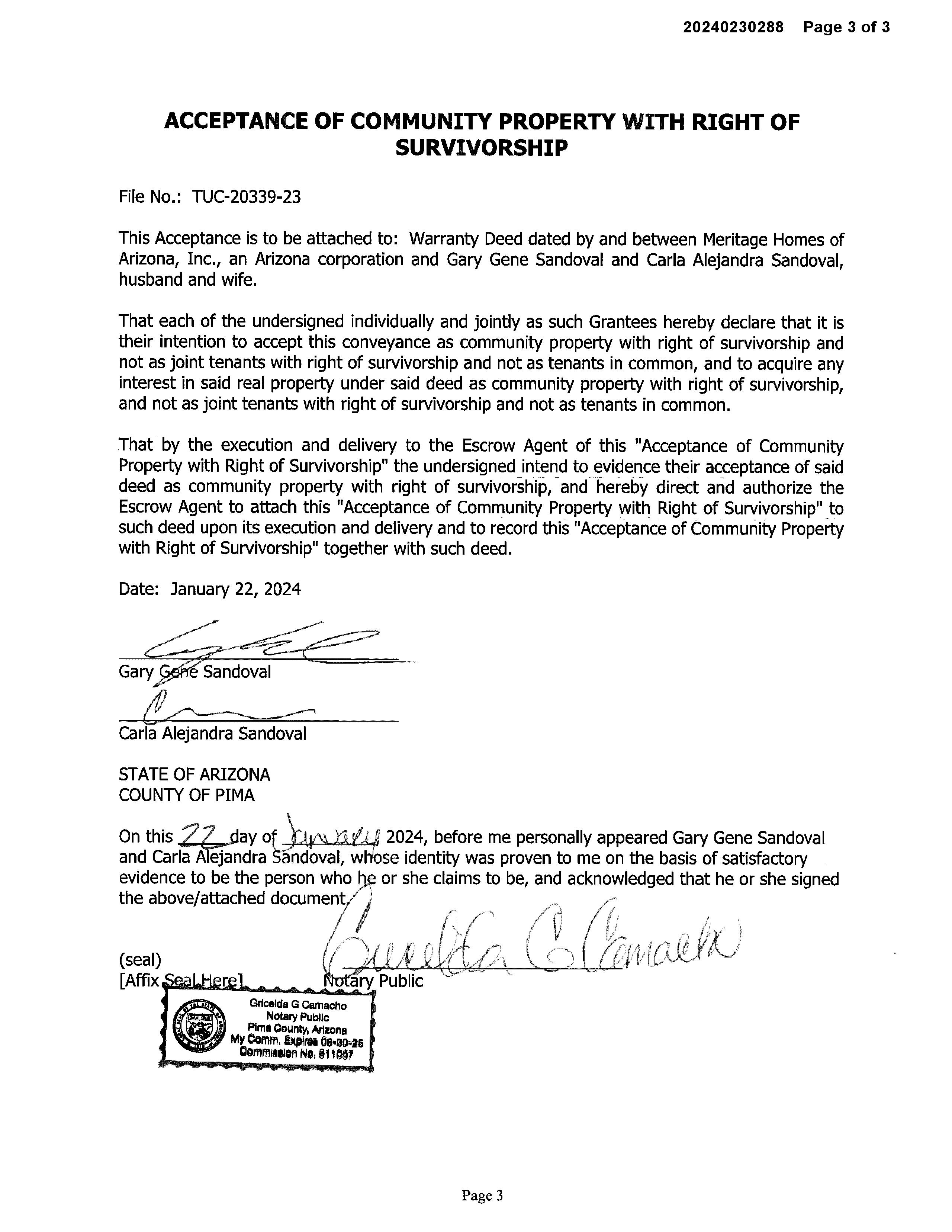 OWNER: SANDOVAL GARY & CARLA AFFIDAVIT 2024 230288 01/23/2024