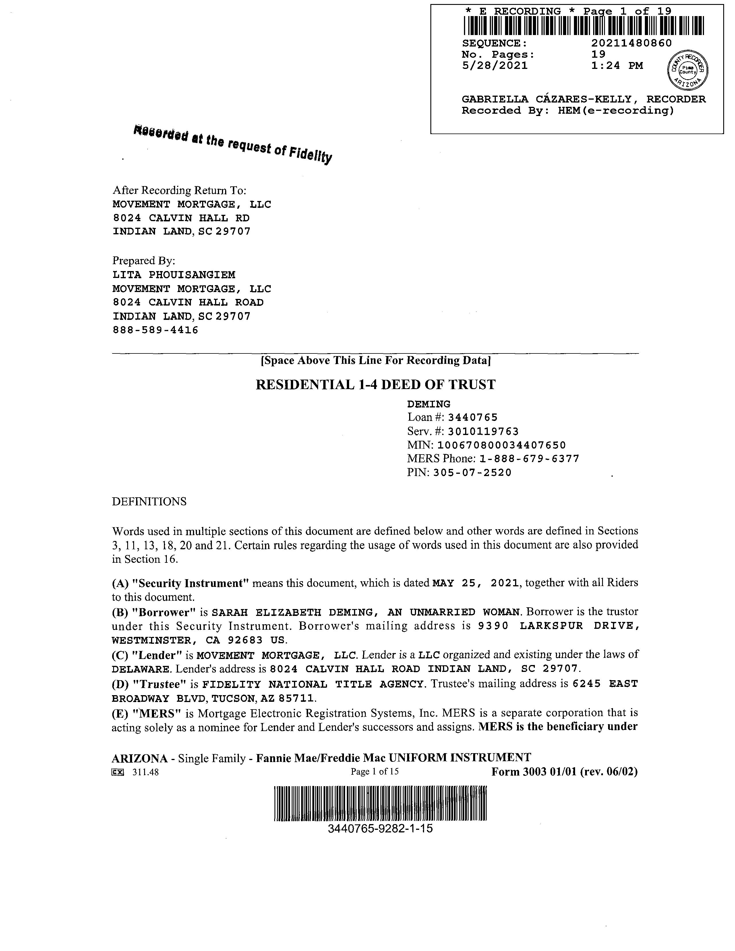 Owner Name: Deming Sarah Elizabeth / APN / Alternate APN: 305-07-2520 / Deed Type: Special Warranty Deed