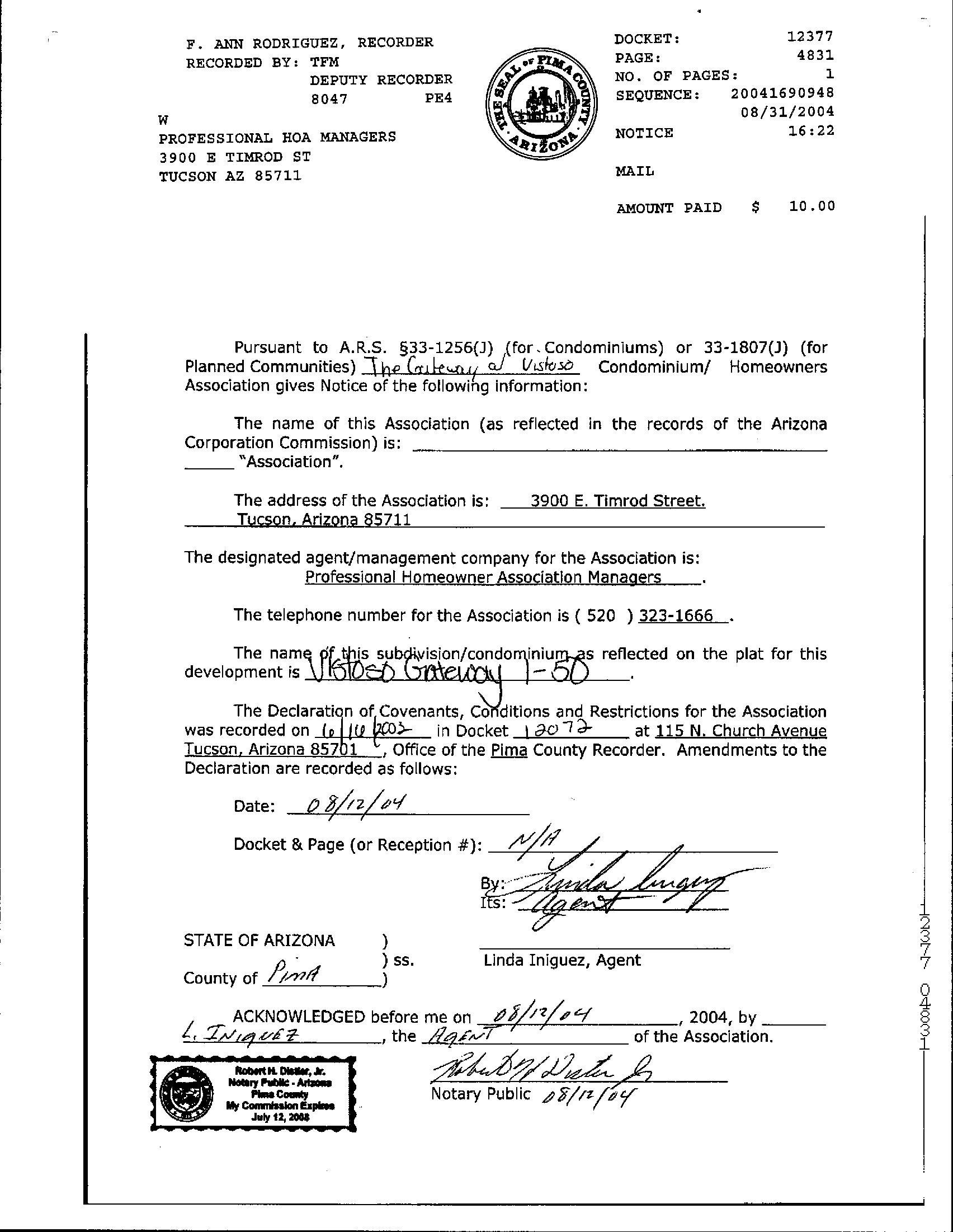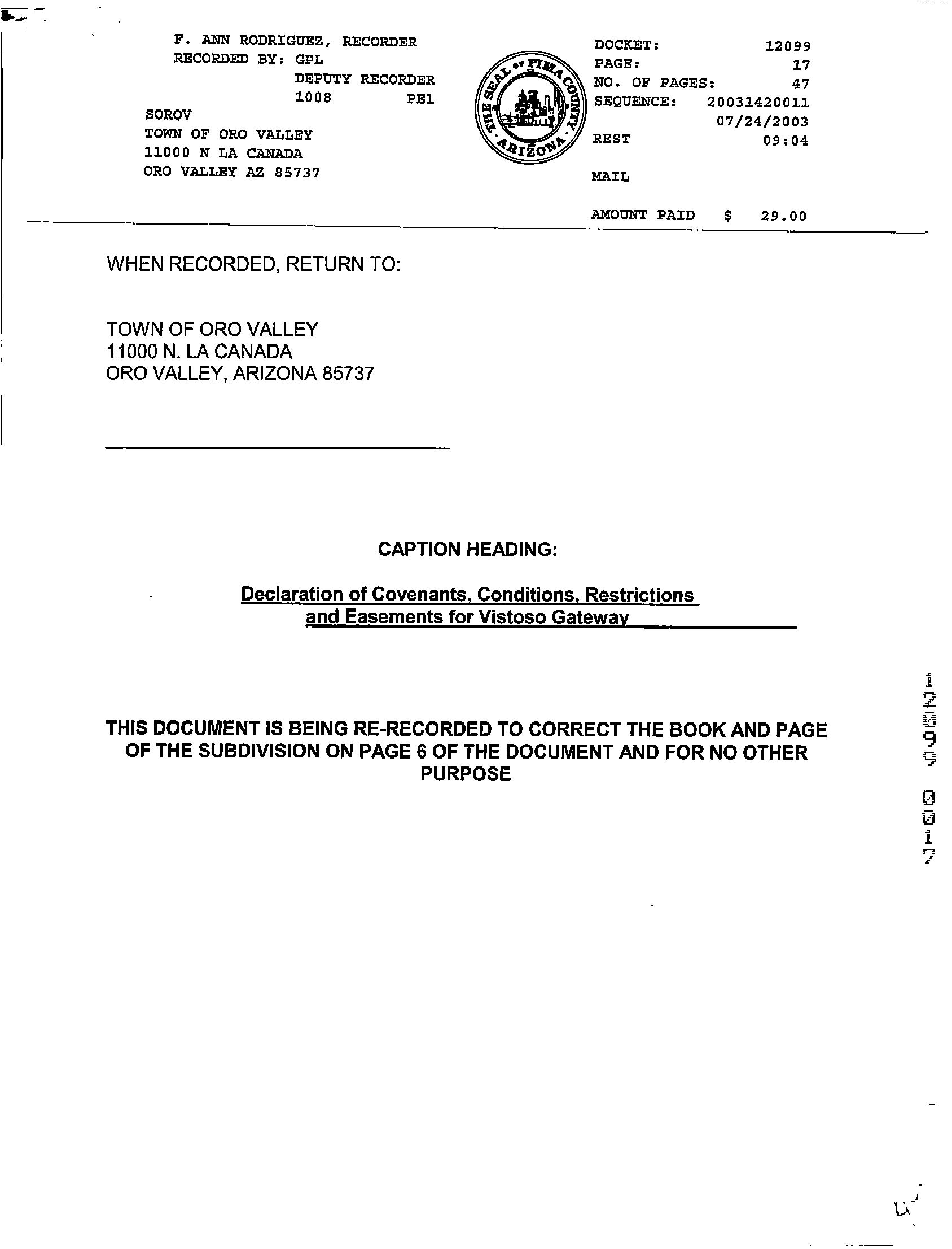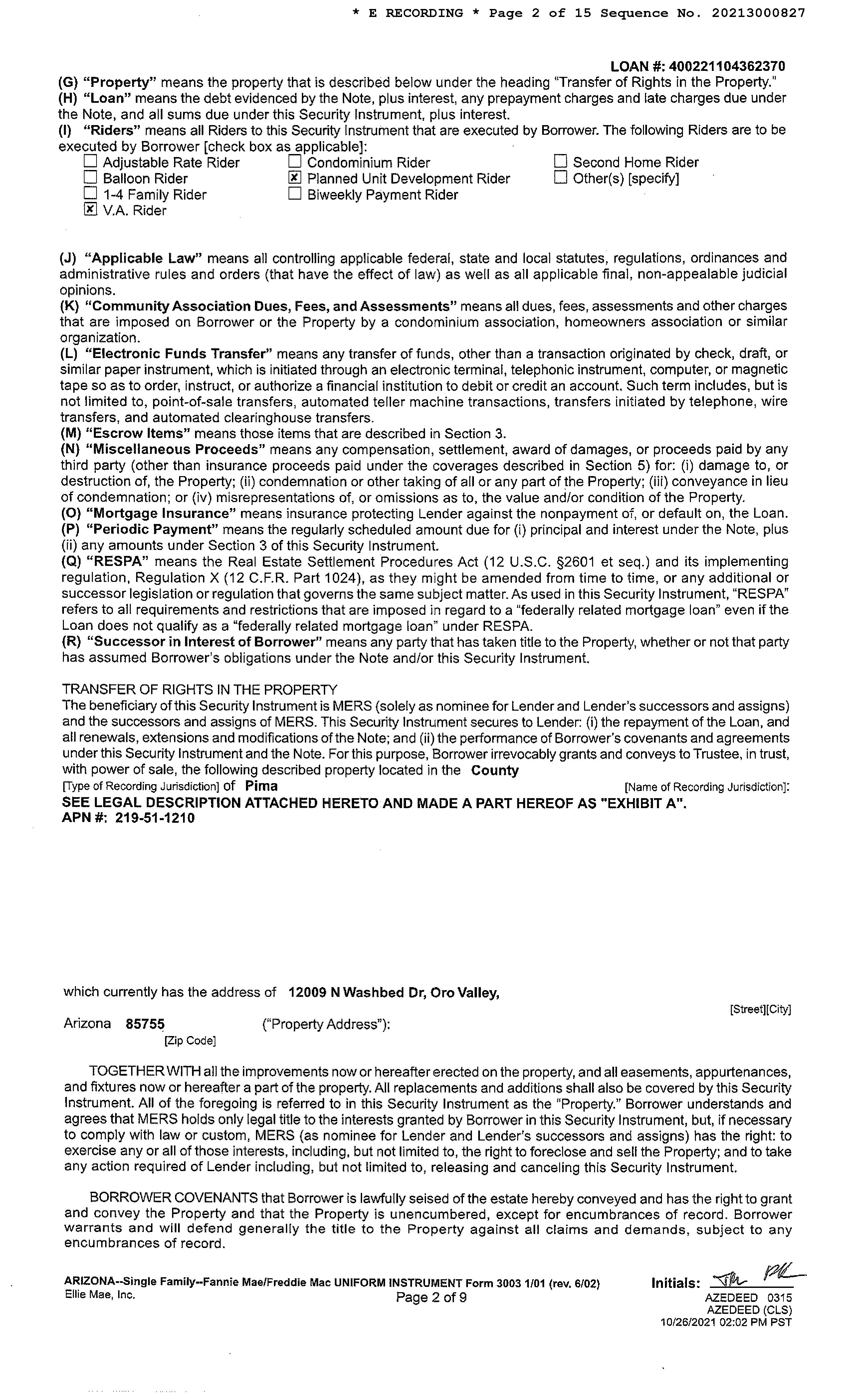 Mailing Address : 12009 N Washbed Dr, Oro Valley AZ 85755-8760 R138