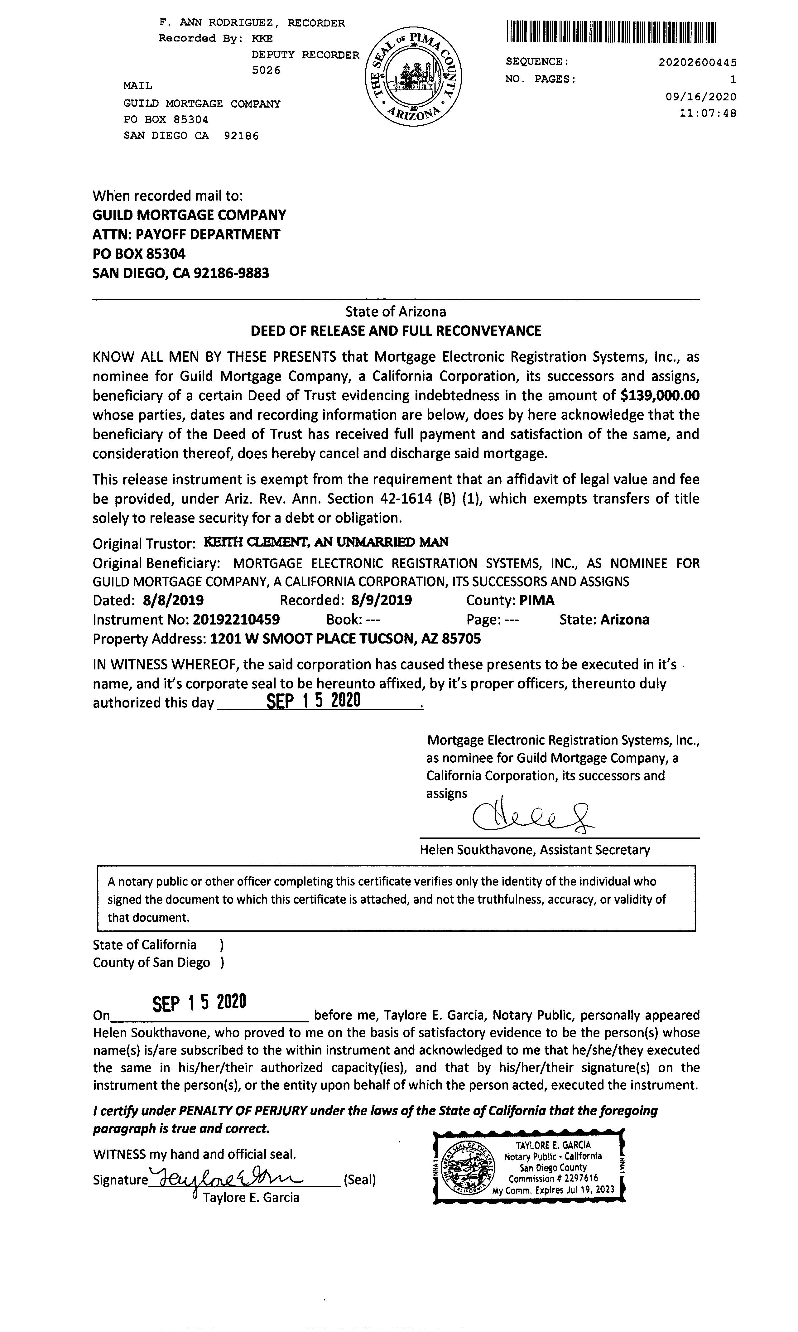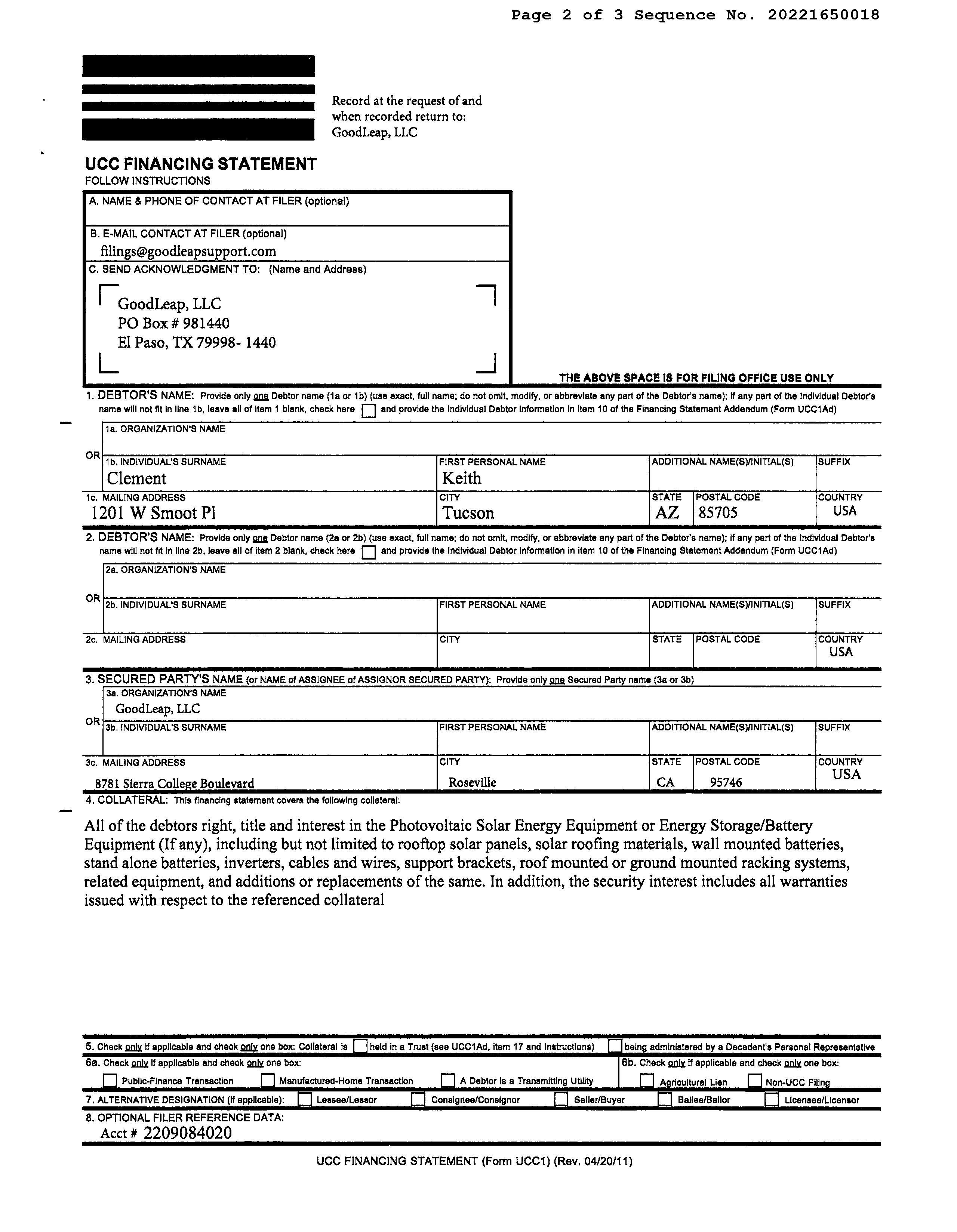 OWNER: CLEMENT KEITH AFFIDAVIT 2018 610305 03/02/2018