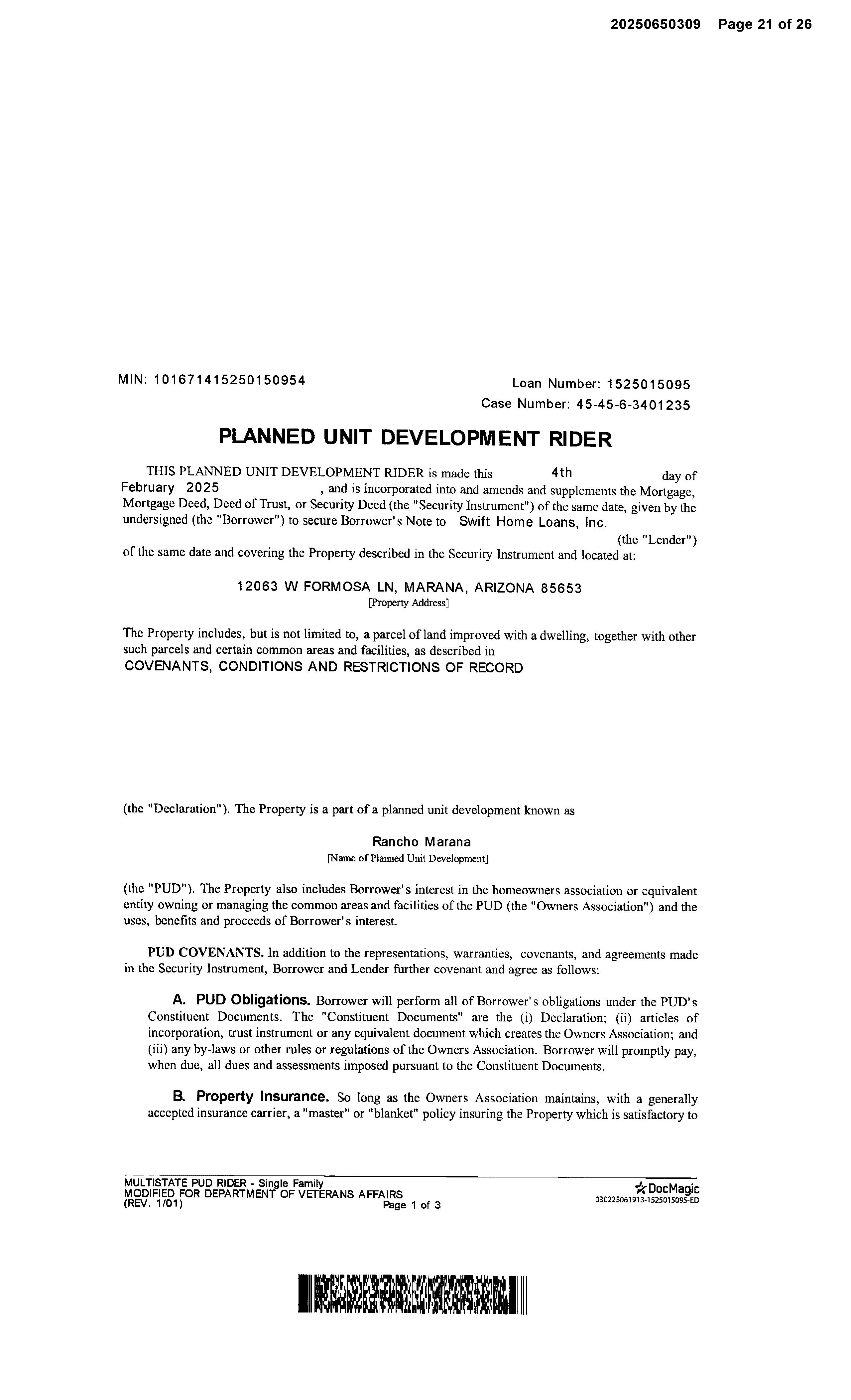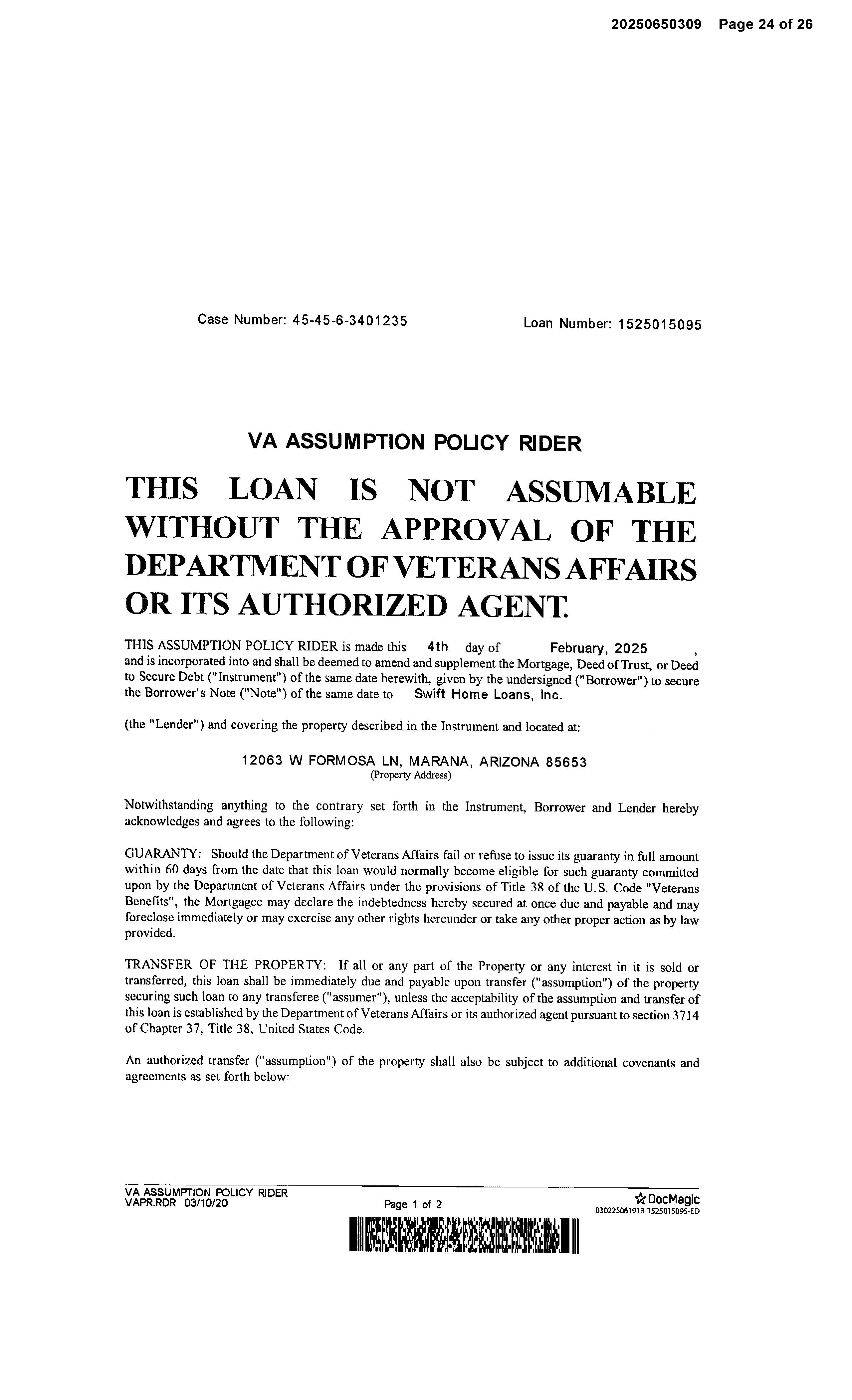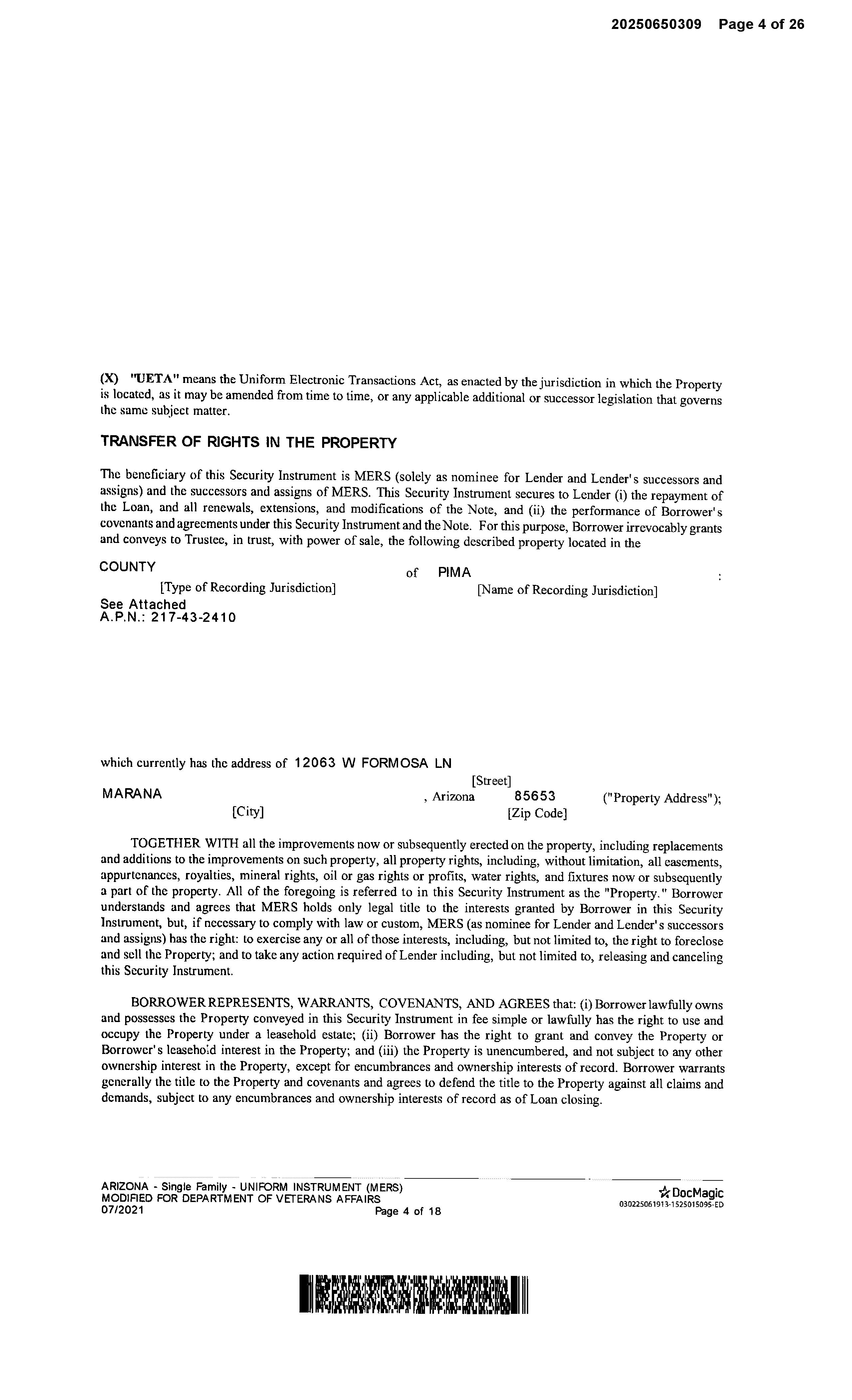 Mailing Address : 12063 W Formosa Ln, Marana AZ 85653-7934 H020