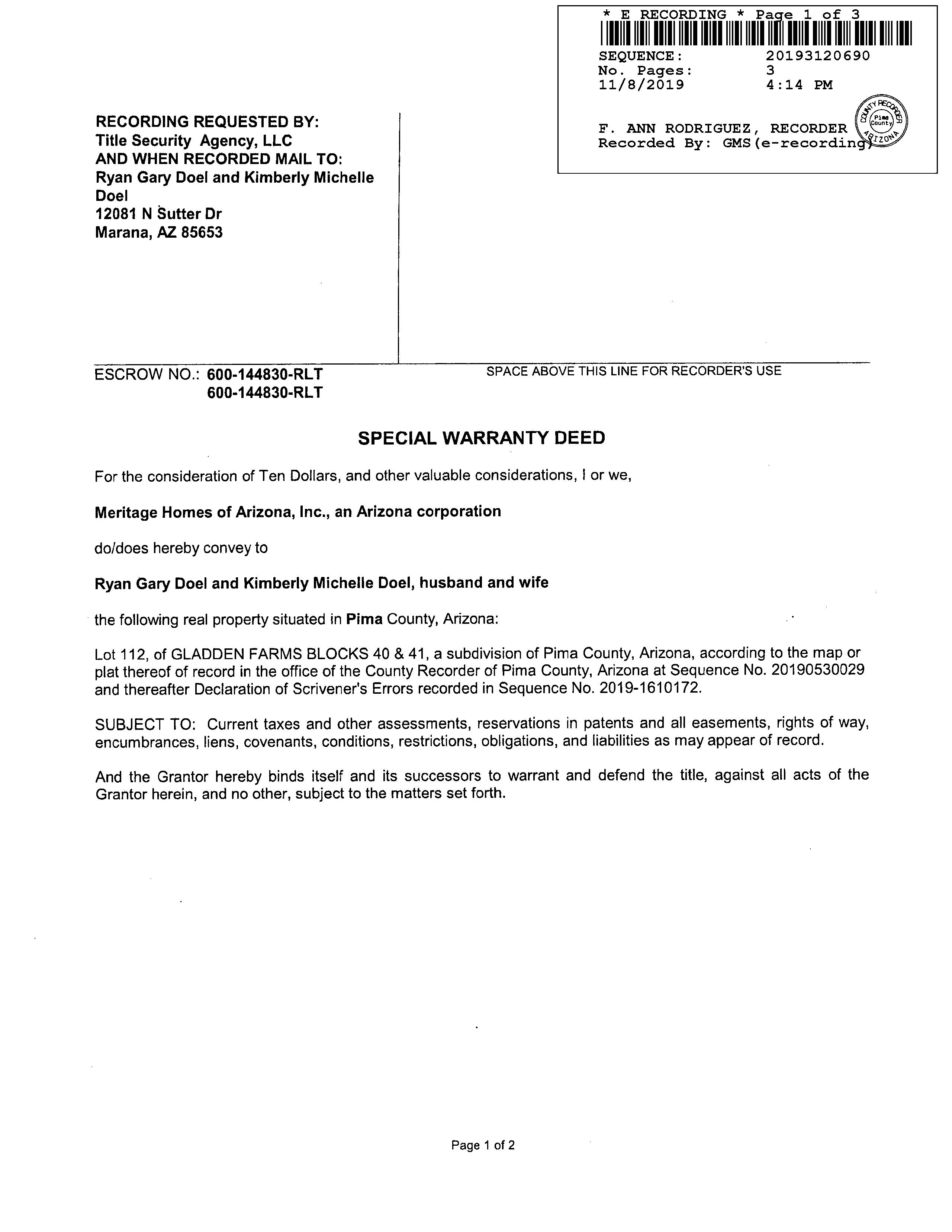 Owner Name : Doel Ryan Gary / Doel Kimberly Michelle