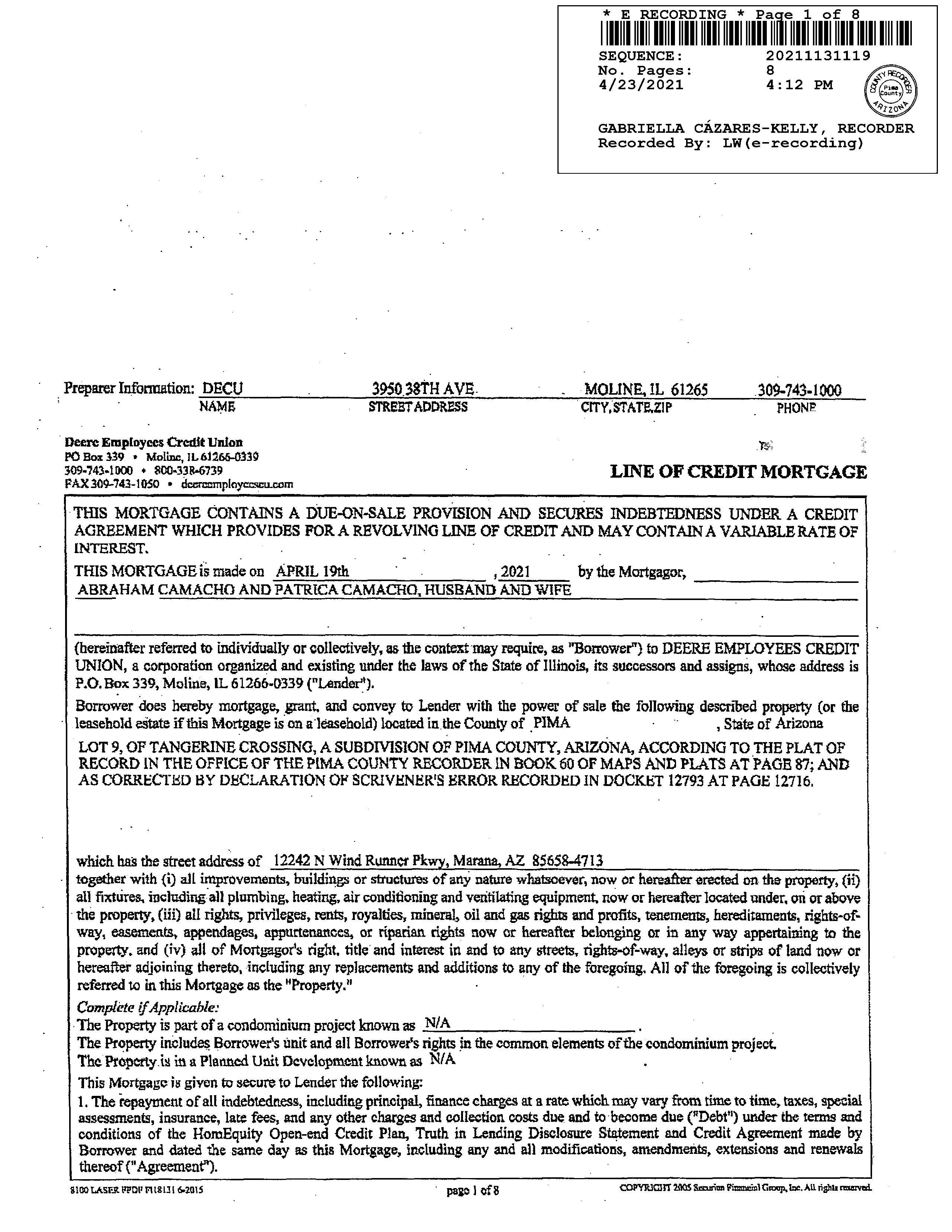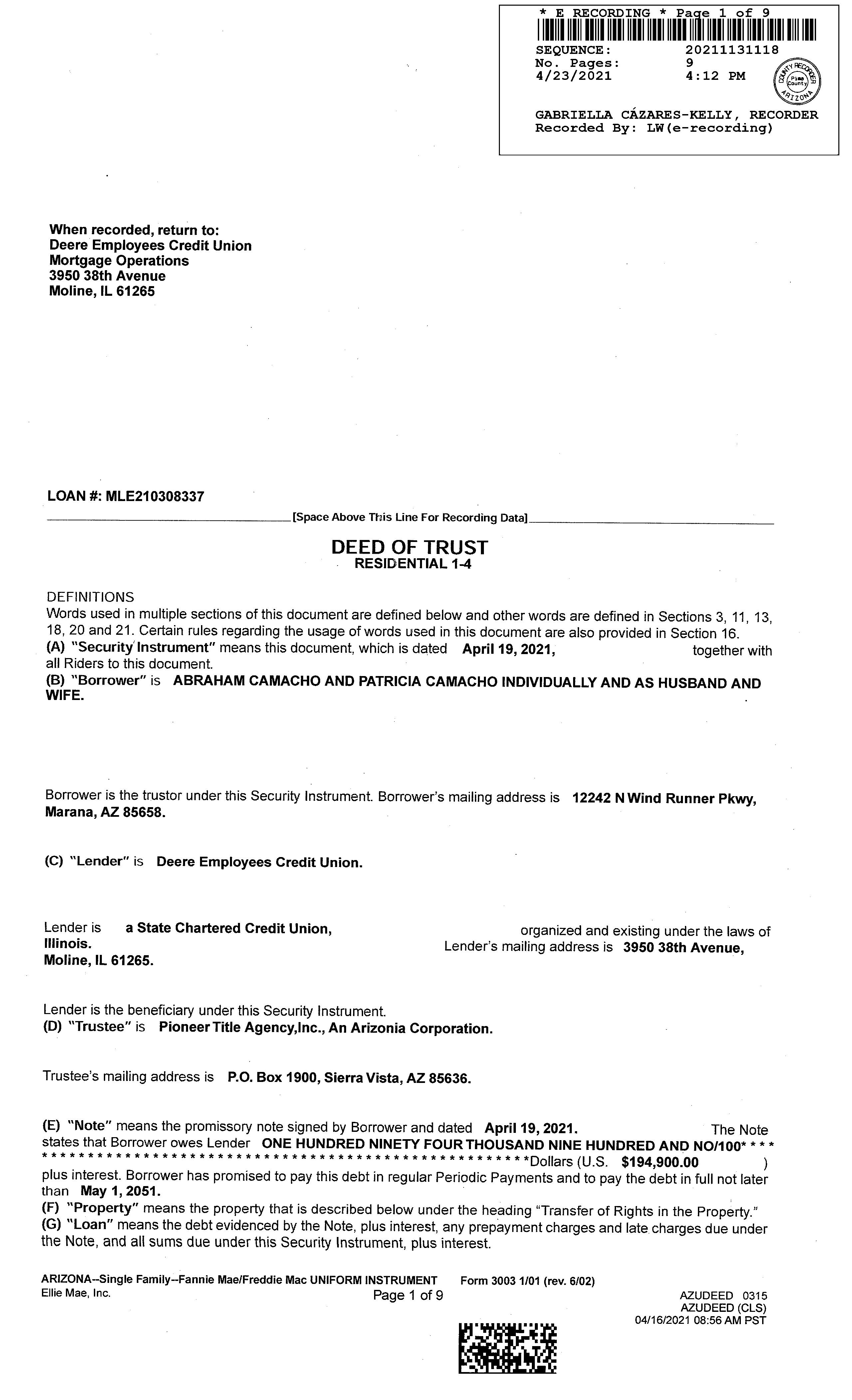 Mailing Address : 12242 N Wind Runner Pkwy, Marana AZ 85658 H016