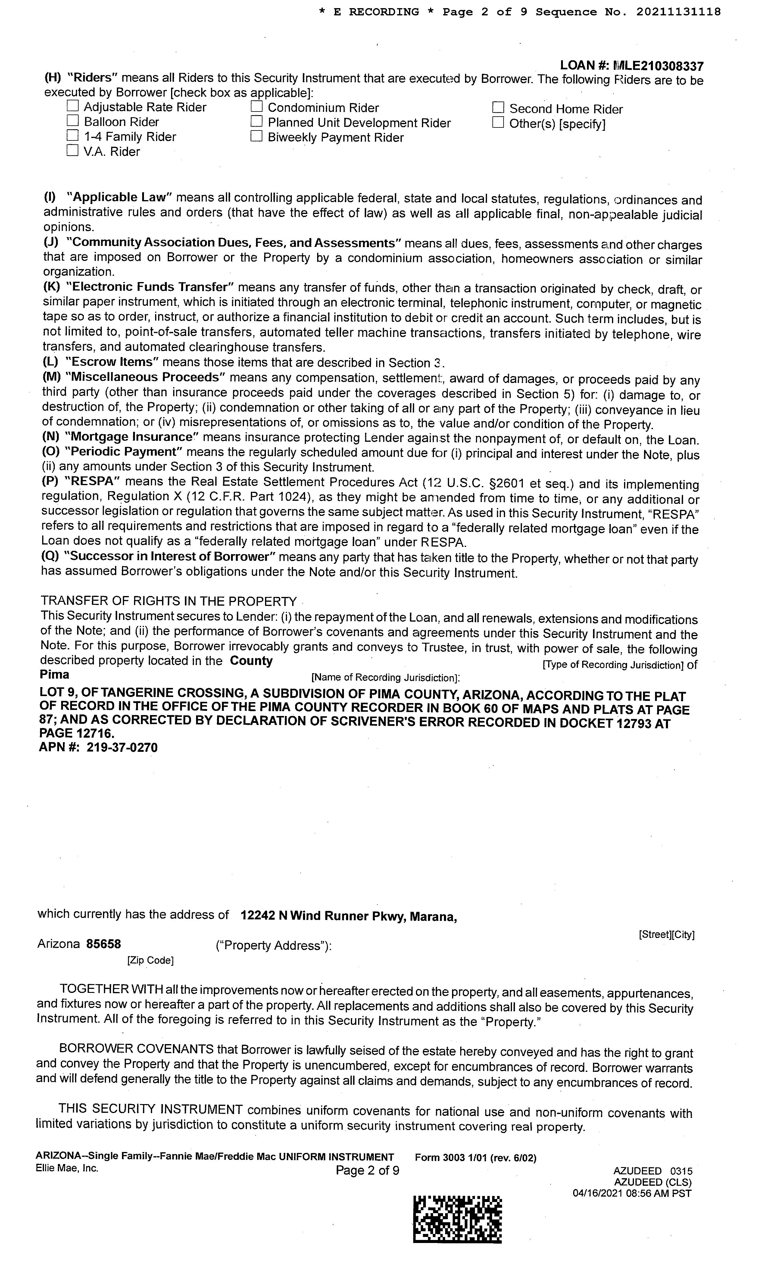 APN / Alternate APN: 219-37-3560 / Deed Type: Warranty Deed