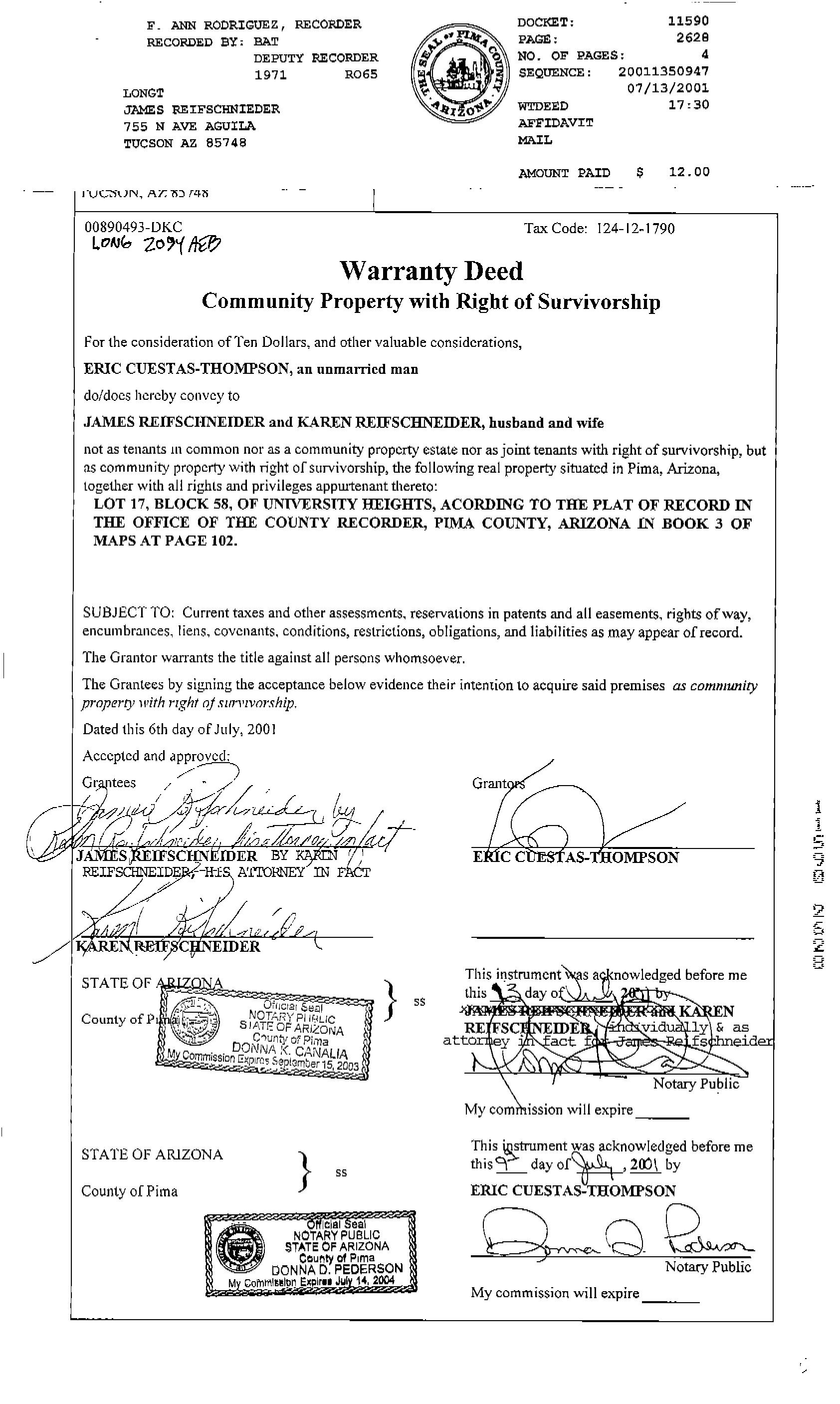 Deed Type : Warranty Deed