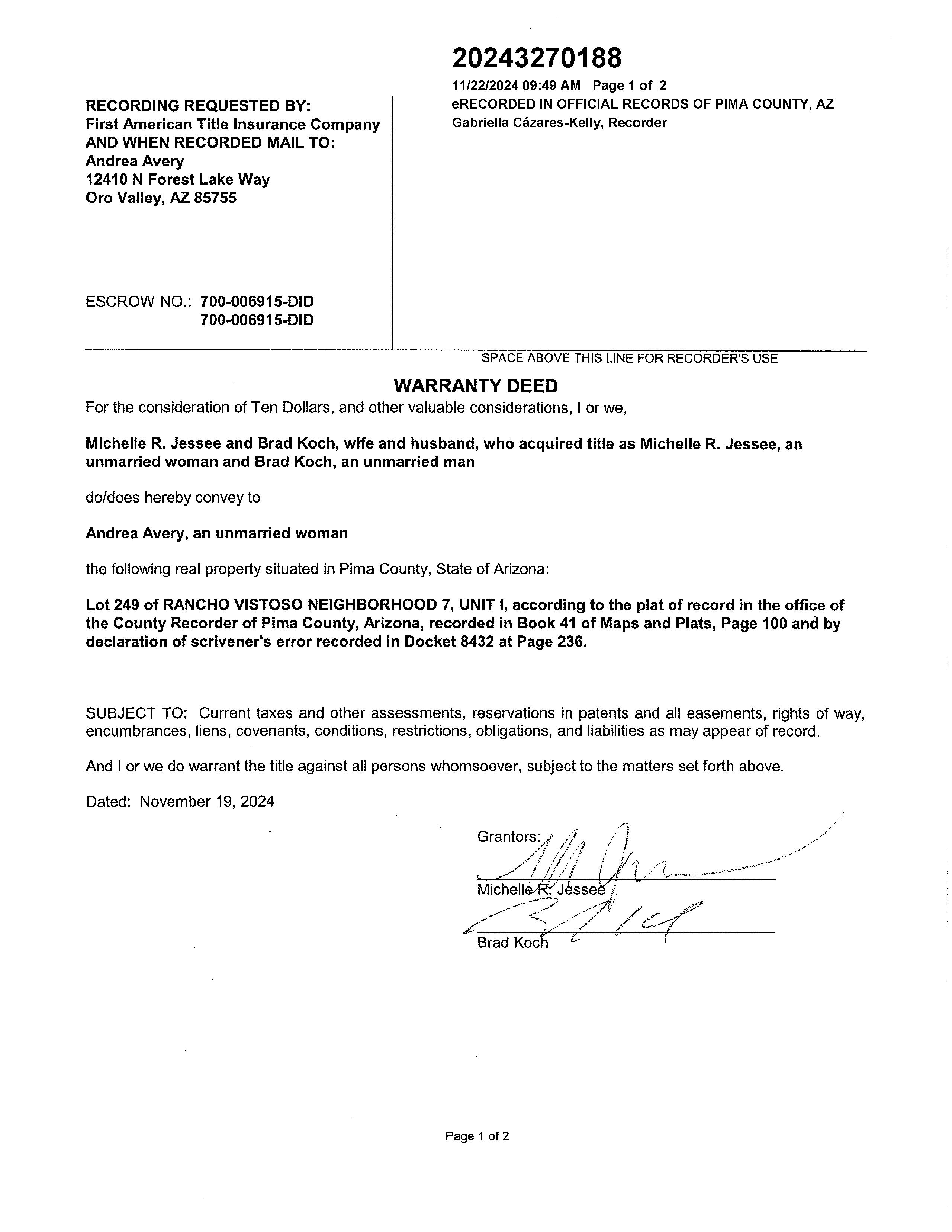 Title Insurance Policy. First American Title will deliver your policy and your recorded deed.