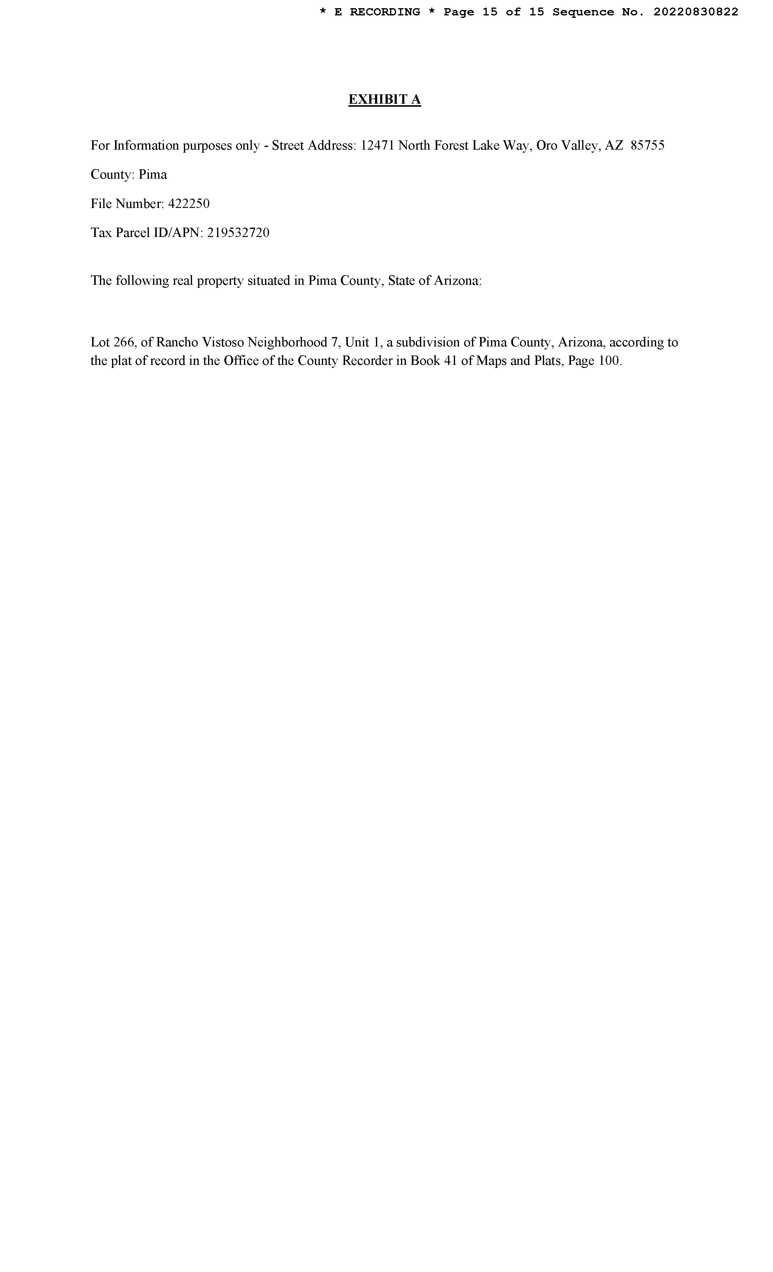 Legal Description : Rancho Vistoso Neighborhood 7 Unit 1 Lot 0266