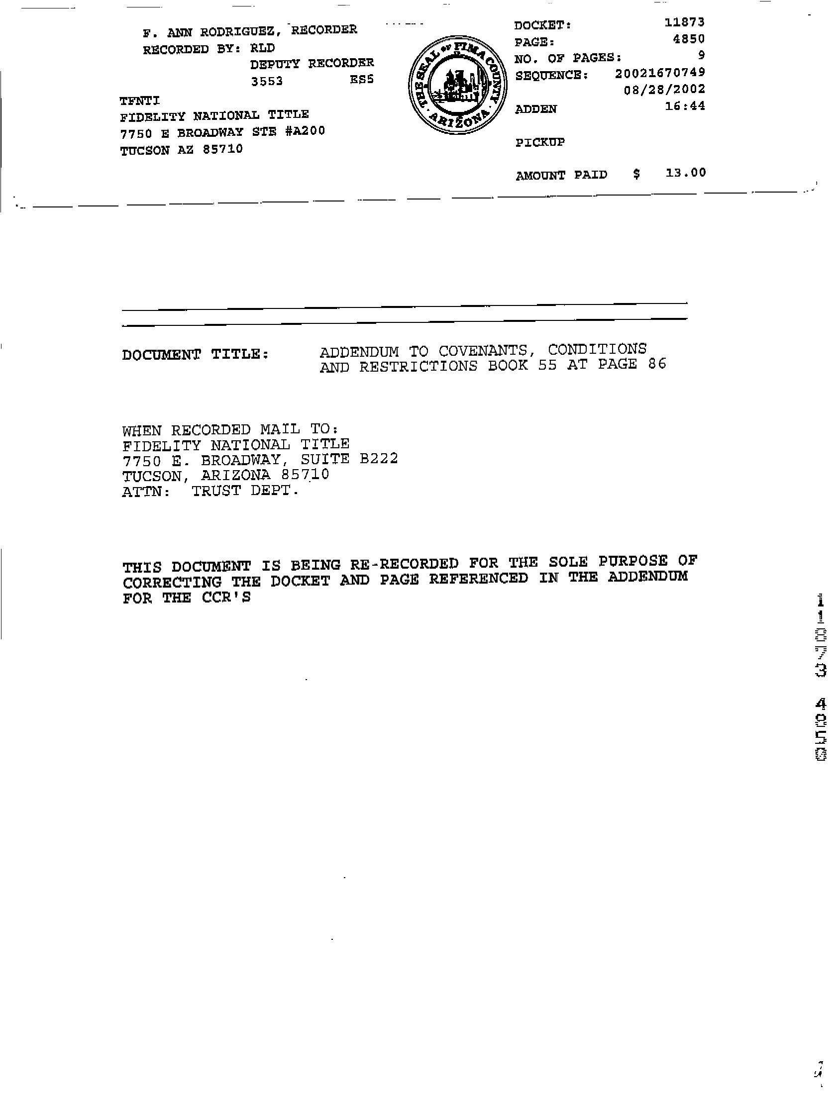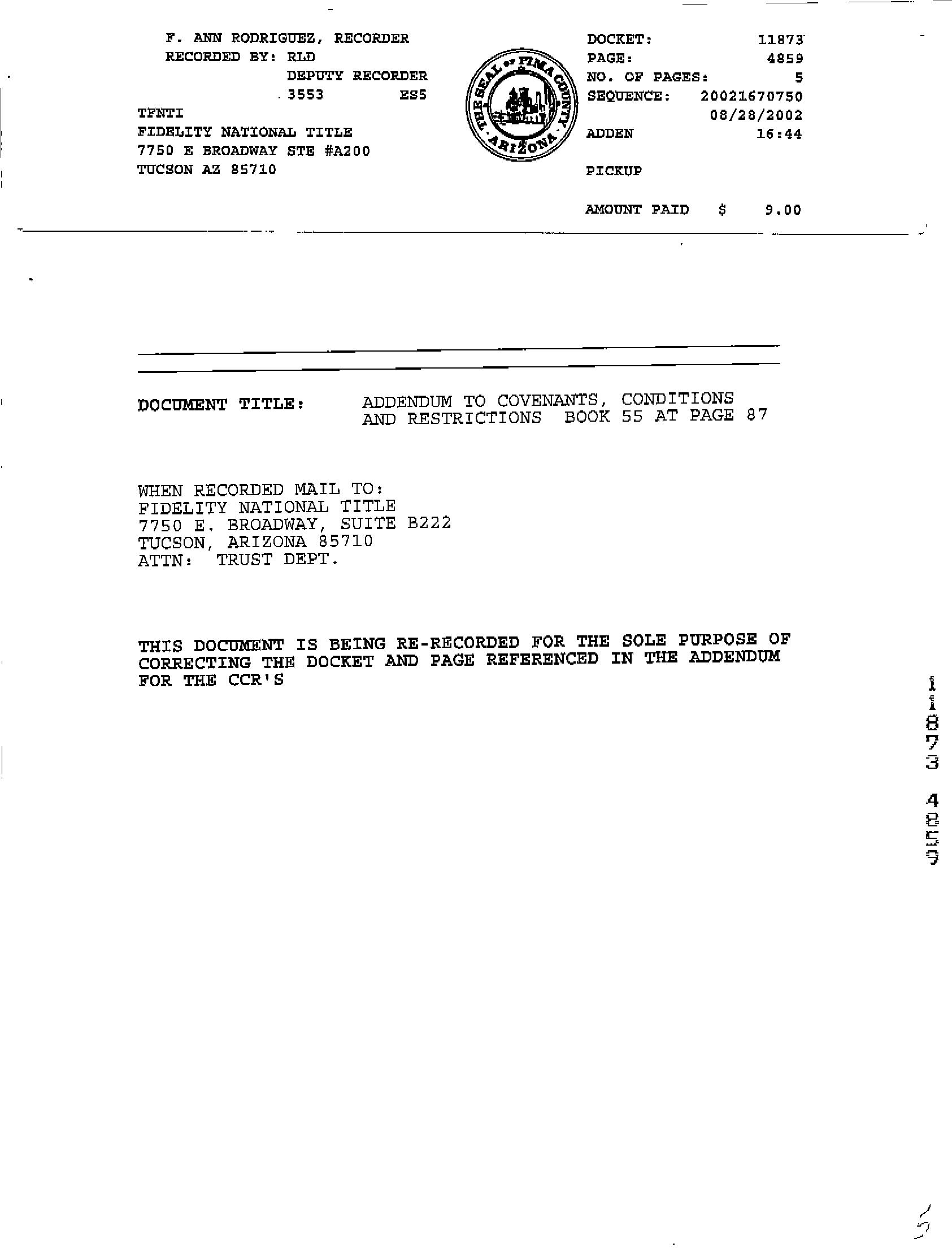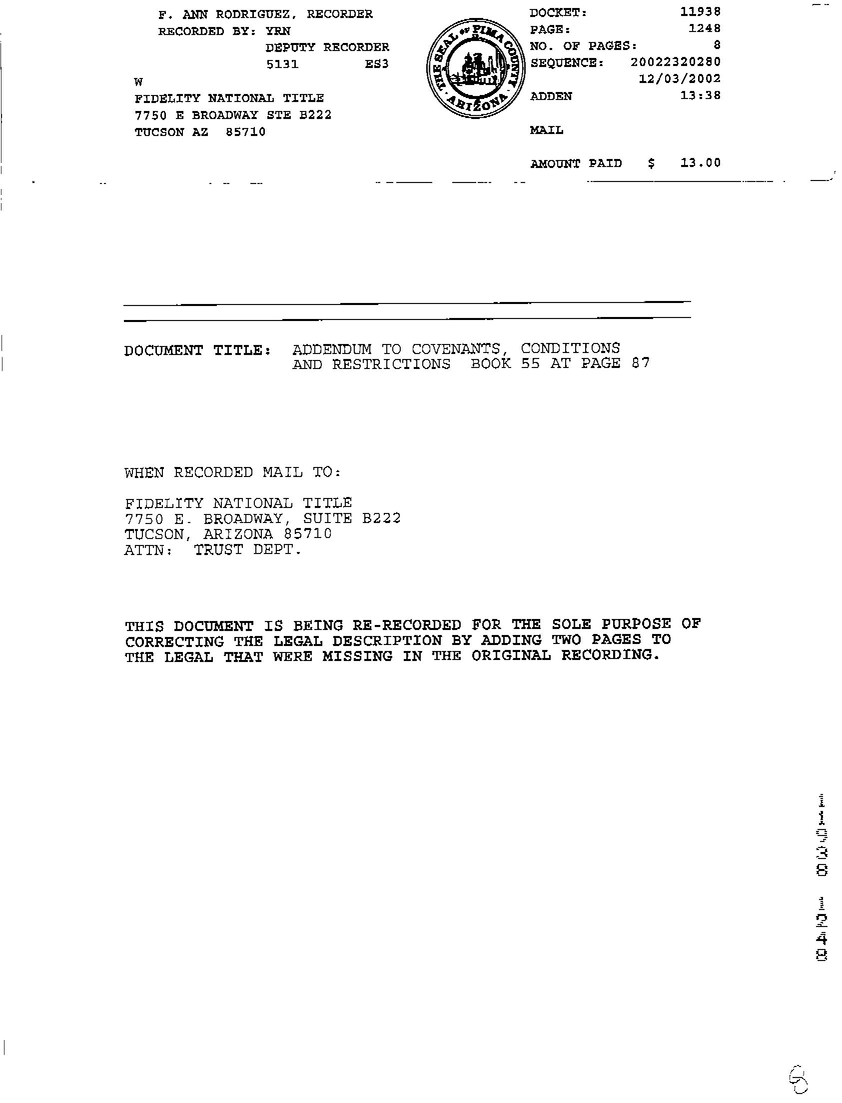 This report is not an insured product or service or a representation of the condition of title to real property. It is not an abstract, legal opinion, opinion of title, title insurance commitment or preliminary report, or any form of Title Insurance or Guaranty. This report is issued exclusively for the benefit of the Applicant therefor and may not be used or relied upon by any other person. This report may not be reproduced in any manner without First Americans prior written consent. First American does not represent or warrant that the information herein is complete or free from error, and the information herein is provided without any warranties of any kind, as-is, and with all faults. As a material part of the consideration given in exchange for the issuance of this report, recipient agrees that First Americans sole liability for any loss or damage caused by an error or omission due to inaccurate information or negligence in preparing this report shall be limited to the fee charged for the report. Recipient accepts this report with this limitation and agrees that First American would not have issued this report but for the limitation of liability described above. First American makes no representation or warranty as to the legality or propriety of recipient's use of the information herein.