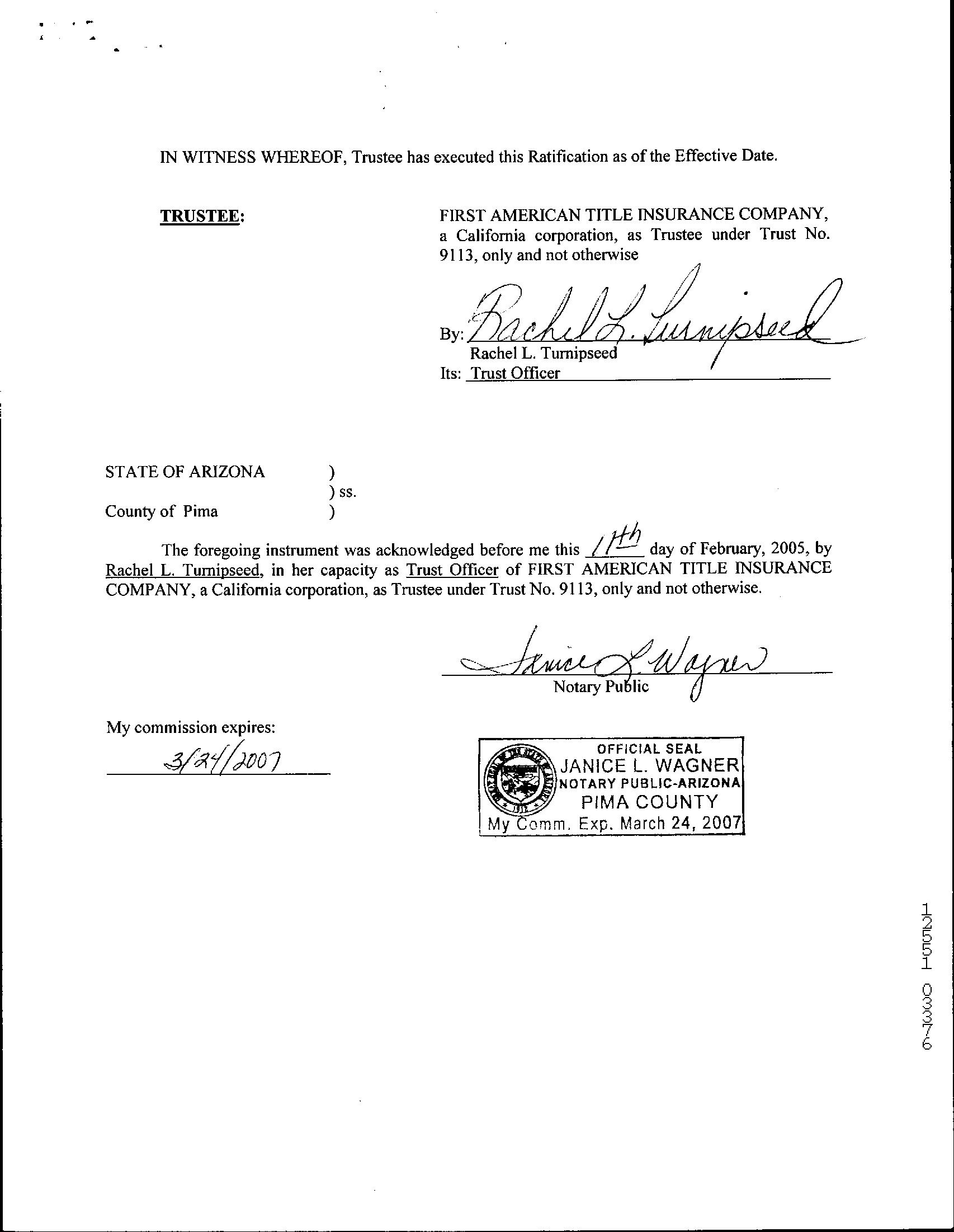 Know that our wiring instructions do not change so any communication is suspect. Our banking institution is First American Trust.