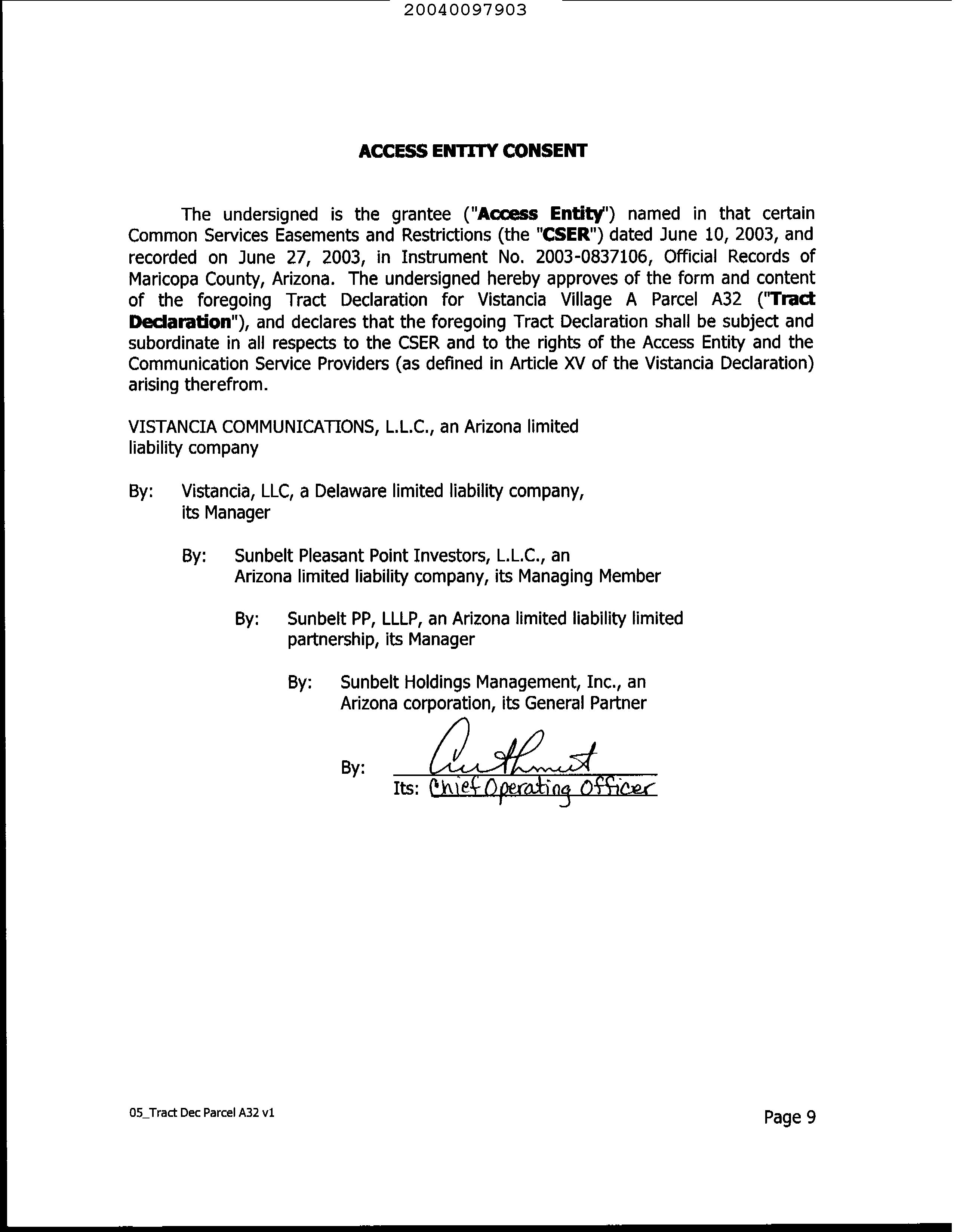 LEGAL: VISTANCIA VILLAGE A PARCEL A32 MCR 655-34