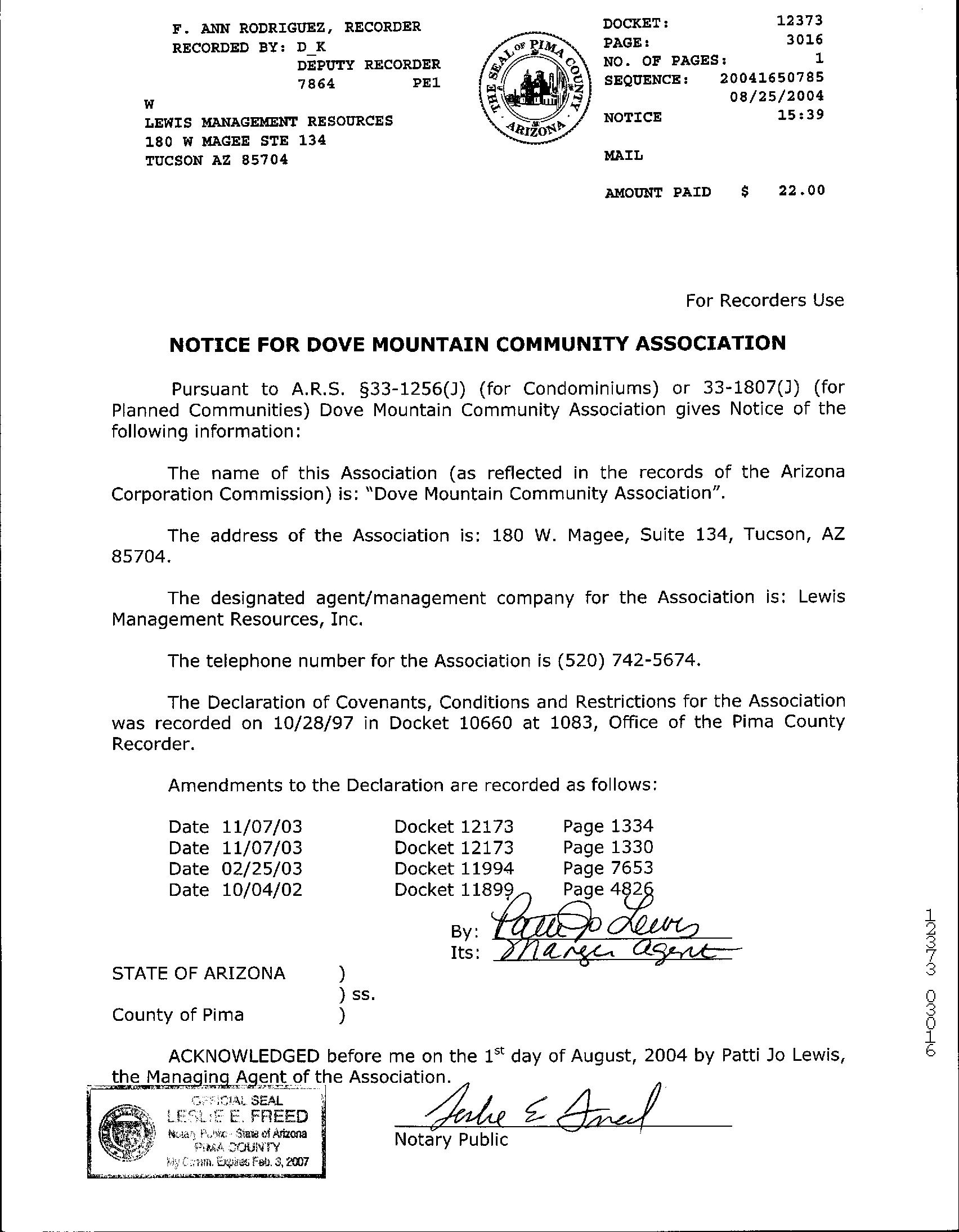 Mailing Address : 12587 N New Reflection Dr, Marana AZ 85658-4398 H011