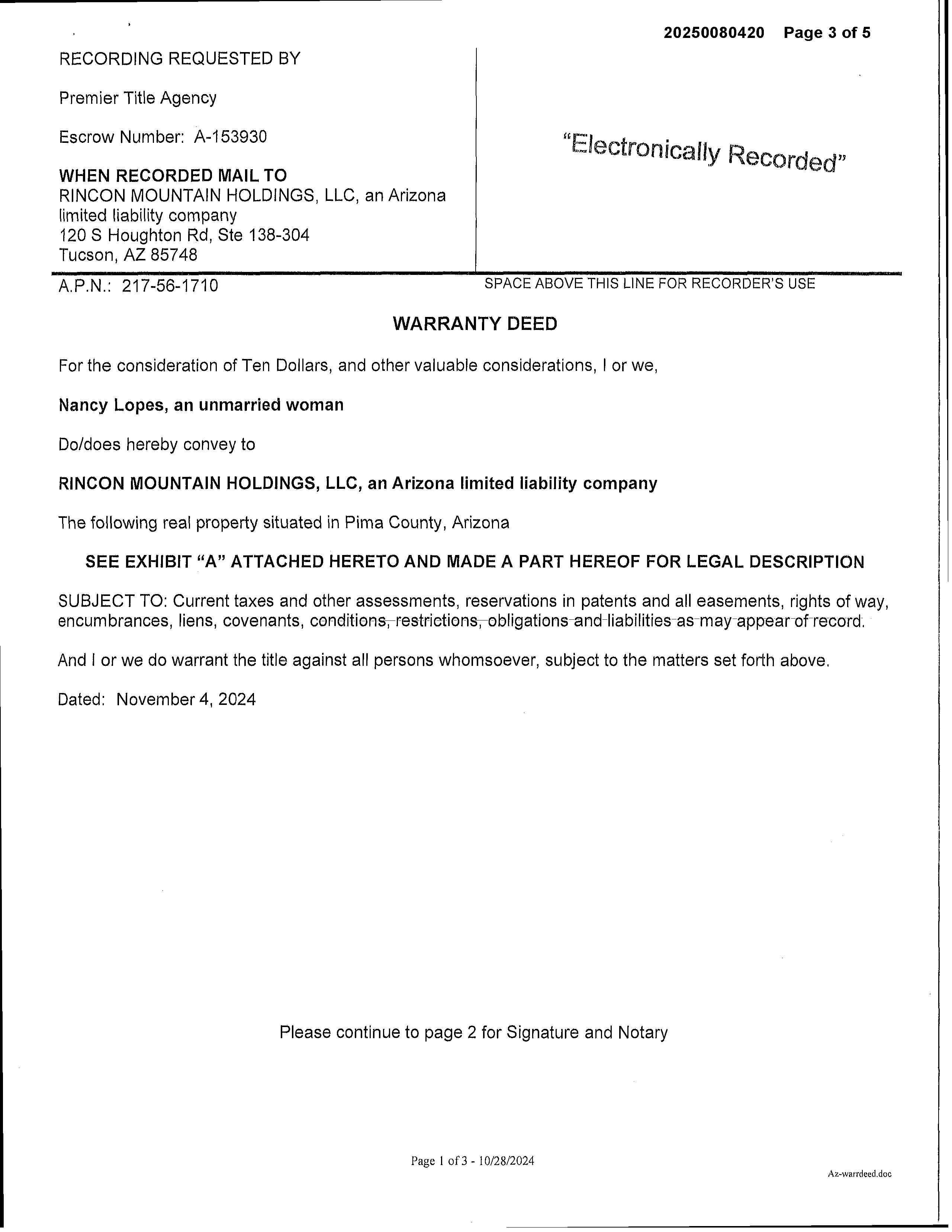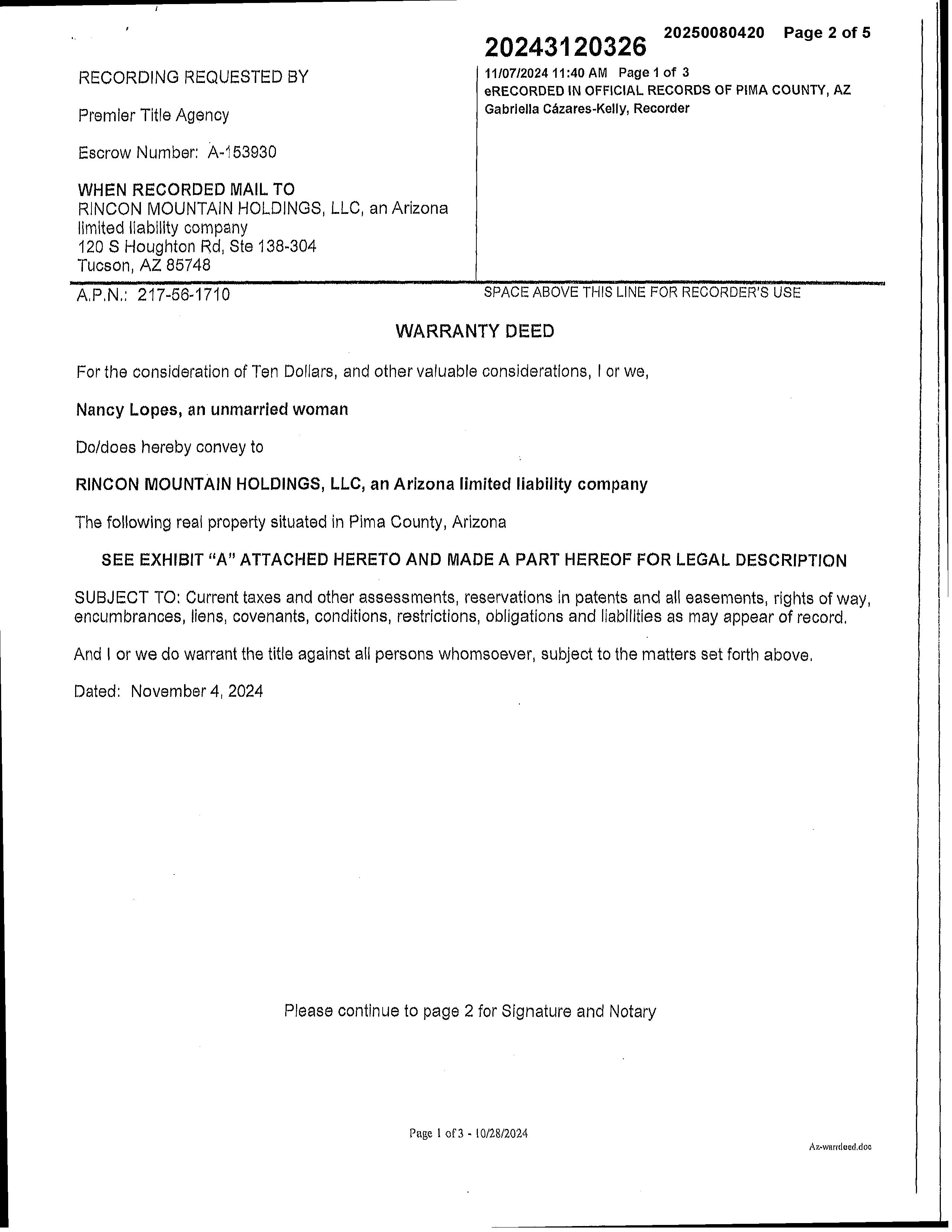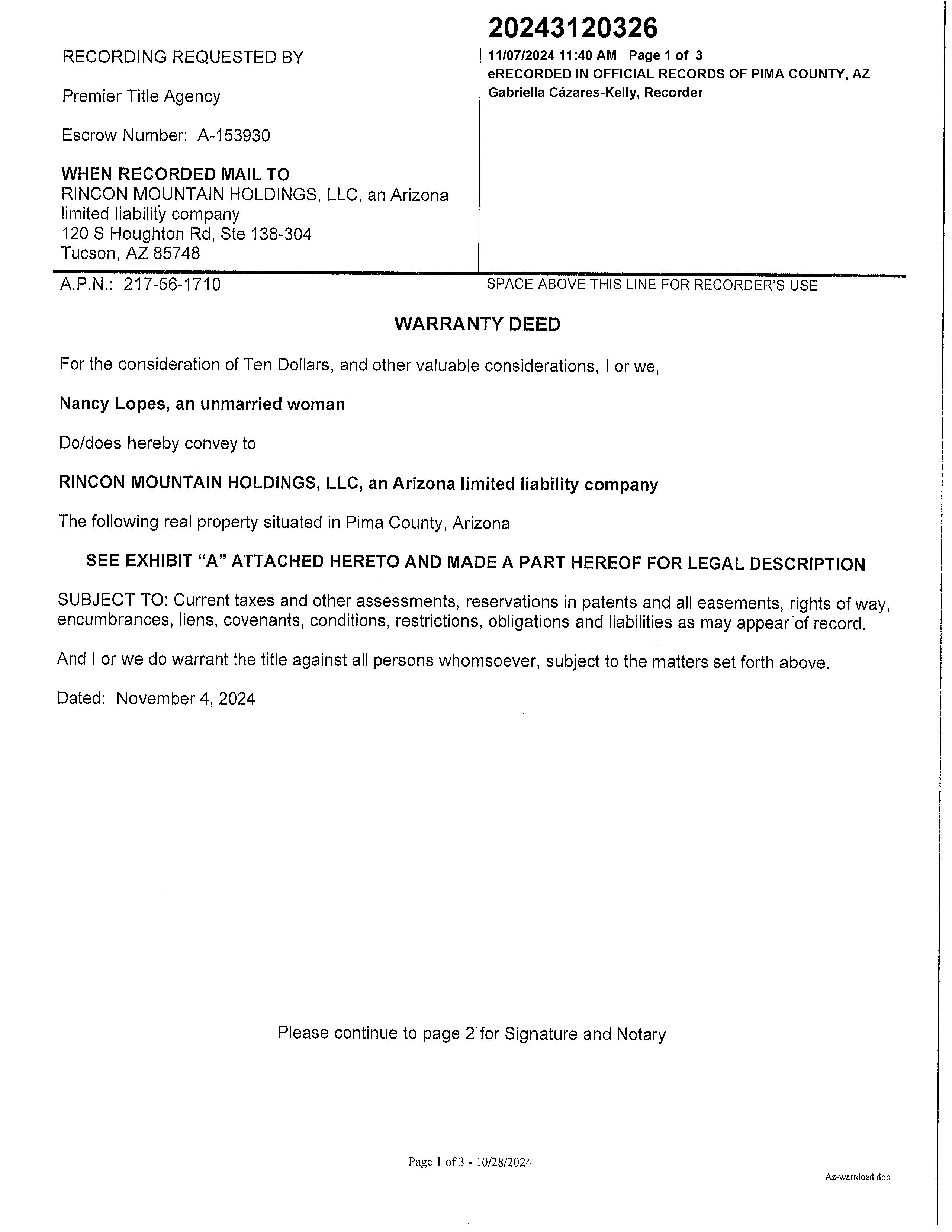 Owner Name : Rincon Mountain Holdings Llc