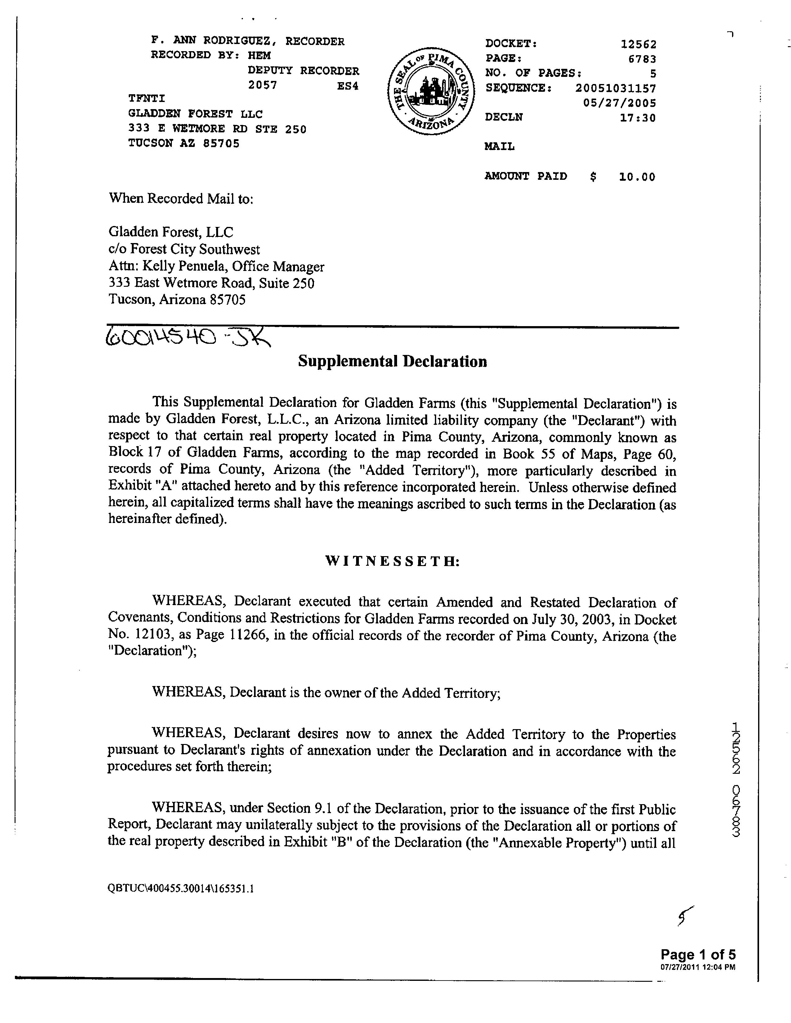 2012 1580315 D FIDELITY NATIONAL TITLE AG M ADDITIONAL PROPERTY INFORMATION STANDARD LAND USE: SFR END SEARCH