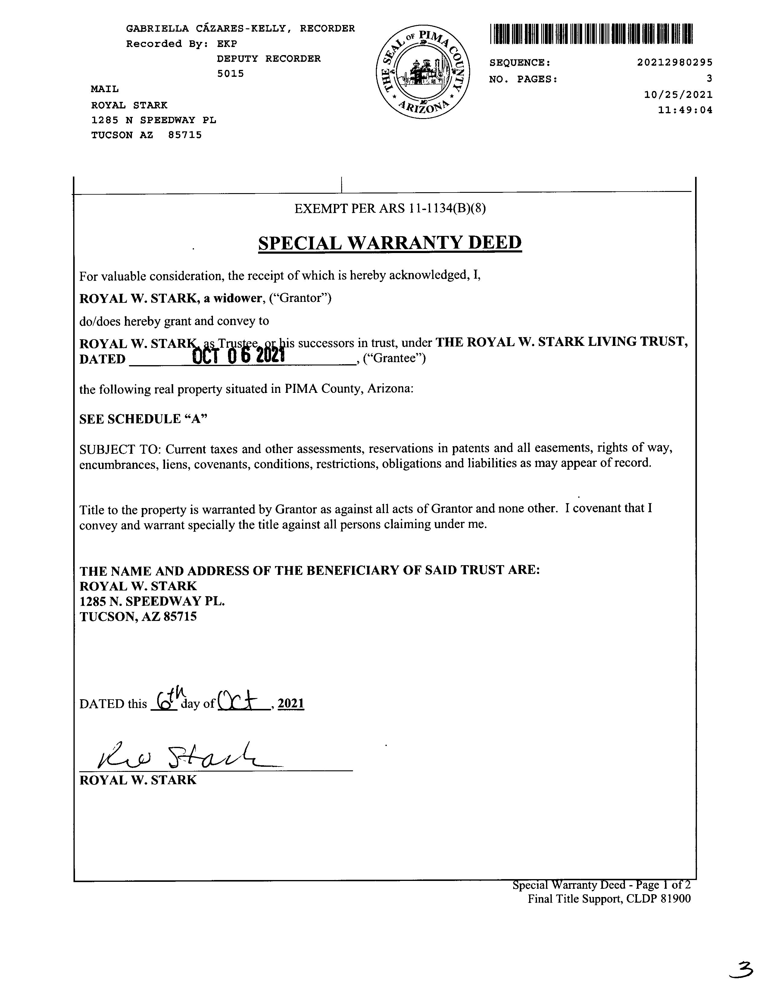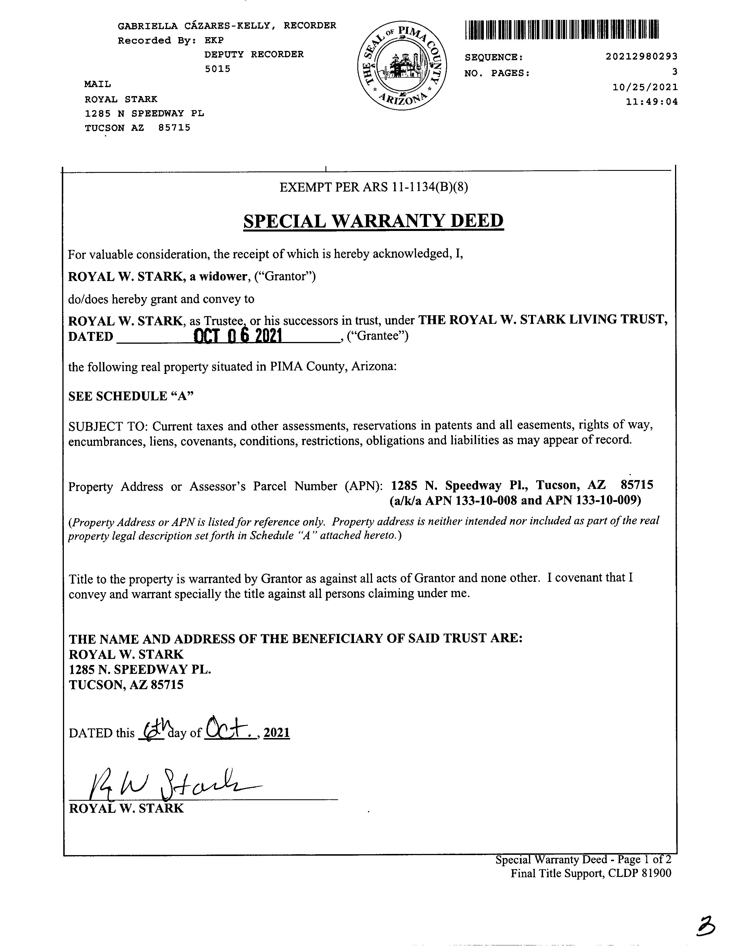 MAIL: 1285 N SPEEDWAY PL TUCSON AZ 85715-5235
