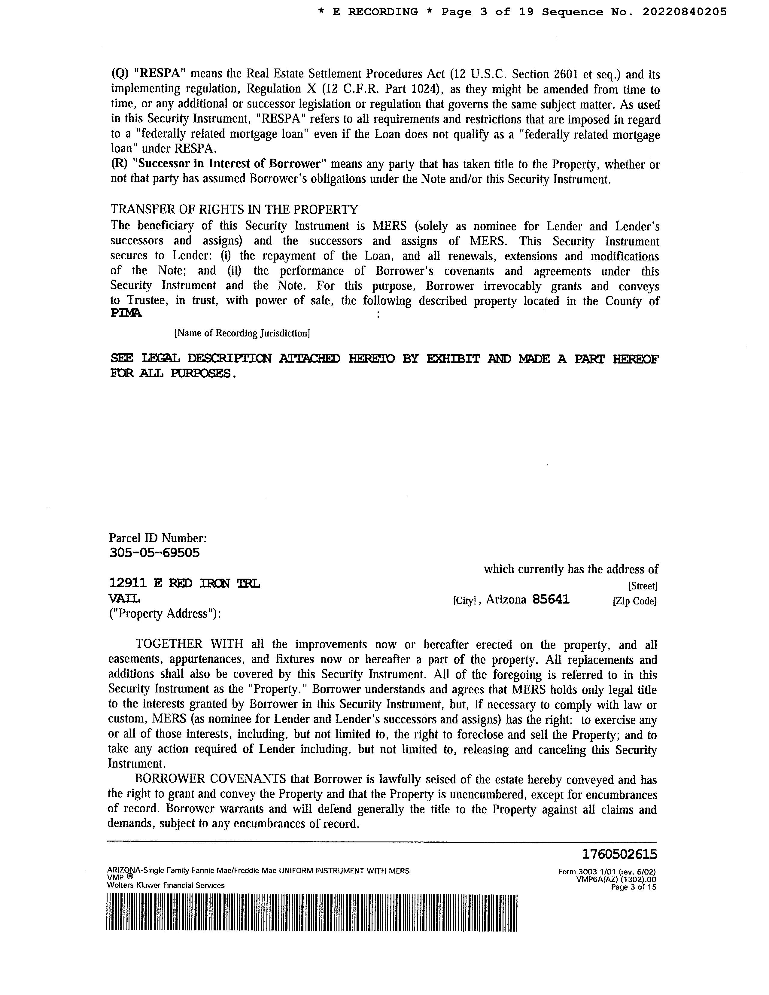 Mailing Address : 12911 E Red Iron Trl, Vail AZ 85641-6668 R015