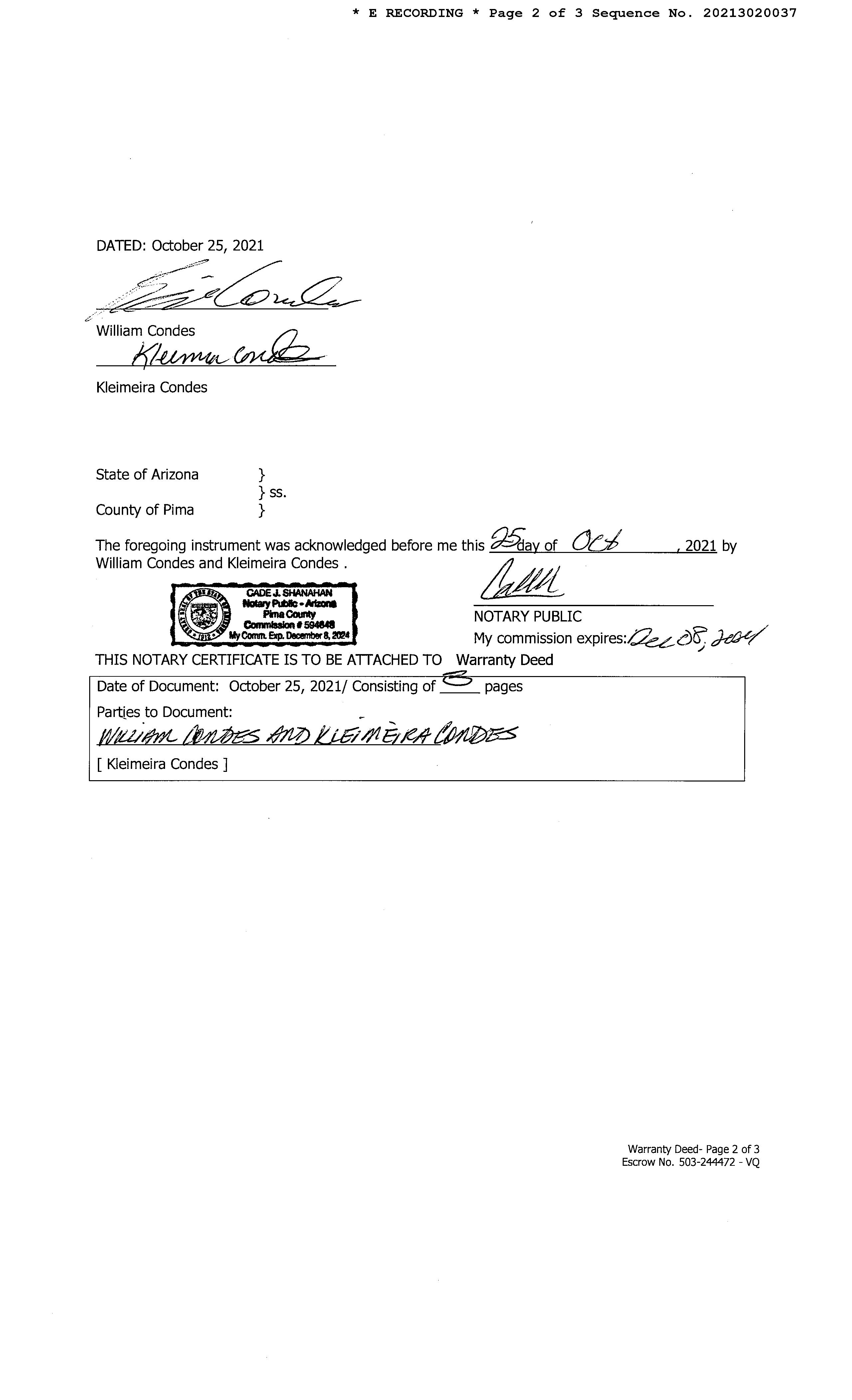 Subject Property : 1294 W Seep Willow Pl Tucson AZ 85737