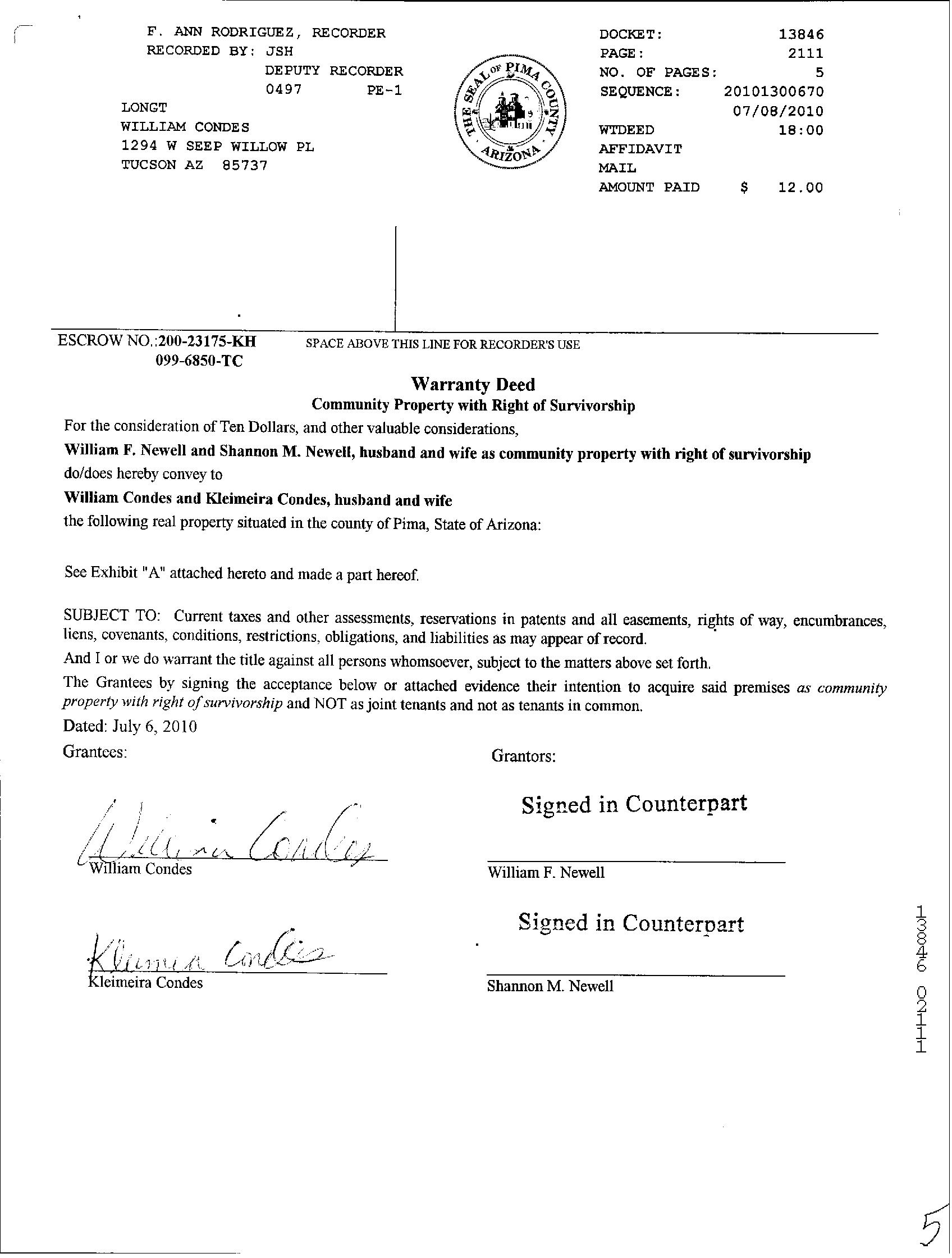 Recording/Sale Date : 07/08/2010 / 07/06/2010