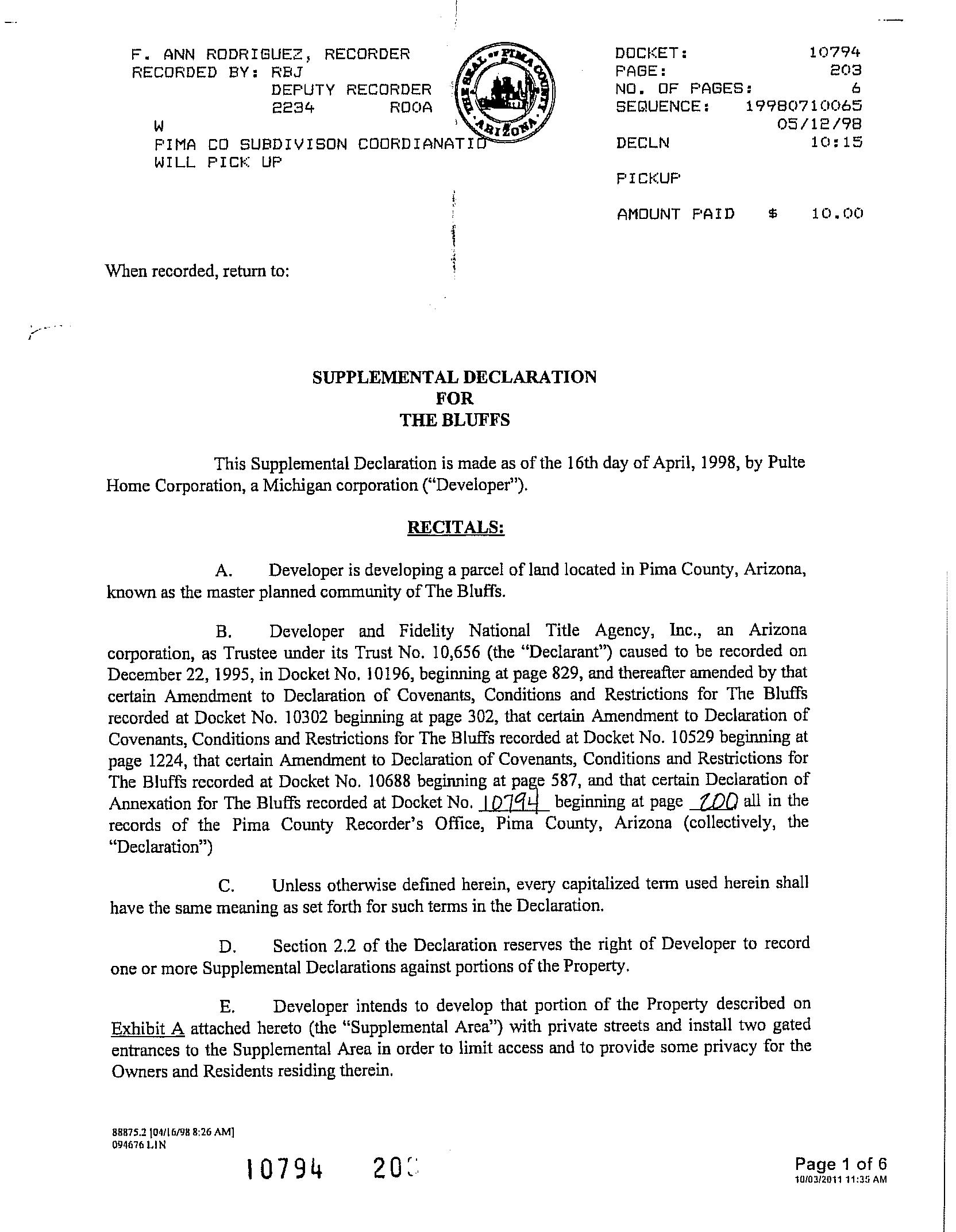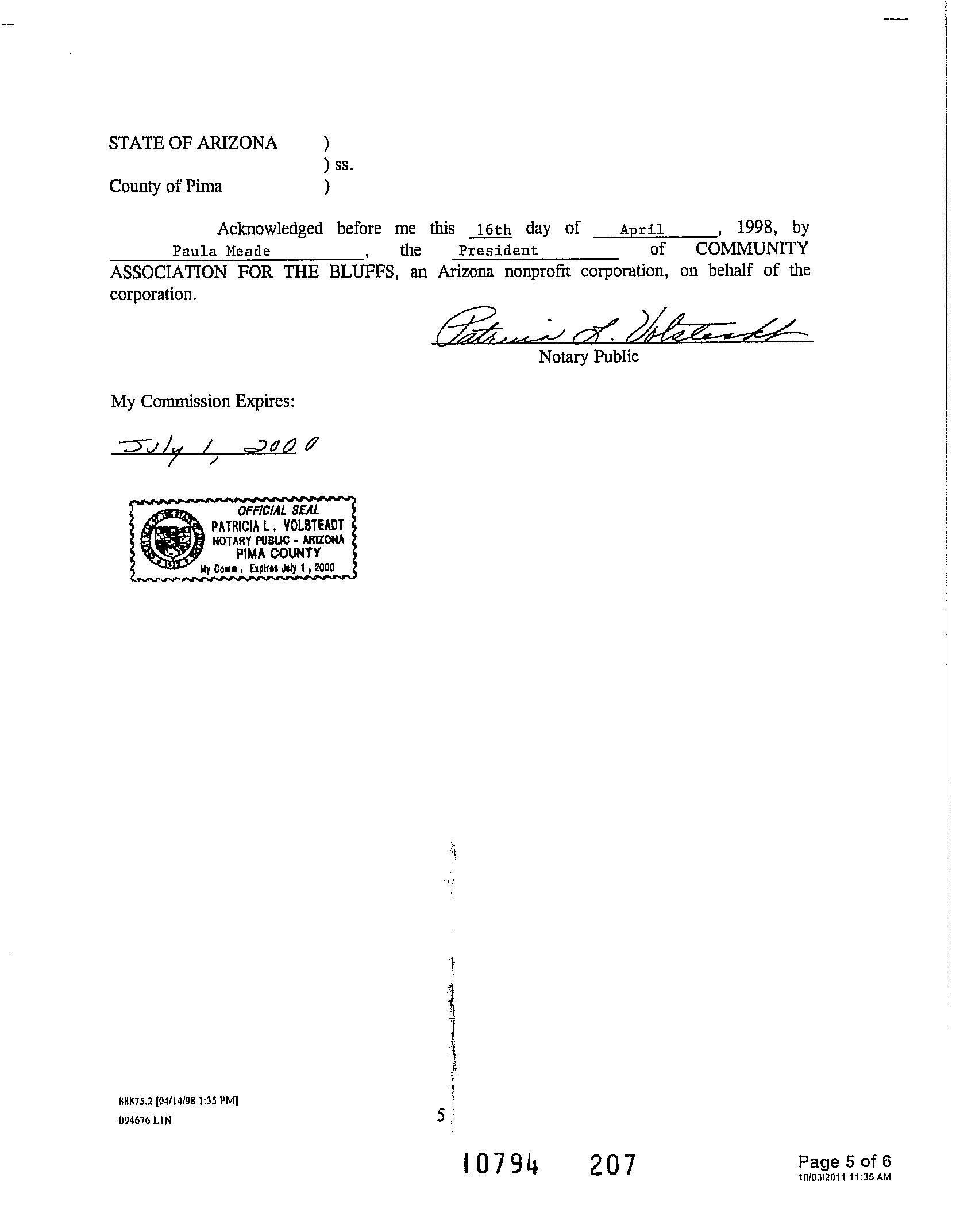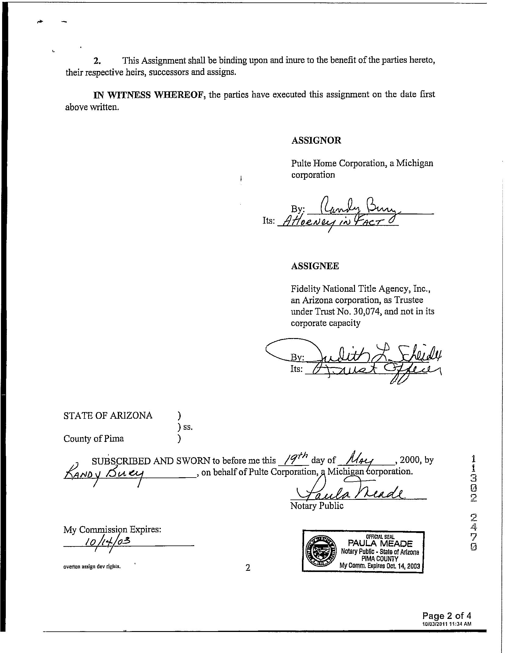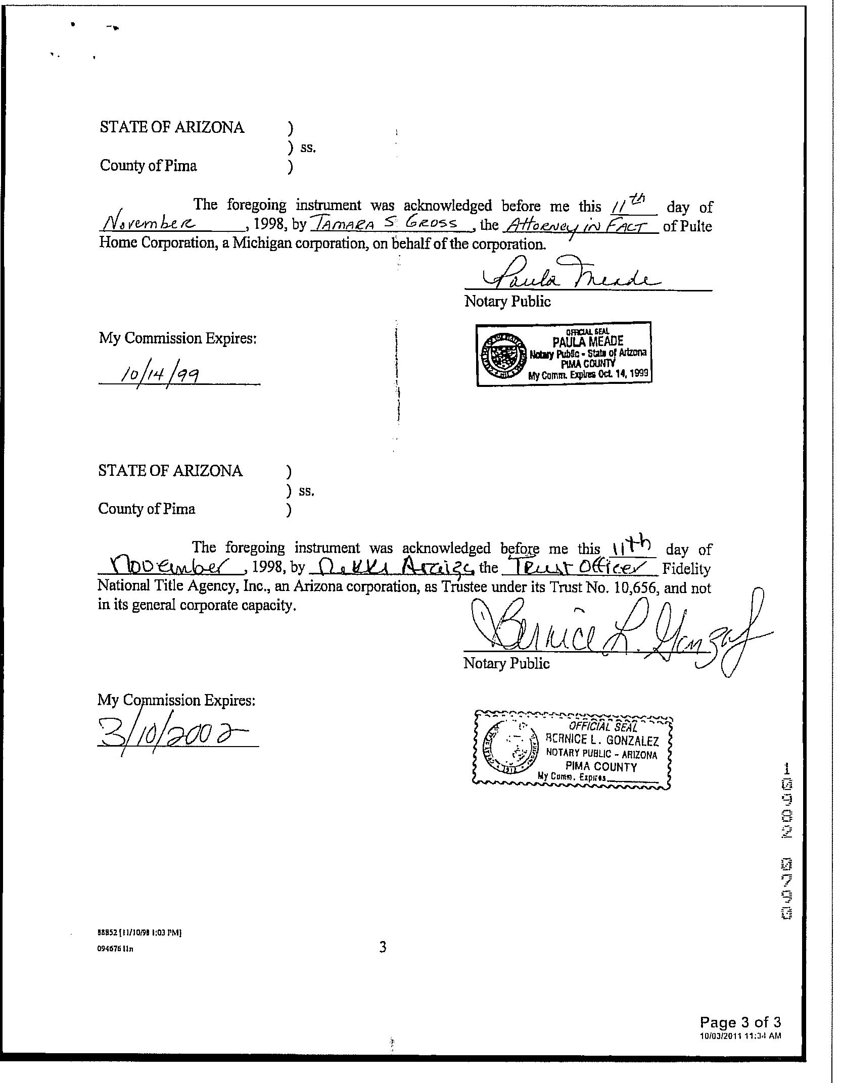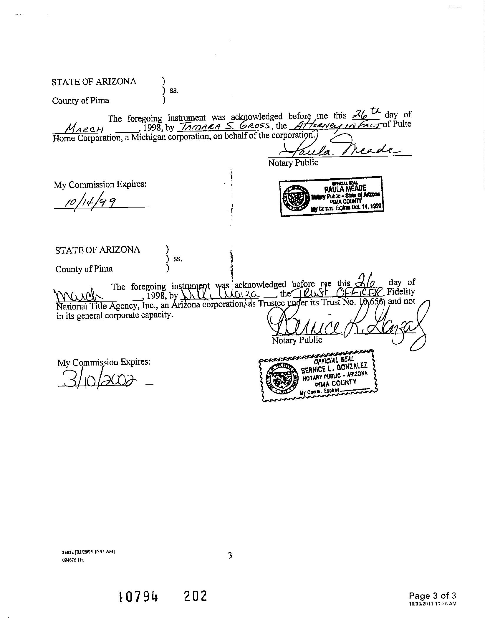 #20 12553 N Golden Mirror Dr Marana Az 85658 Owner Name: Pickett Joseph F /Longpre Anne-marie