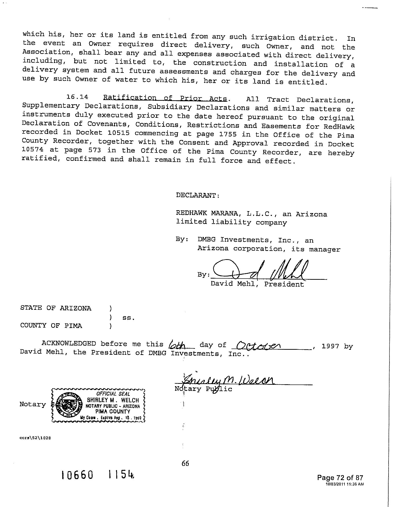 #6 12898 N Cenozoic Dr Marana Az 85658 Owner Name: Watson William /Watson Elizabeth