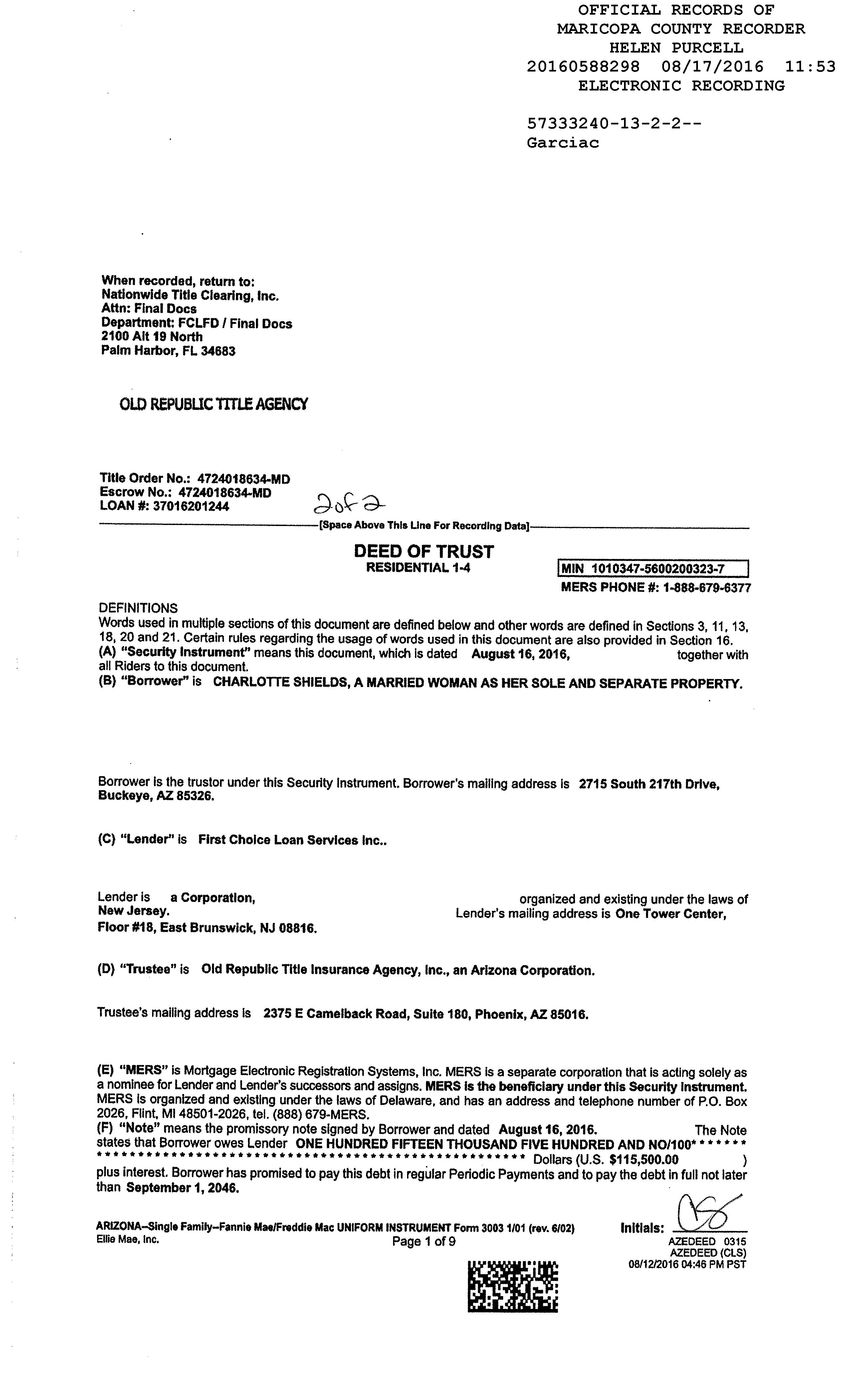 Mailing Address : 2715 S 217th Dr, Buckeye AZ 85326-8094 R004