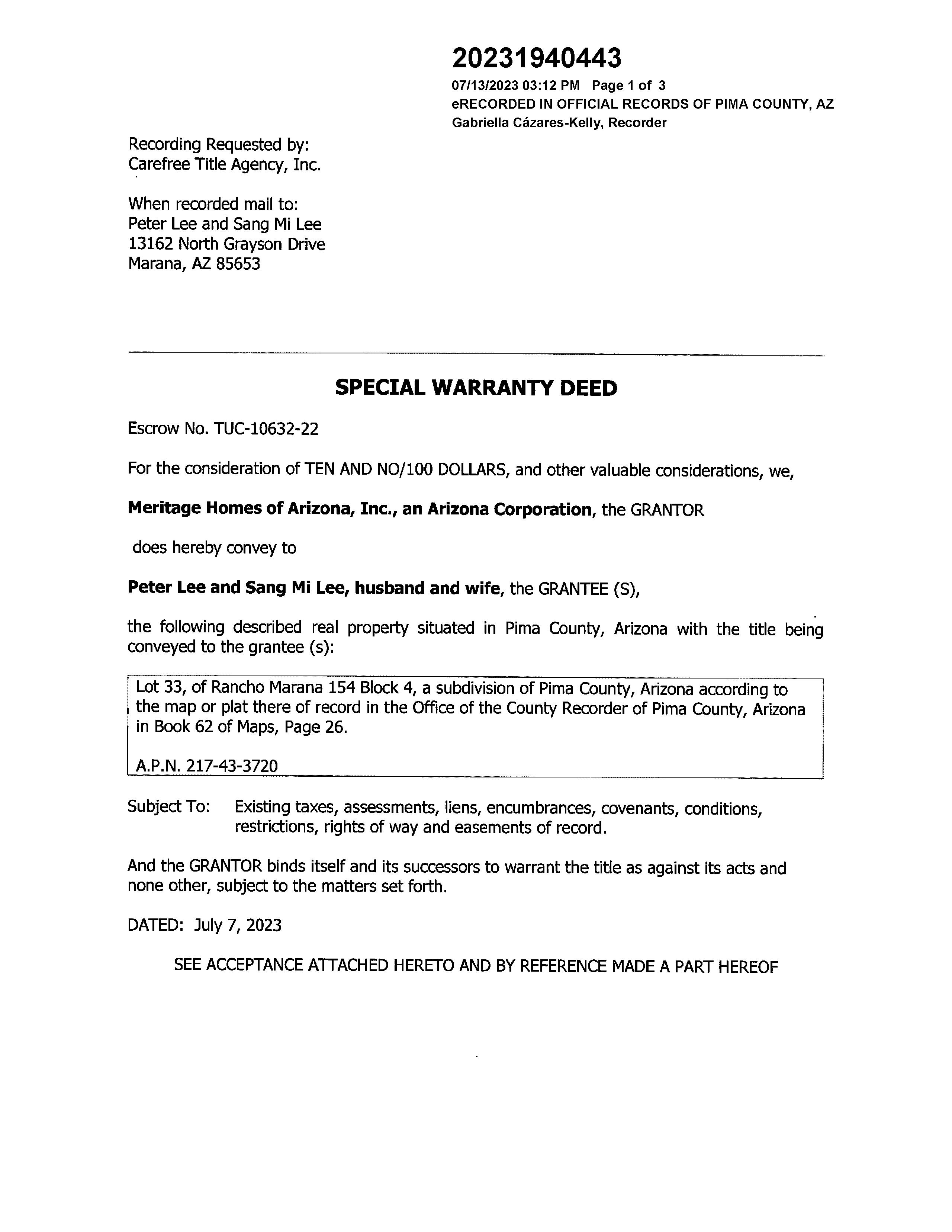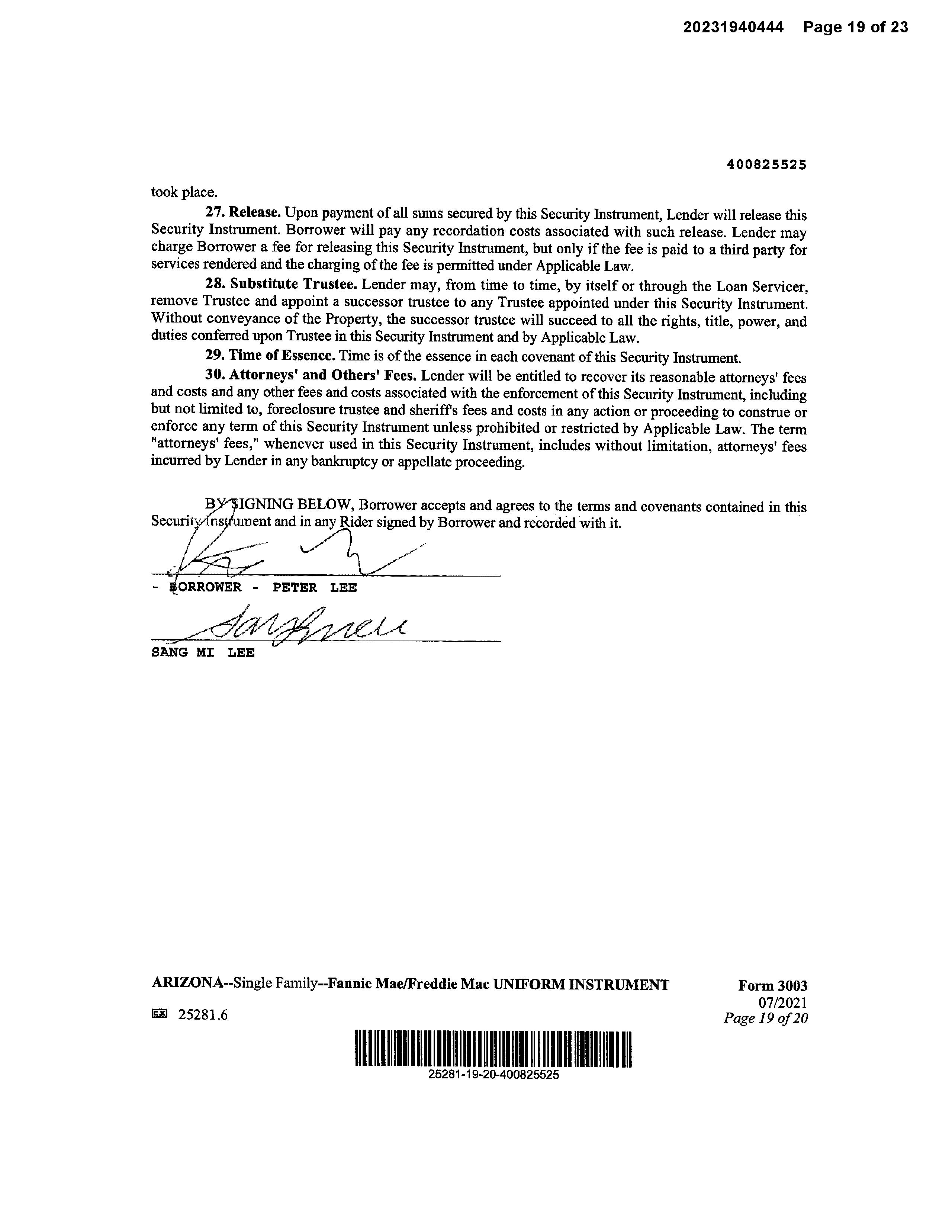 OWNER: LEE PETER & SANG AFFIDAVIT 2023 1940443 07/13/2023